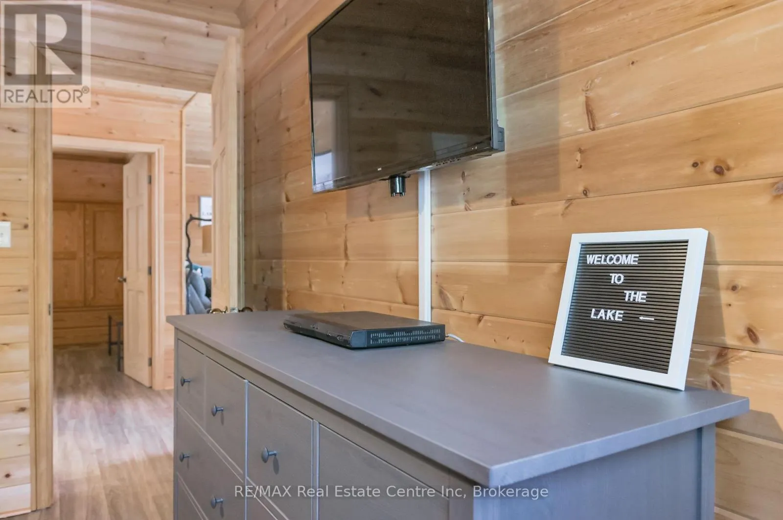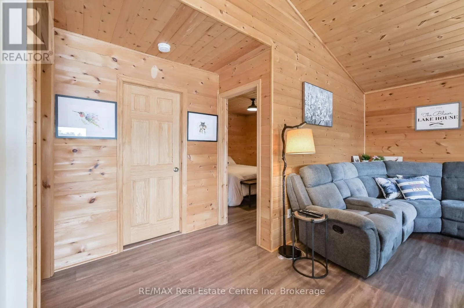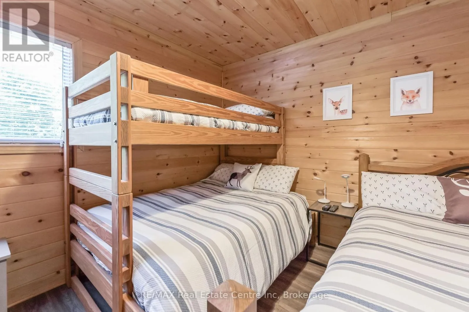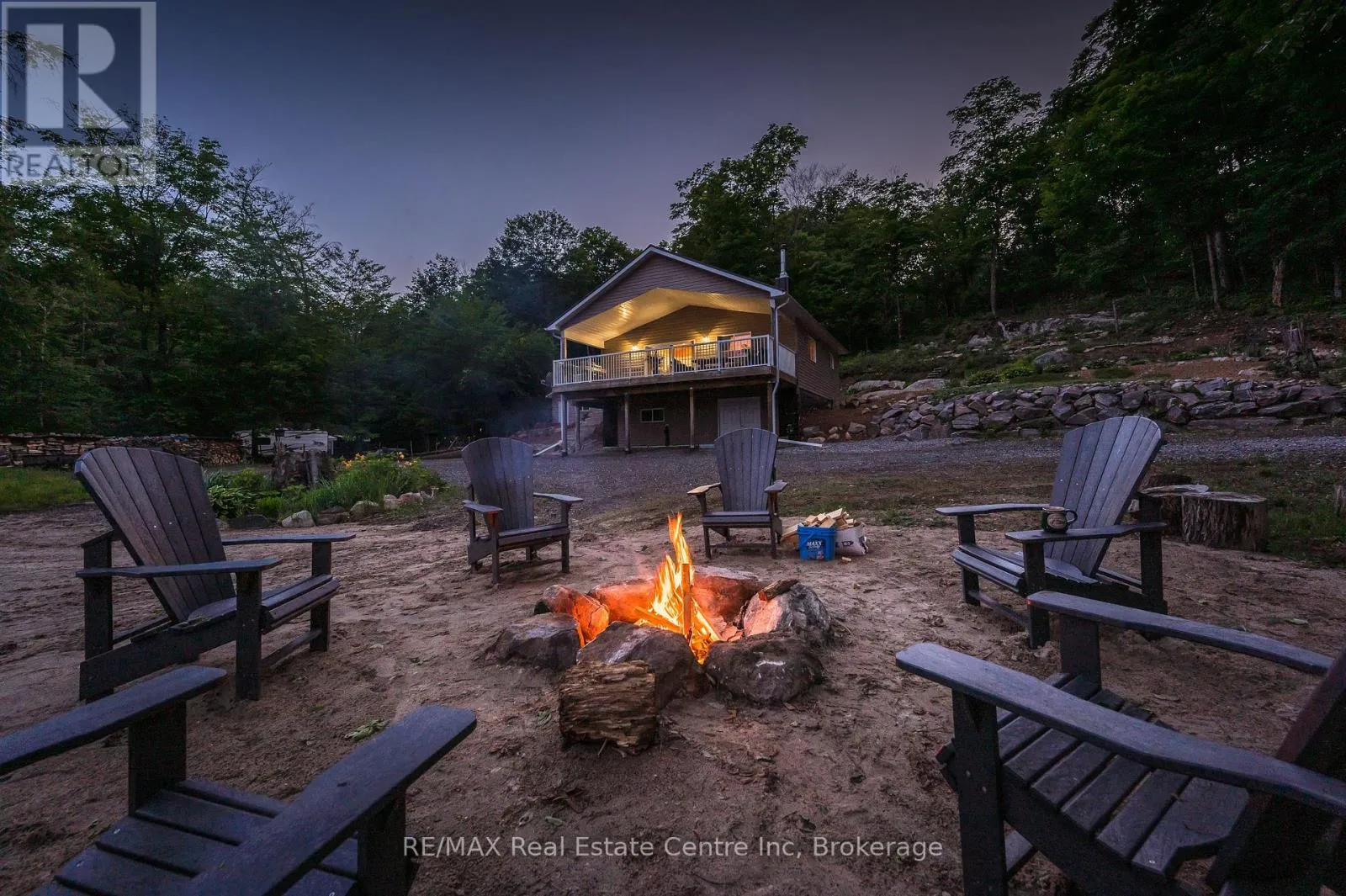 Cross Streets: Healey Lake Road. ** Directions: Healey Lake Road to South Crane, turn right. Welcome to Bloor Lake House (currently listed on Airbnb and has a full summer of rentals, if the buyer wants to assume them ($3000 per week) a fully renovated lakefront retreat, offering the same natural beauty and lifestyle the Muskoka area is known for with added privacy and tranquility. Set on 3.3 acres, with private tree lined laneway with gated secure entrance and ample parking, this property was completely renovated four years ago and combines modern systems with classic cottage character. The main cottage features open-concept living with vaulted pine ceilings, updated wood finishes, wood stove, large covered front porch with full lake view, and a bright kitchen with quartz countertops, white cabinetry, gas range, and excellent counter space for cooking and serving. Sleeping accommodations include space for up to 11 people between the cottage and a separate heated bunkie, making it ideal for families and guests.The property is situated on a private lake shared by only four cottages, with no public access, and the views are open and expansive. Outside you'll find expansive perennial gardens, lakeside firepit, enclosed wood storage, and lockable ATV or gardening storage. The waterfront includes a lakeside screened in gazebo with seating, private dock and swim platform, and a gradual entry sandy beach which allows for motor boat launch and opportunities for swimming, canoeing, kayaking, and excellent fishing for small and largemouth bass, sunfish, and crappie. A nearby waterfall offers portage access into the lower Crane Lake, adding to the recreational appeal. Recent upgrades include a wrapped foundation, solar power with lithium batteries, and a whole-home propane generator, ensuring efficient and reliable service in all seasons.With 3.3 acres of land, updated interiors, exceptional waterfront, and no short-term rental restrictions in the area, this lake house is well-suited as a year-round residence, seasonal getaway, or rental investment. (id:27476)