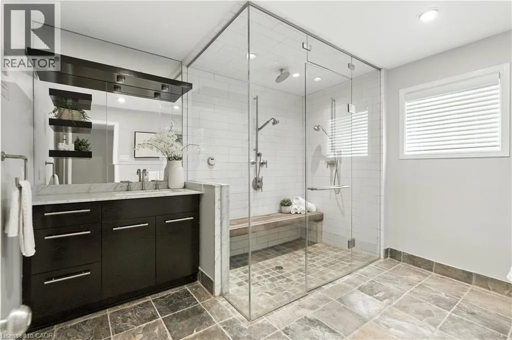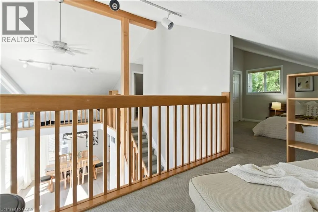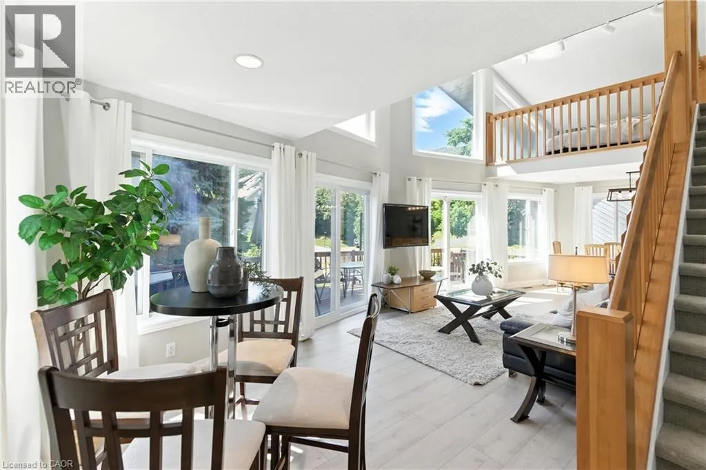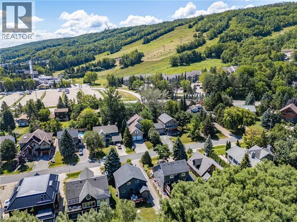 Grey Rd 19, turn on Heritage Dr, left on Pioneer Ln Welcome home to an immaculate chalet retreat in the heart of Blue Mountain where mountain views, modern updates, and four-season living come together. Just steps to the ski lifts and Village, this property offers the perfect blend of comfort, style, and location for families or investors alike.Recently refreshed with new flooring on the main level and fresh paint throughout, the home is move-in ready and beautifully maintained. The open-concept main floor showcases a dramatic living room with soaring cathedral ceilings and a wall of windows that frame breathtaking slope views. A seamless flow connects the living area, dining space, and the spacious kitchen featuring stone countertops, plenty of cabinetry, and stainless-steel appliances, ideal for après-ski entertaining or hosting family gatherings.The layout is thoughtfully designed for both privacy and versatility. The main level offers a bedroom with ensuite privilege to a 4-piece bath, while the upper level features two additional bedrooms, two versatile lofts, and a convenient powder room. The lower level is a complete retreat of its own with two more bedrooms, a spacious games room with pool table, a spa-inspired bathroom with steam shower, laundry, and a separate outside entry, perfect for guests or multi-family use.Outdoor living spaces are equally impressive. A large front deck captures the energy of the mountain, while the back deck offers a covered hot tub and space for outdoor dining. The backyard extends into a natural setting with a tranquil creek, providing a peaceful backdrop for year-round enjoyment, from après-ski evenings under the stars to summer bbq's and cozy nights by the fire pit. Immaculate inside and out, this home is a rare opportunity to own a property that truly embraces the Blue Mountain lifestyle. Whether as a full-time residence, vacation home, or income-generating investment, this chalet offers the best of four-season living in an unbeatable location. (id:27476)