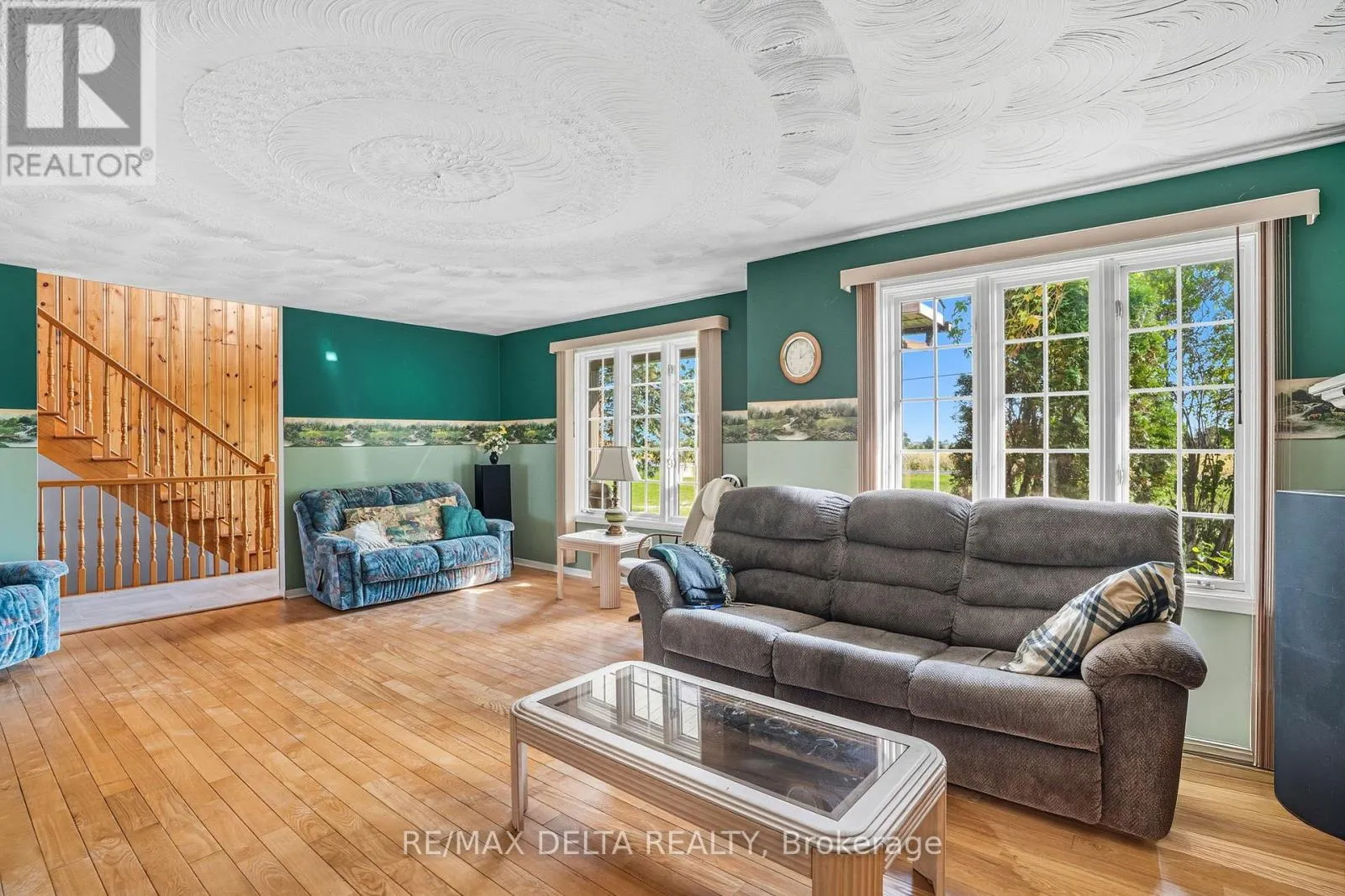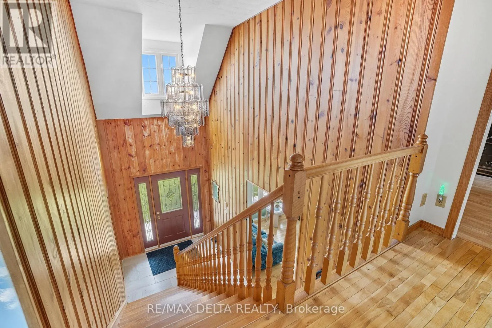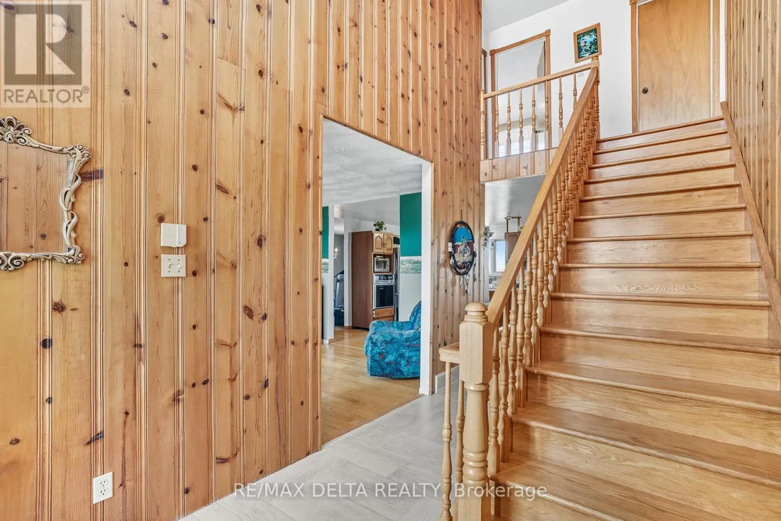 Cross Streets: STE CATHERINE STREET. ** Directions: FROM STE CATHERINE STREET NORTH, TURN LEFT ON CONCESSION 20, PROPERTY ON CORNER OF STE CATHERINE AND CONCESSION 20. Welcome to this charming 4+1 bedroom 2 storey home set on over 1 acre of private countryside in the heart of The Nation. With its stately Iroquoise stone façade and expansive driveway leading to a double attached garage this property exudes warmth and curb appeal. Inside a grand foyer with wood accents and a sweeping staircase sets the tone. The main level offers a spacious living room highlighted by a propane fireplace with wood mantel and hardwood floors. A bright dining area flows into the well appointed kitchen with wood cabinetry stainless steel appliances and a centre island ideal for both everyday living and entertaining. Patio doors lead to a large deck overlooking open fields perfect for gatherings or enjoying peaceful sunsets. Upstairs discover three generously sized bedrooms including a primary suite with a 5 piece ensuite bathroom. Additional rooms provide excellent flexibility for guests a home office or personal projects. The finished basement adds versatility with a cozy lounge area recreation space complete with a bar and pool table an extra bedroom and abundant storage. Outdoors enjoy the serenity of wide open country views with plenty of space for gardening hobbies or future projects. The detached garage or workshop and expansive driveway add convenience and functionality. Blending timeless character with comfort this property is a peaceful retreat offering space charm and tranquility in a rural setting. (id:27476)