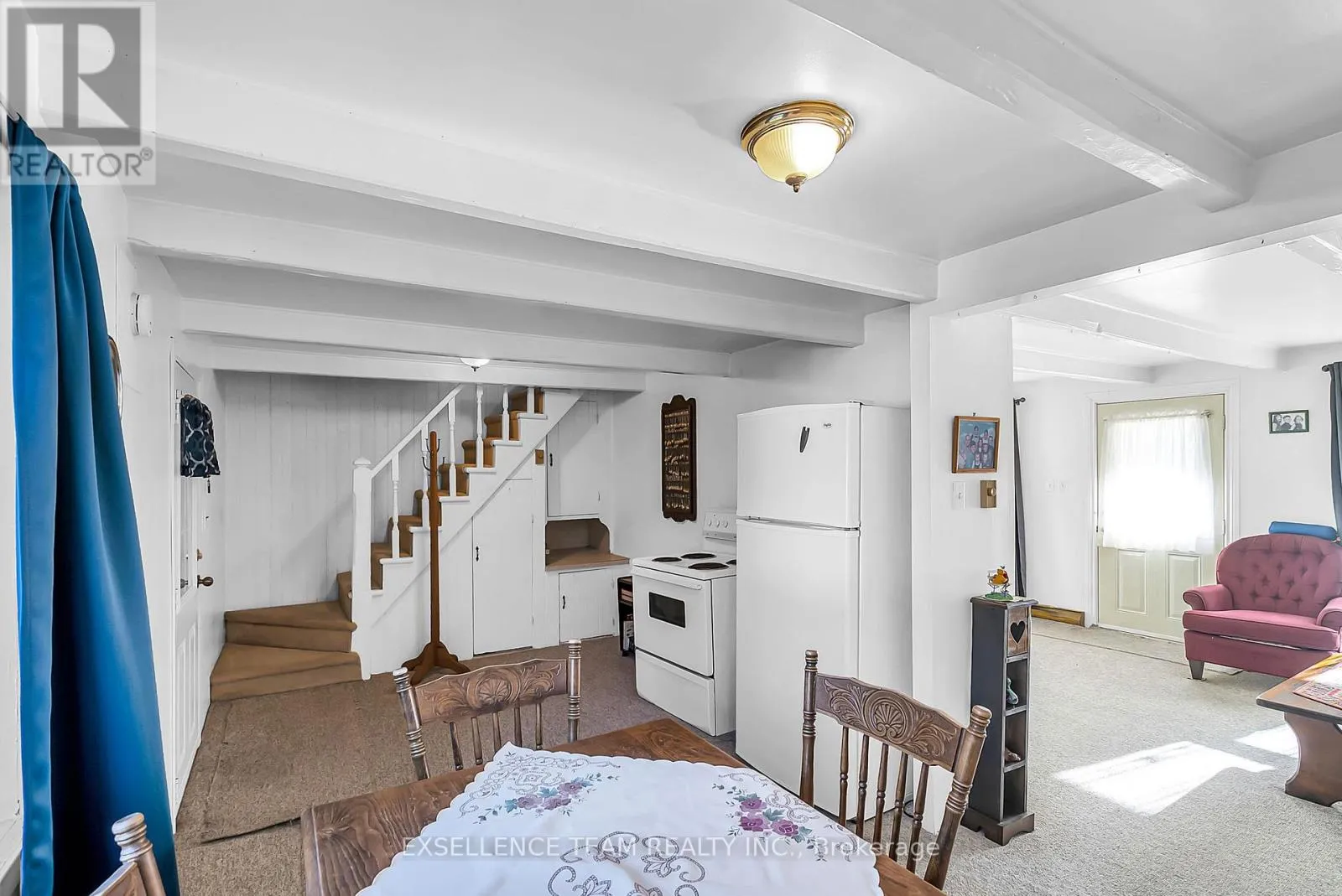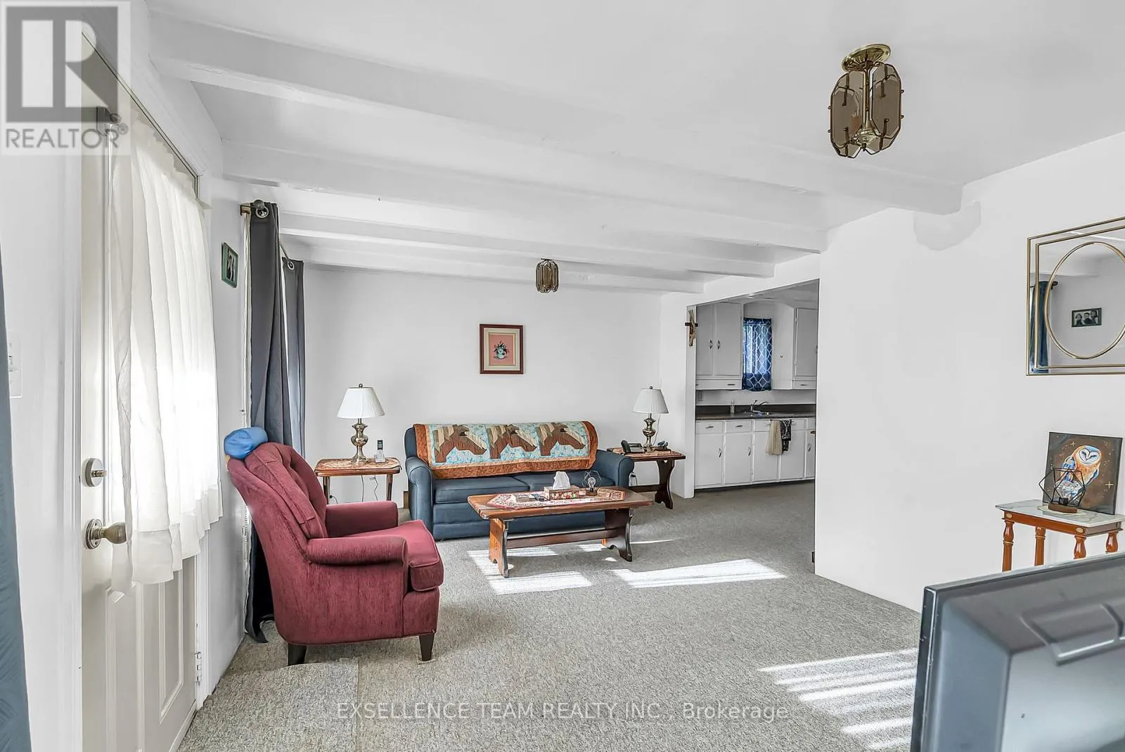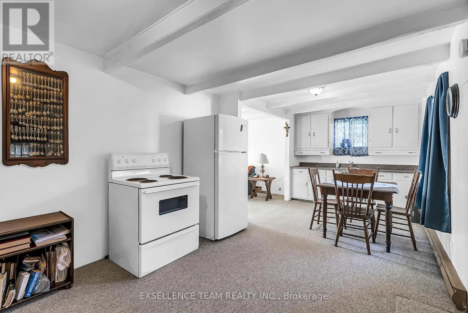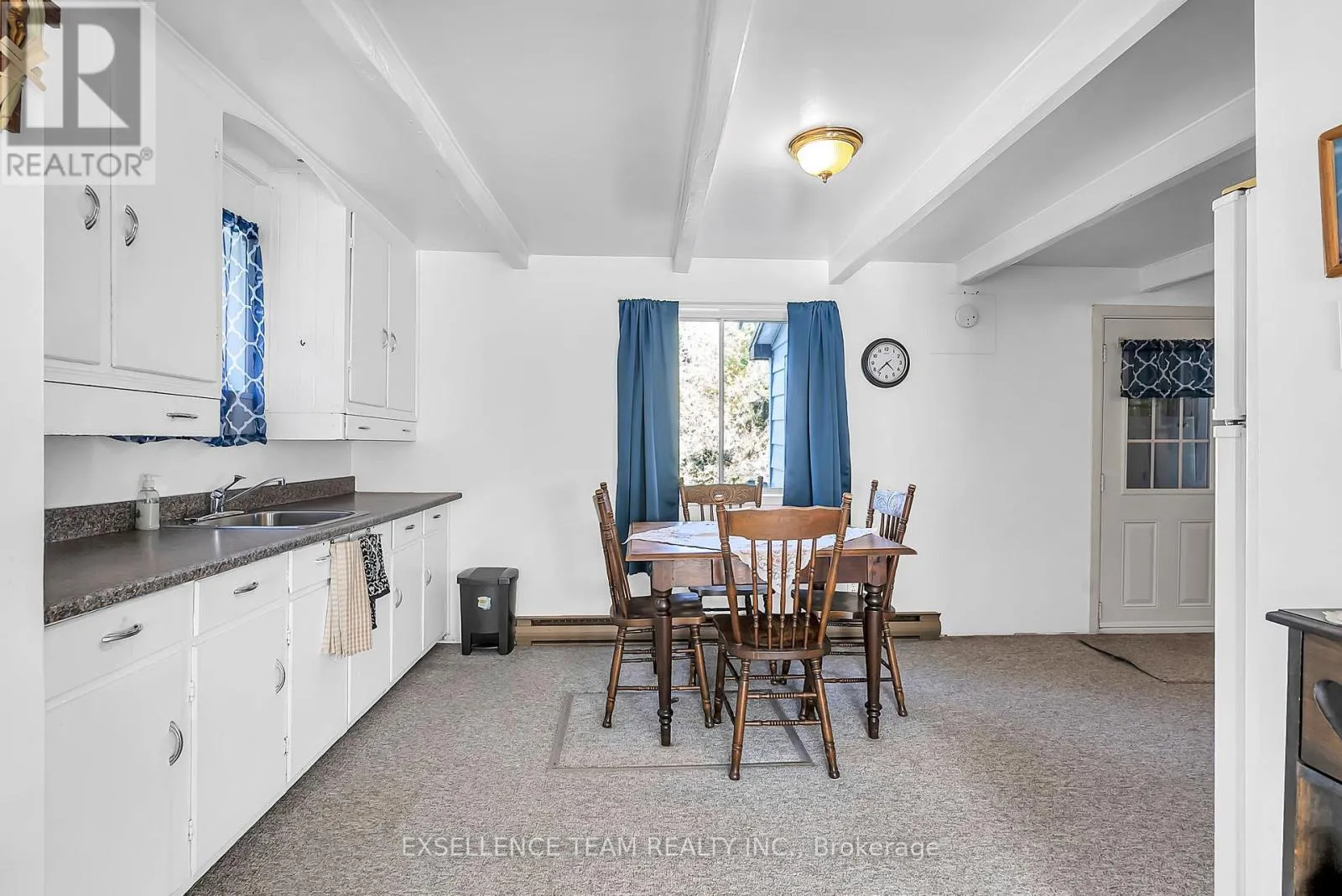 Rue St Bernardin just north of De l'Eglise St. Looking for an affordable home? This cute and cozy 862 sq. ft. home is move in ready. This 2 bedroom, 1 1/2 storey home is in excellent condition. The main level features a good size living room, 4 pc bathroom and an eat-in kitchen. The second level has a primary bedroom with two closets, a second bedroom with closet and a good size sitting area currently used as a bedroom. The home is well maintained and recent updates include a metal roof 2024, HWT 2022, bathroom updated and recent septic lid and pumping. This property also features a 12' x 29' shed/shop with electricity and a cement floor. All this on a nice size lot that backs onto a ravine. Located in St Bernardin only 1 hour to the West Island, 1 hour to Ottawa and 20 minutes to Alexandria or Hawkesbury. Downsizing or starting off? This affordable home is just what you are looking for. (id:27476)