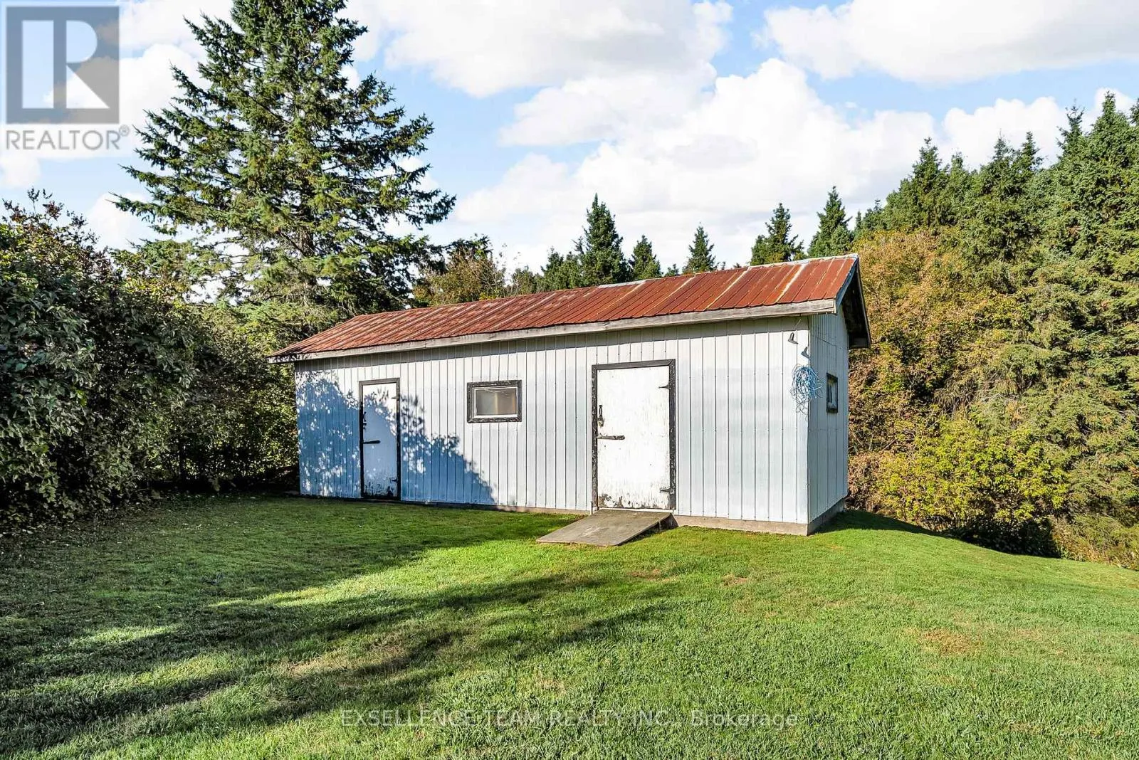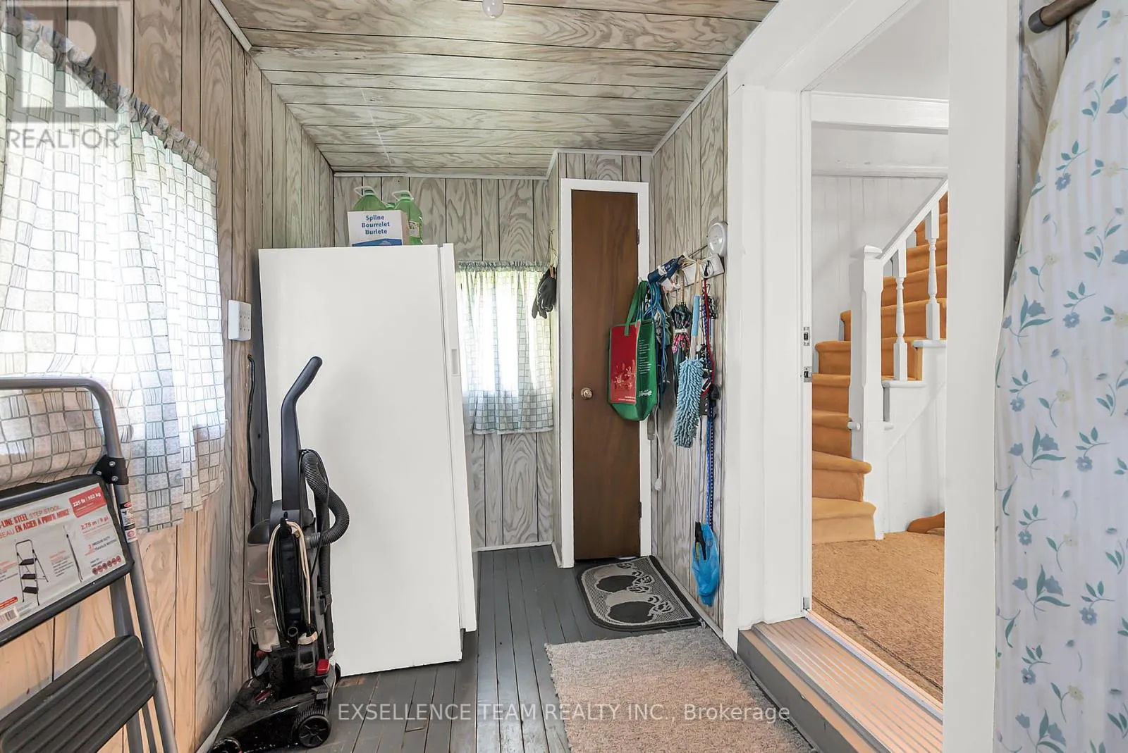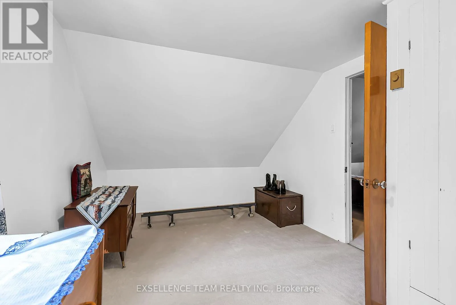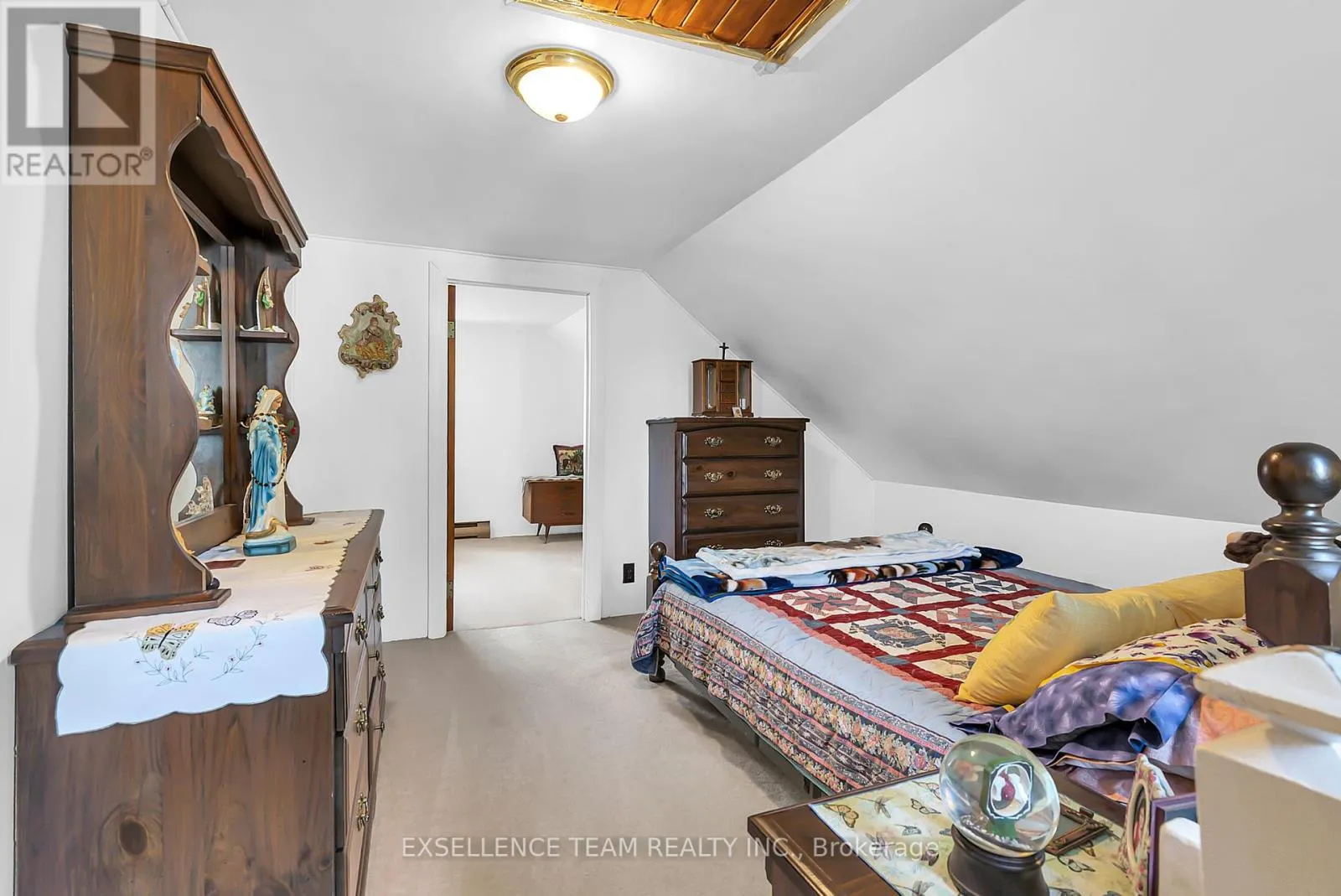 Rue St Bernardin just north of De l'Eglise St. Looking for an affordable home? This cute and cozy 862 sq. ft. home is move in ready. This 2 bedroom, 1 1/2 storey home is in excellent condition. The main level features a good size living room, 4 pc bathroom and an eat-in kitchen. The second level has a primary bedroom with two closets, a second bedroom with closet and a good size sitting area currently used as a bedroom. The home is well maintained and recent updates include a metal roof 2024, HWT 2022, bathroom updated and recent septic lid and pumping. This property also features a 12' x 29' shed/shop with electricity and a cement floor. All this on a nice size lot that backs onto a ravine. Located in St Bernardin only 1 hour to the West Island, 1 hour to Ottawa and 20 minutes to Alexandria or Hawkesbury. Downsizing or starting off? This affordable home is just what you are looking for. (id:27476)