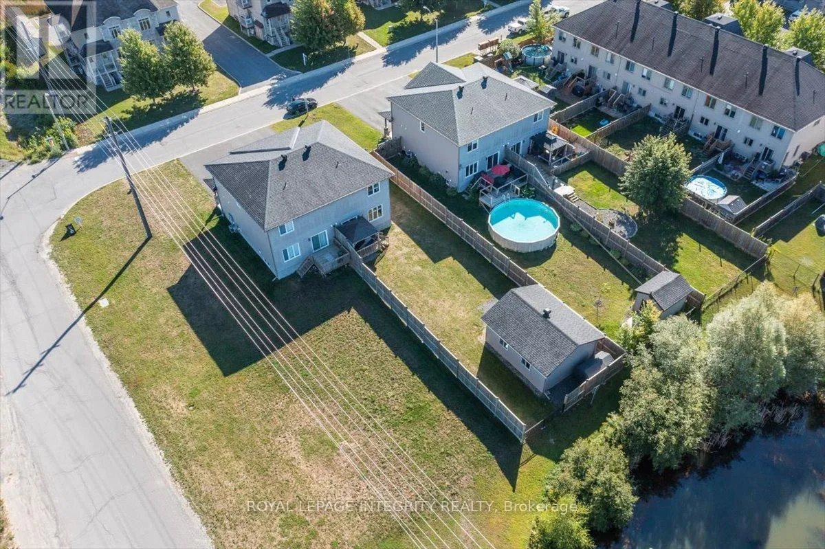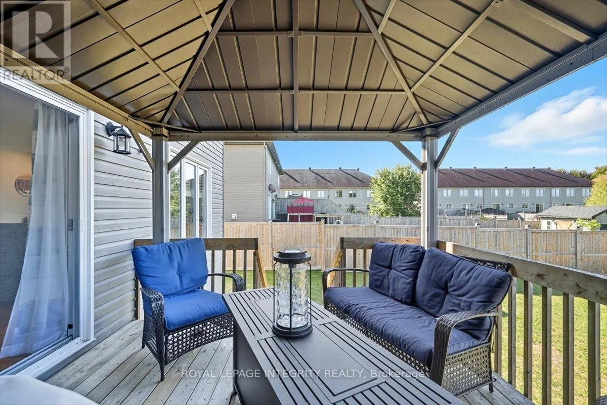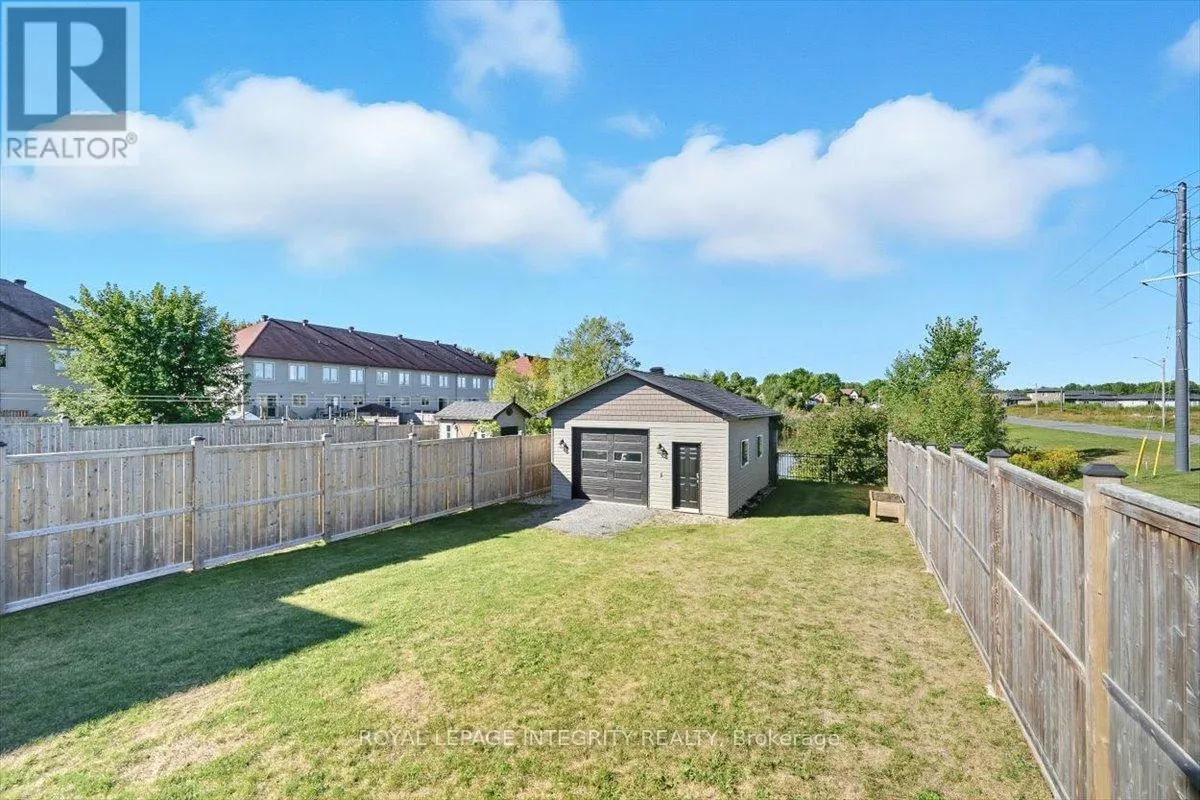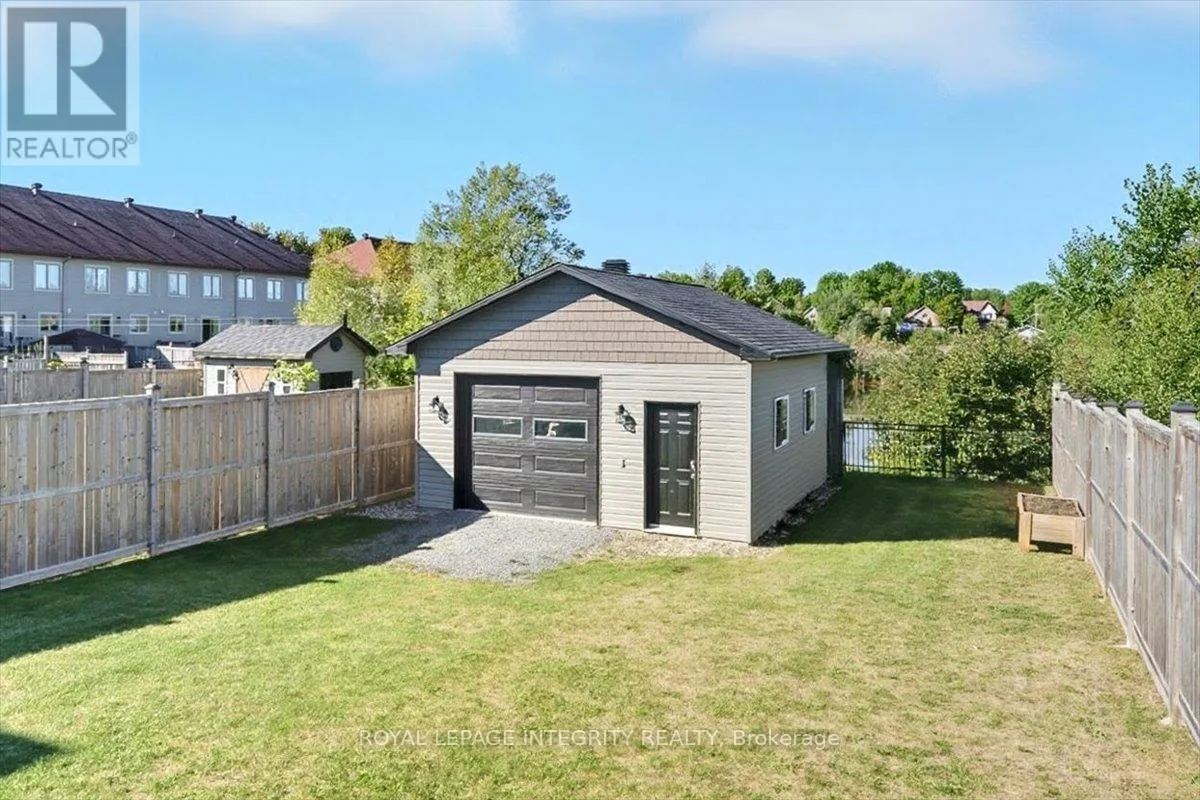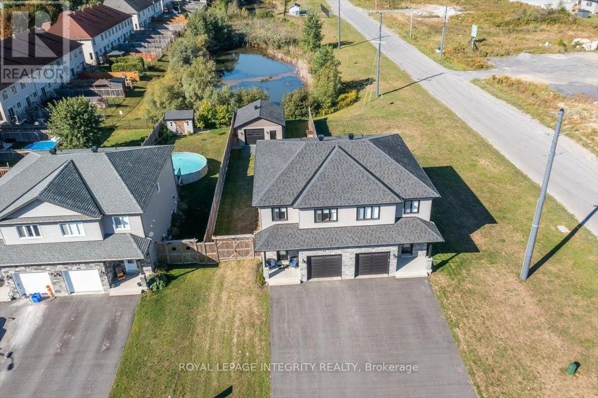 Cross Streets: Limoges / Savage. ** Directions: Limoges Road, East on Savage, right on Bourdeau. Property on the right. Welcome to this stunning 3-bedroom, 3-bathroom semi-detached home, built in 2021 and perfectly positioned with no rear neighbours, backing onto a serene pond. Complete with a detached garage and a driveway that easily accommodates four vehicles, this home truly has it all! Step inside to a bright, welcoming foyer with a large closet and direct garage access. A convenient powder room leads you into the open-concept main level, where gleaming hardwood floors set the tone. The chefs kitchen features an abundance of cabinet and counter space, stylish two-toned cabinetry, under-cabinet lighting, and a large island with sink and breakfast bar overlooking the dining area and living room with its cozy fireplace and shiplap accent wall - this space is perfect for everyday living and entertaining alike. Patio doors open to a fully fenced backyard with a 10' x 10' deck, gazebo, lush green space, beautiful pond views and access to the detached garage, perfectly set up for hobbyist or for all your toys! Upstairs, hardwood flooring continues into the primary suite with a spacious walk-in closet and cheater access to a spa-inspired 5-piece bathroom, complete with dual vanity, soaker tub, and glass shower. Two additional well-sized bedrooms and a laundry room with custom cabinetry complete this level. The finished lower level adds even more living space with a versatile family room, 3-piece bathroom, and plenty of storage. Located just minutes from Highway 417, schools, parks, and nestled in a quiet, family-friendly neighbourhood, this is the perfect place to call home! (id:27476)