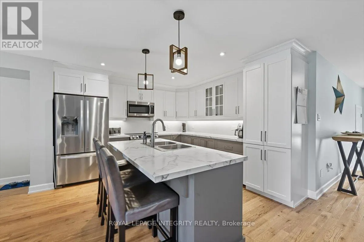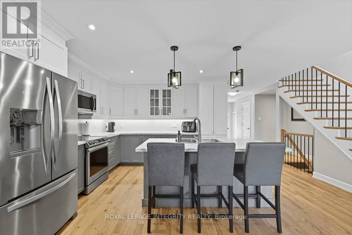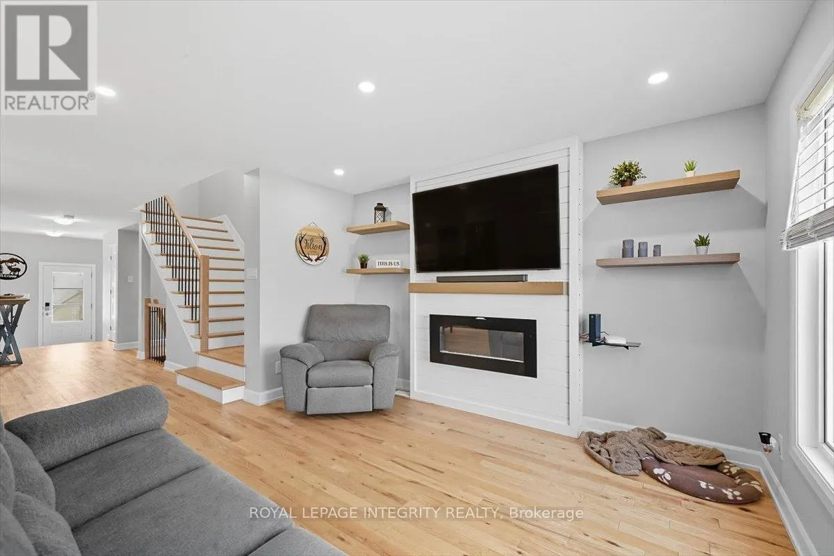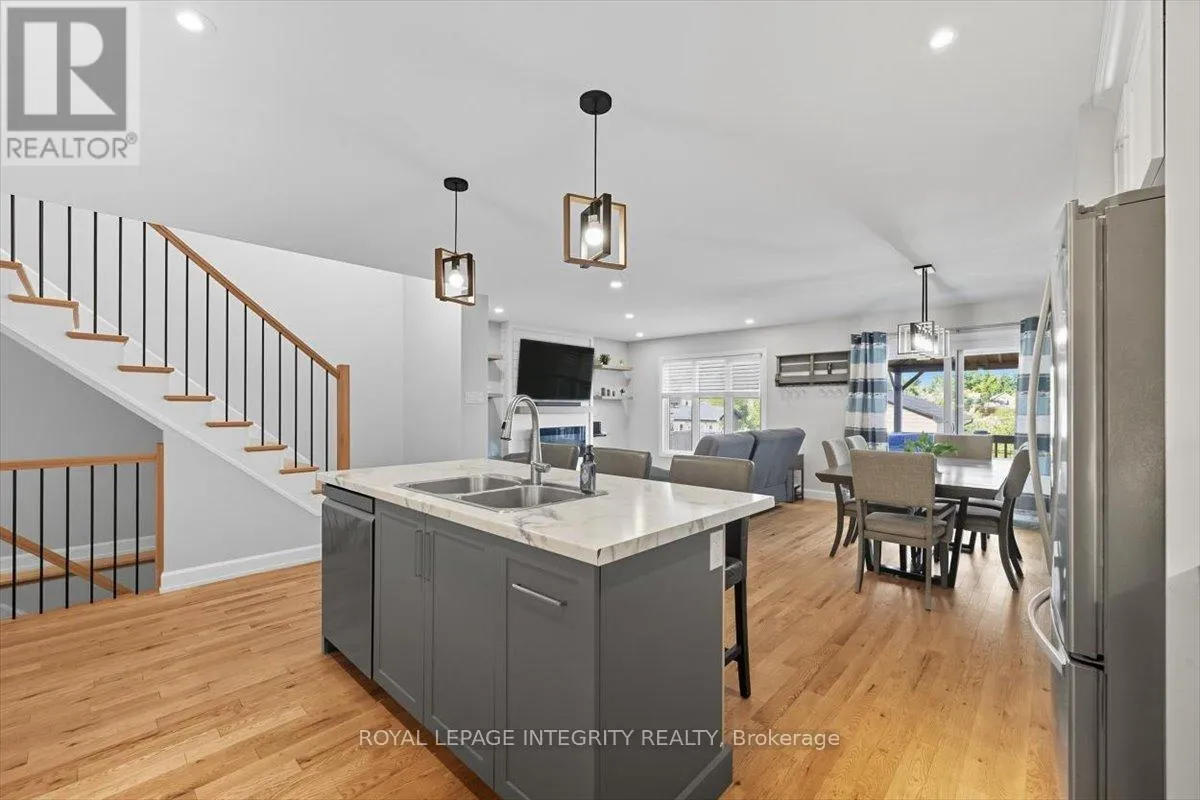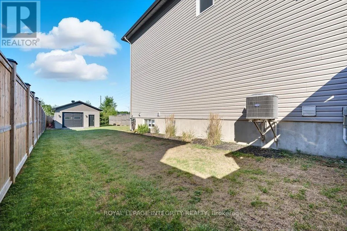 Cross Streets: Limoges / Savage. ** Directions: Limoges Road, East on Savage, right on Bourdeau. Property on the right. Welcome to this stunning 3-bedroom, 3-bathroom semi-detached home, built in 2021 and perfectly positioned with no rear neighbours, backing onto a serene pond. Complete with a detached garage and a driveway that easily accommodates four vehicles, this home truly has it all! Step inside to a bright, welcoming foyer with a large closet and direct garage access. A convenient powder room leads you into the open-concept main level, where gleaming hardwood floors set the tone. The chefs kitchen features an abundance of cabinet and counter space, stylish two-toned cabinetry, under-cabinet lighting, and a large island with sink and breakfast bar overlooking the dining area and living room with its cozy fireplace and shiplap accent wall - this space is perfect for everyday living and entertaining alike. Patio doors open to a fully fenced backyard with a 10' x 10' deck, gazebo, lush green space, beautiful pond views and access to the detached garage, perfectly set up for hobbyist or for all your toys! Upstairs, hardwood flooring continues into the primary suite with a spacious walk-in closet and cheater access to a spa-inspired 5-piece bathroom, complete with dual vanity, soaker tub, and glass shower. Two additional well-sized bedrooms and a laundry room with custom cabinetry complete this level. The finished lower level adds even more living space with a versatile family room, 3-piece bathroom, and plenty of storage. Located just minutes from Highway 417, schools, parks, and nestled in a quiet, family-friendly neighbourhood, this is the perfect place to call home! (id:27476)