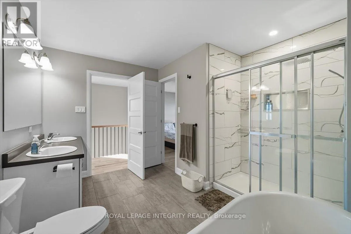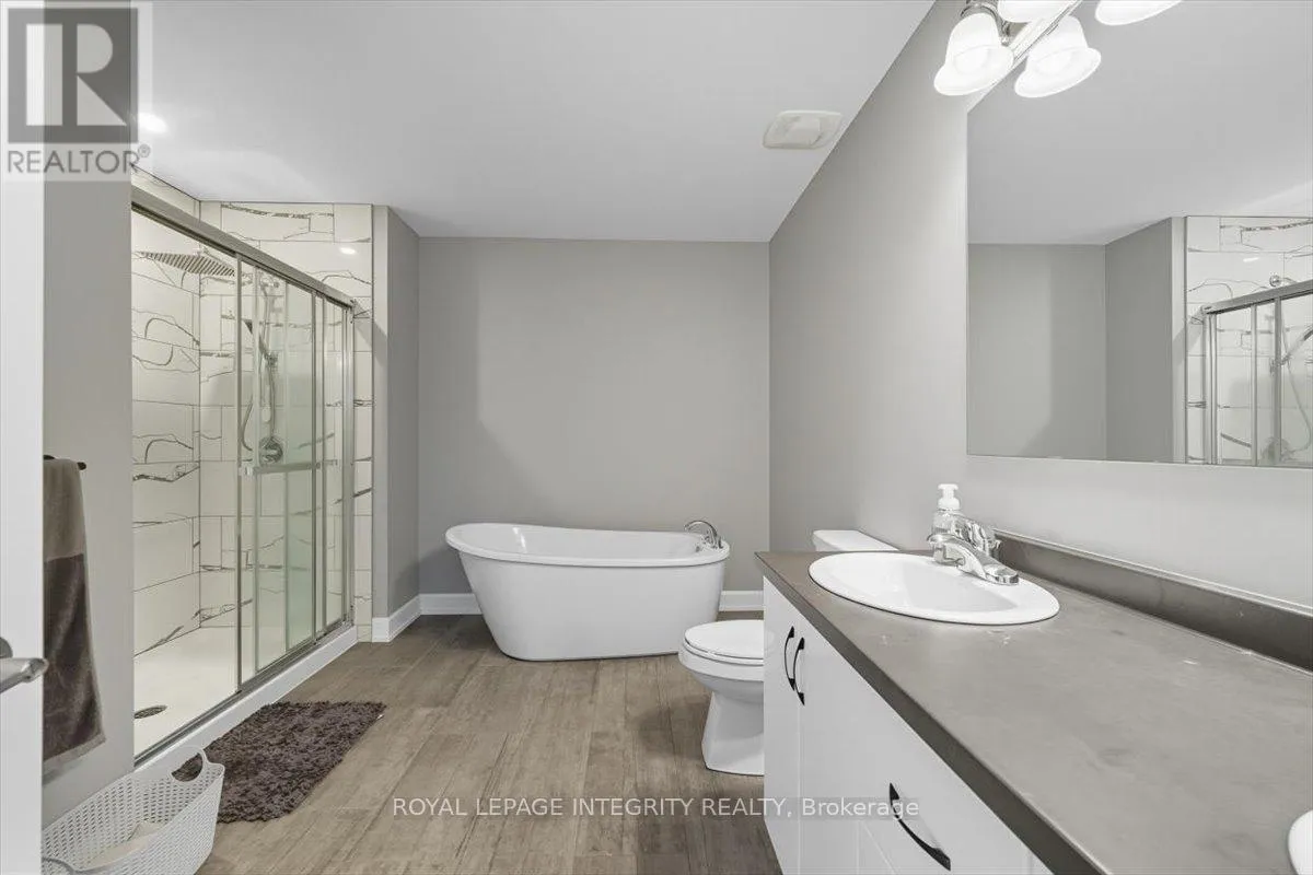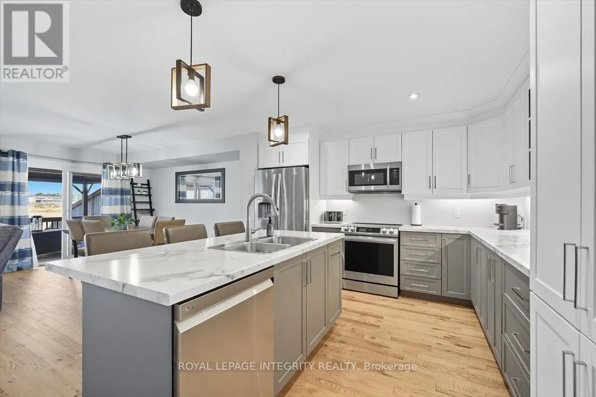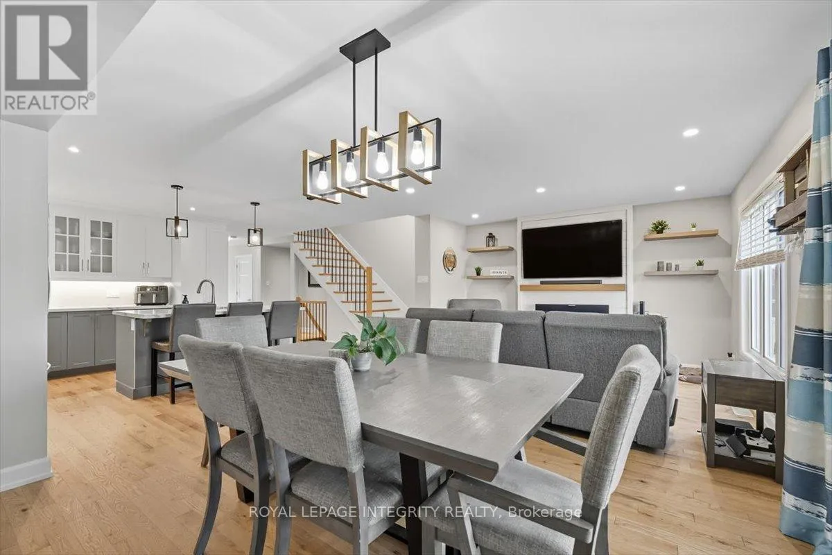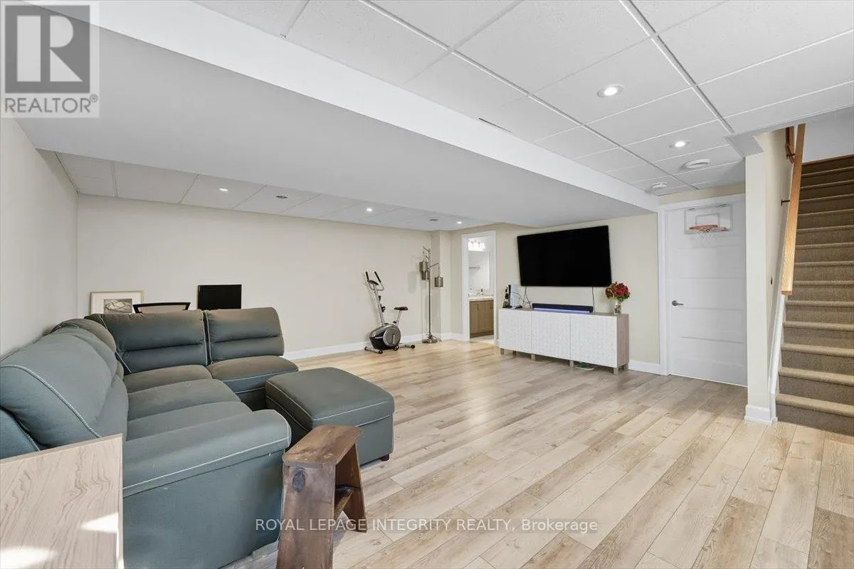 Cross Streets: Limoges / Savage. ** Directions: Limoges Road, East on Savage, right on Bourdeau. Property on the right. Welcome to this stunning 3-bedroom, 3-bathroom semi-detached home, built in 2021 and perfectly positioned with no rear neighbours, backing onto a serene pond. Complete with a detached garage and a driveway that easily accommodates four vehicles, this home truly has it all! Step inside to a bright, welcoming foyer with a large closet and direct garage access. A convenient powder room leads you into the open-concept main level, where gleaming hardwood floors set the tone. The chefs kitchen features an abundance of cabinet and counter space, stylish two-toned cabinetry, under-cabinet lighting, and a large island with sink and breakfast bar overlooking the dining area and living room with its cozy fireplace and shiplap accent wall - this space is perfect for everyday living and entertaining alike. Patio doors open to a fully fenced backyard with a 10' x 10' deck, gazebo, lush green space, beautiful pond views and access to the detached garage, perfectly set up for hobbyist or for all your toys! Upstairs, hardwood flooring continues into the primary suite with a spacious walk-in closet and cheater access to a spa-inspired 5-piece bathroom, complete with dual vanity, soaker tub, and glass shower. Two additional well-sized bedrooms and a laundry room with custom cabinetry complete this level. The finished lower level adds even more living space with a versatile family room, 3-piece bathroom, and plenty of storage. Located just minutes from Highway 417, schools, parks, and nestled in a quiet, family-friendly neighbourhood, this is the perfect place to call home! (id:27476)