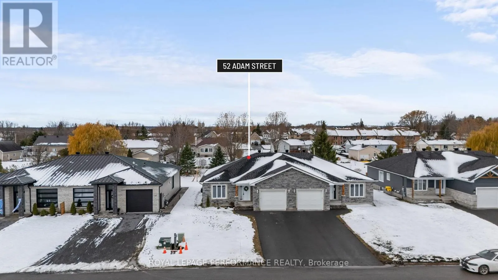 Cross Streets: Horizon Street / Adam Street. ** Directions: From Ottawa 417 East bound, take exit 79 (Limoges), turn right on Limoges Road, Turn Right on Adam St. Introducing 52 Adam Street in St-Albert, a modern semi-detached bungalow built in 2022 and set on an oversized 44' x 154' lot! Designed with comfort and quality in mind, this home offers bright, open-concept living with exceptional natural light throughout. The main floor features a seamless flow between the living room, dining area, and kitchen-perfect for everyday living and entertaining. You'll find 2 spacious bedrooms and a large, beautifully appointed bathroom that conveniently includes a laundry area. From the kitchen, step directly onto the expansive deck overlooking the impressive backyard. The home also includes direct access to a spacious 1-car garage. The partially finished basement offers fantastic potential, with drywall and electrical already completed, a plumbing rough-in in place, and prep work ready for future radiant floor heating. Additional highlights include an ICF foundation, large driveway, new gazebo, and high-end appliances included with the sale. Located in a quiet, friendly neighbourhood, this turn-key property delivers the perfect blend of comfort, modern style, and peaceful living. Book your showing today! (id:27476)
