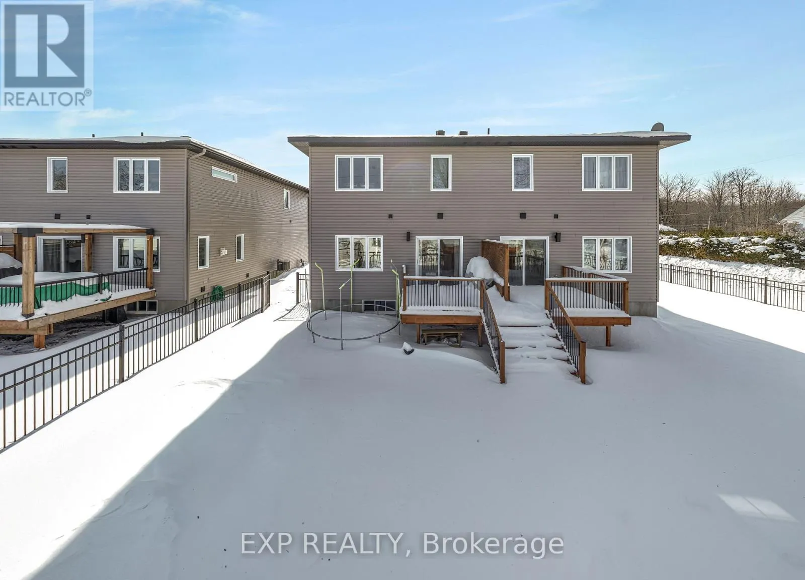 Cross Streets: Andrew and Mabel. ** Directions: From the 417 Eastbound, take the Limoges exit and go North on Limoges road. Turn right on Des Pins st. and left on Mabel road. Built in 2022 and still under Tarion warranty, this move-in-ready gem is the one buyers have been waiting for. Tucked away on a quiet, low-traffic street and set on a larger-than-standard, fully fenced lot, this home offers space, privacy, and peace of mind. Enjoy the backyard patio-perfect for entertaining or unwinding at the end of the day. Step inside to a bright, welcoming foyer with a large closet, powder room, and direct access to the garage. The main floor features impressive 9-foot ceilings, oversized windows, and a stunning kitchen with a massive island, a huge walk-in pantry, and quartz countertops throughout the entire home. Oversized stairs lead to the second level, where you'll find two spacious bedrooms, a modern family bathroom, a convenient laundry room, and a generous primary retreat complete with a large walk-in closet and a private ensuite. The unfinished basement is a blank canvas, already roughed-in for a future bathroom and ready for your personal touch. Stylish, modern, and low maintenance with carpet only on the stairs. Homes like this don't last-call today to book your private showing before it's gone. Check out the video link below! (id:27476)