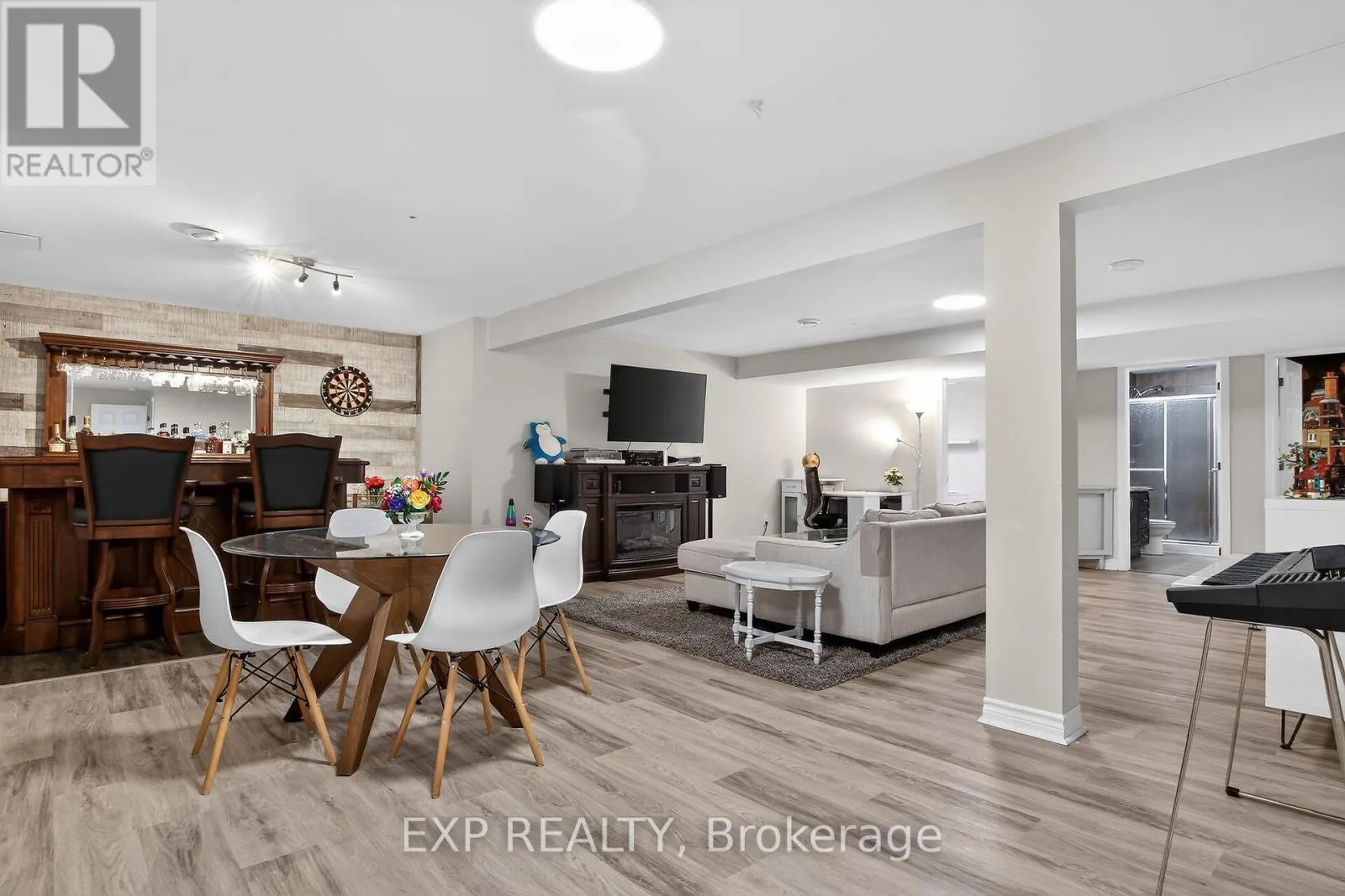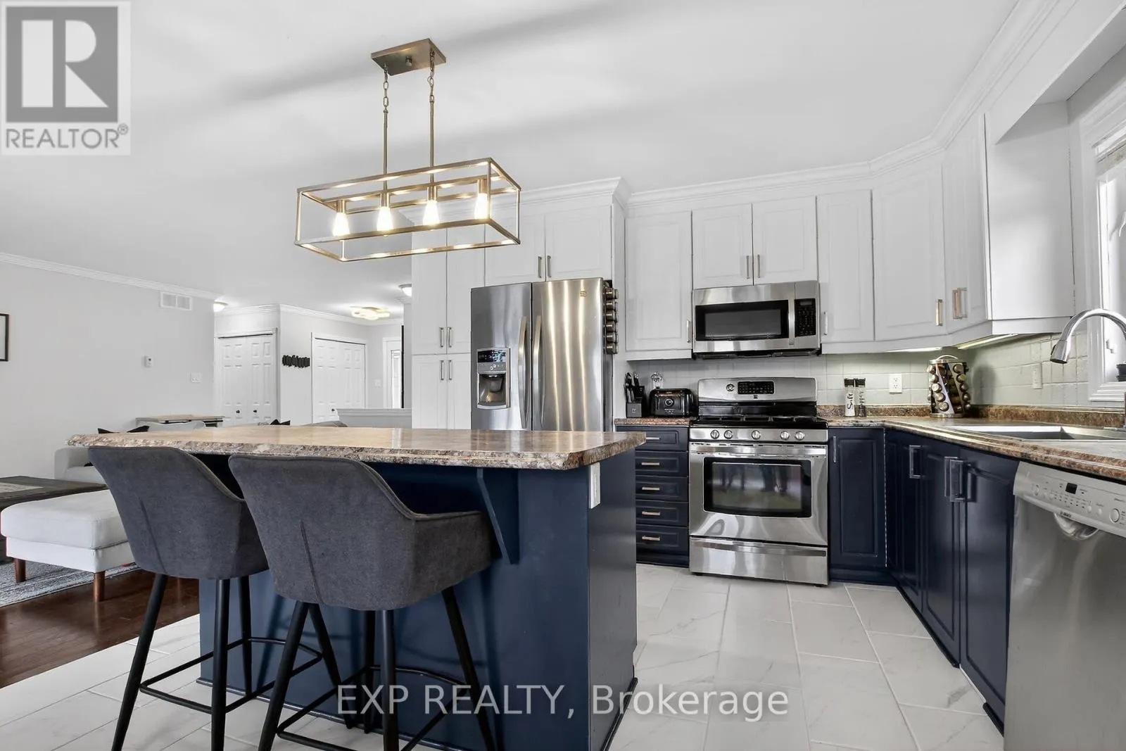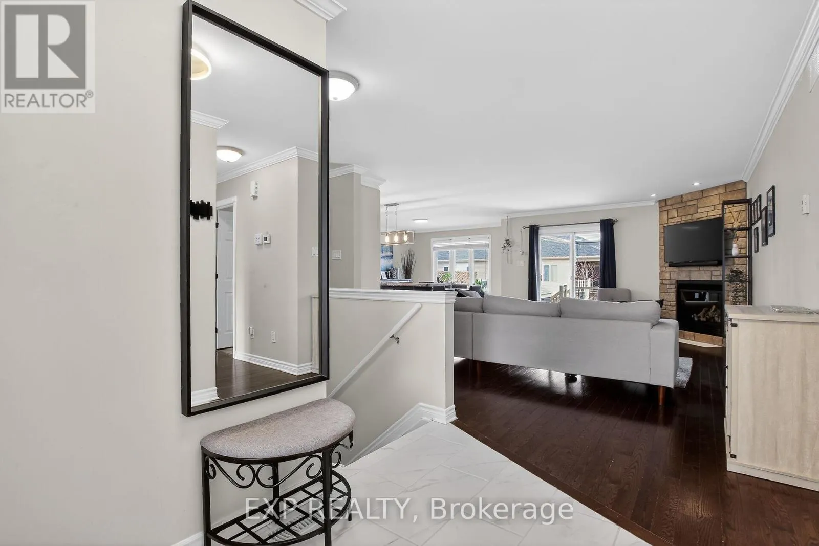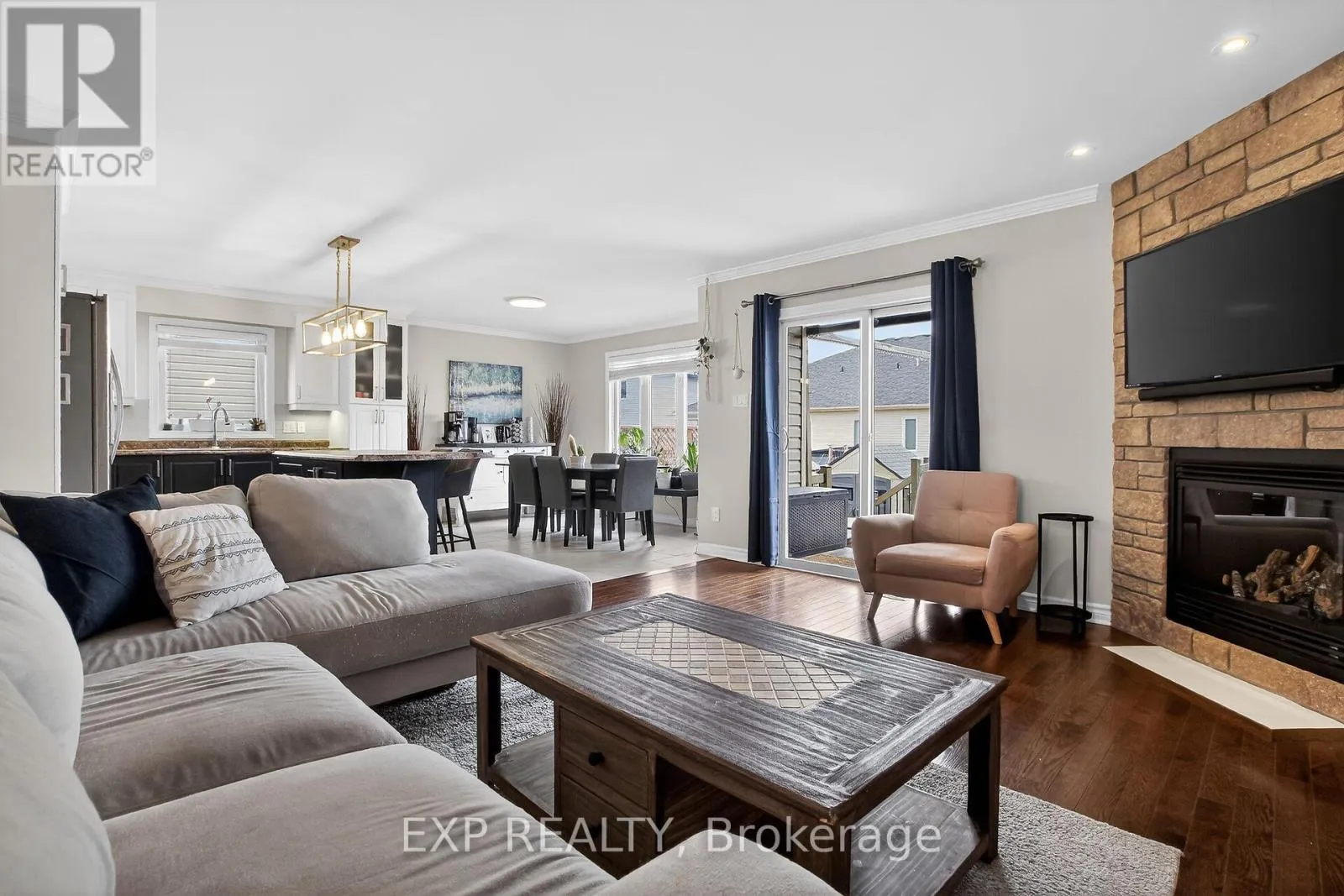 Cross Streets: Bourdeau and Chad. ** Directions: 417 - Limoges - Main/Bourdeau - Chad. Welcome to 80 Chad - Stone-faced, 2 Garage, 3 Bedroom, 3 Bathroom, Finished Basement Home! Large front entrance has plenty of Closet Space as you walk in. Hardwood in the main level Living Room that has a Gas Fireplace. Nice Crown Moulding, & Pot lights. Open concept center island updated kitchen with extended cabinetry, pot drawers, SS appliances, gas stove, under cabinet lighting and newer tile floors. Comfortable Dining area has nice natural light. Large Master Bedroom has 3 piece Ensuite and a walk-in closet. Full Bathroom, nice sized 2nd Bedroom, and Spacious Laundry area with garage access make up the main level. Basement is a 'Must See'. Professionally finished with great Bar Area, 3rd Bedroom, 3pc Bathroom, Gym/Flex Room, and the Huge Rec room. Fully Fenced Backyard with Deck is Landscaped nicely. Hot tub area and a Shed. Double Garage has High Ceilings and a side door plus inside access. Check out the Great Community of Limoges, Check out this Better than New Home! (id:27476)