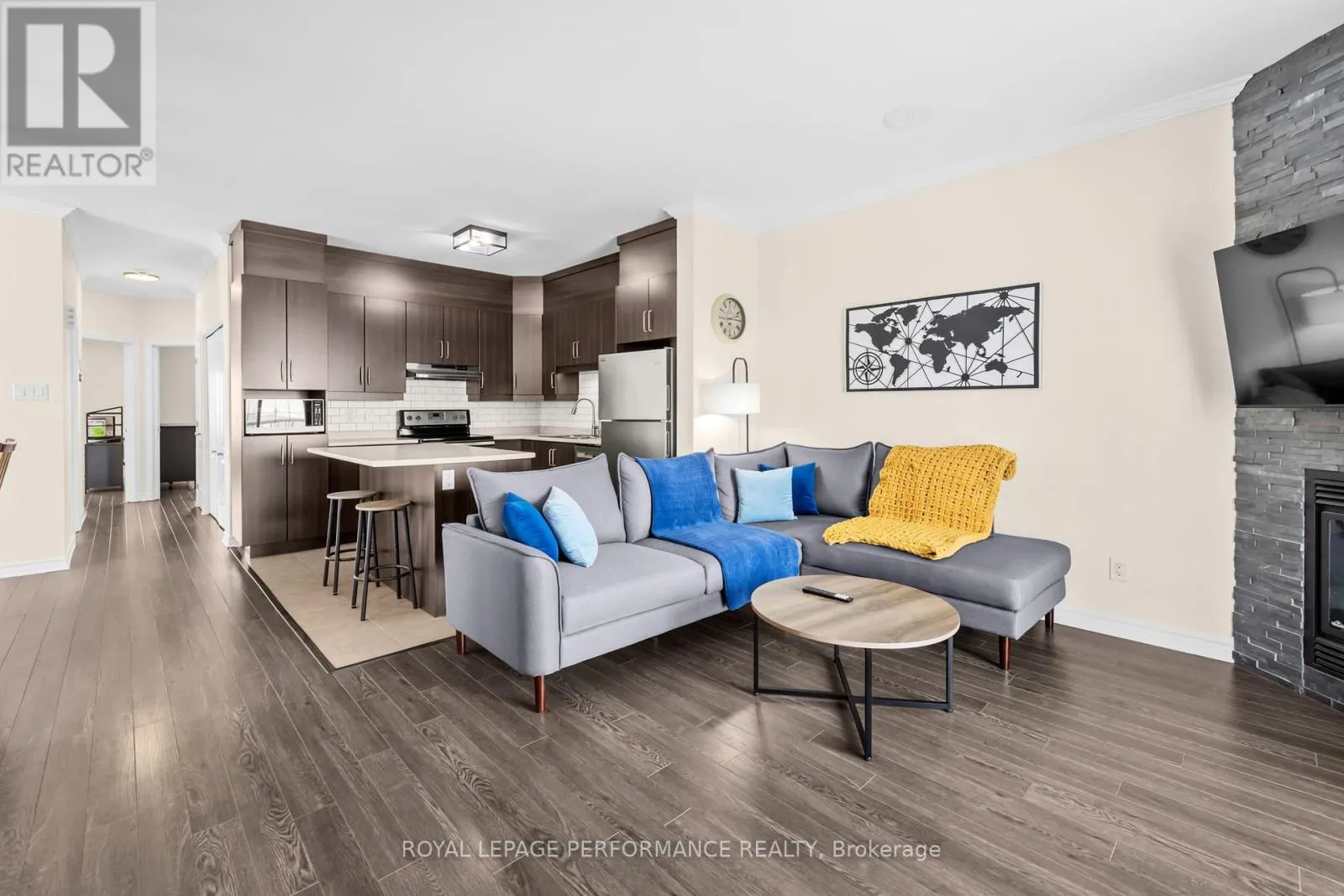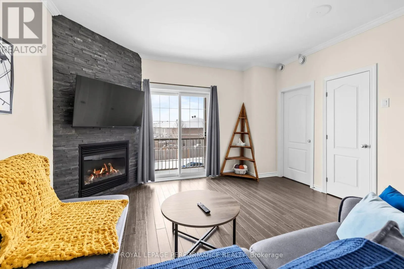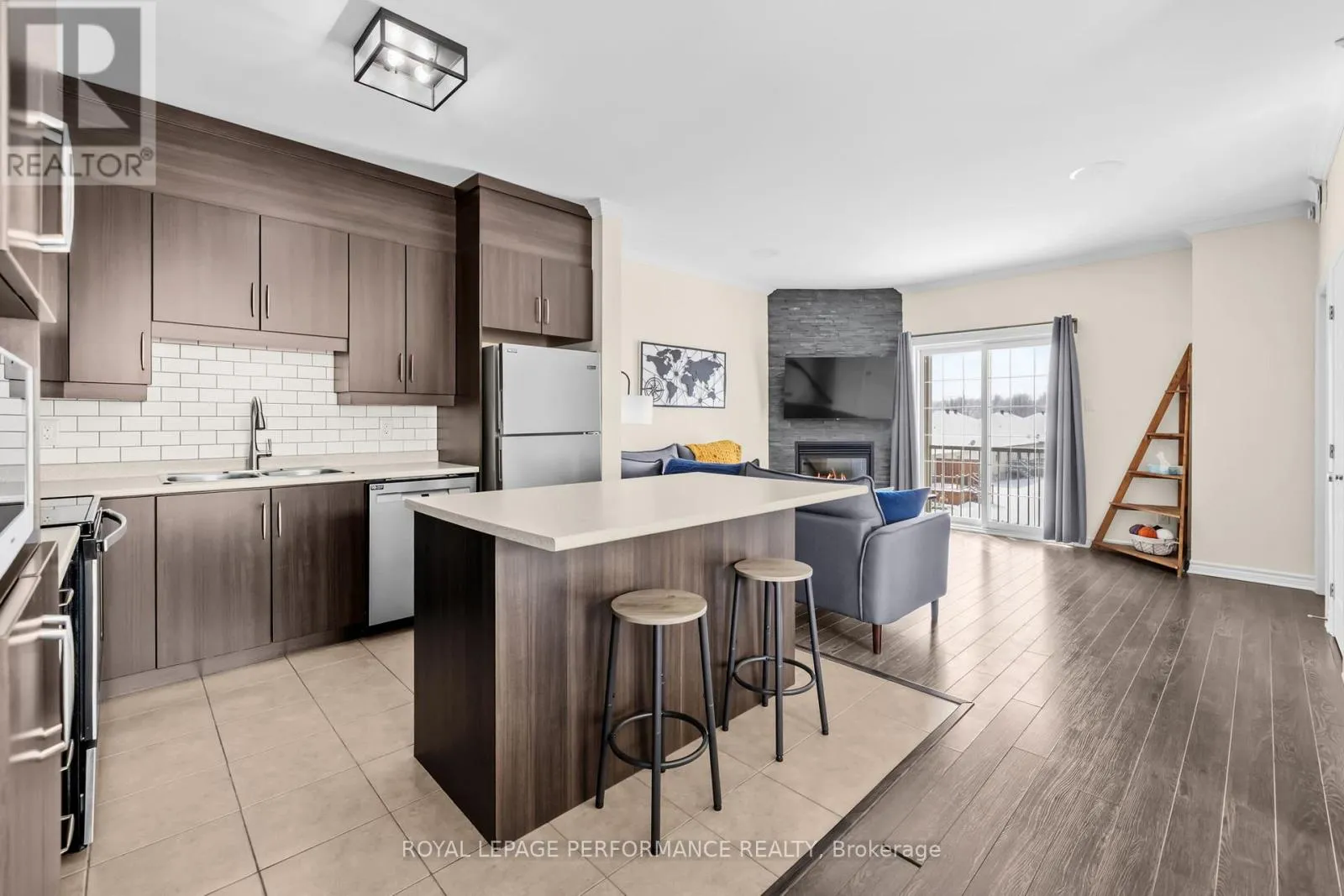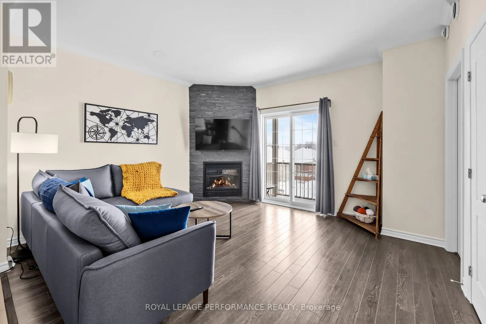 Cross Streets: Bourdeau Blvd/Savage St. ** Directions: Take Hwy 417 to Exit 79 for Limoges Rd/County Rd 9. Head north on Limoges Rd, turn right onto Savage St, then turn right onto Bourdeau Blvd. Your destination is on the left. Discover refined condo living in the heart of Limoges! This beautifully upgraded 2-bedroom, 1-bathroom UPPER UNIT offers the perfect blend of style, comfort, and convenience - just 25 minutes from Ottawa's downtown core, moments from the Larose Forest groomed trails, and a short drive to all of Limoges's amenities. Step inside to a spacious 1200 sq ft open concept layout, soaring 9' ceilings featuring modern finishes that flow throughout the unit. The kitchen impresses with upgraded cabinetry, sleek appliances, and a large island - ideal for casual dining or entertaining. The spacious dining area sets the scene, featuring modern lighting and oversized windows that flood the space with natural light. Unwind in the inviting living room anchored by a striking floor-to-ceiling stone fireplace, and easy access to your outdoor balcony. The primary bedroom retreat offers a large walk-in closet and a stylish accent wall. The spa-like bathroom is complete with both a standup shower and a deep soaker tub - your personal sanctuary after a long day. Practical touches round out this exceptional unit: in-suite laundry, and ample visitor parking conveniently located at the rear of the building. A move-in ready upper unit that truly has it all - don't miss your chance to call this one home! (id:27476)