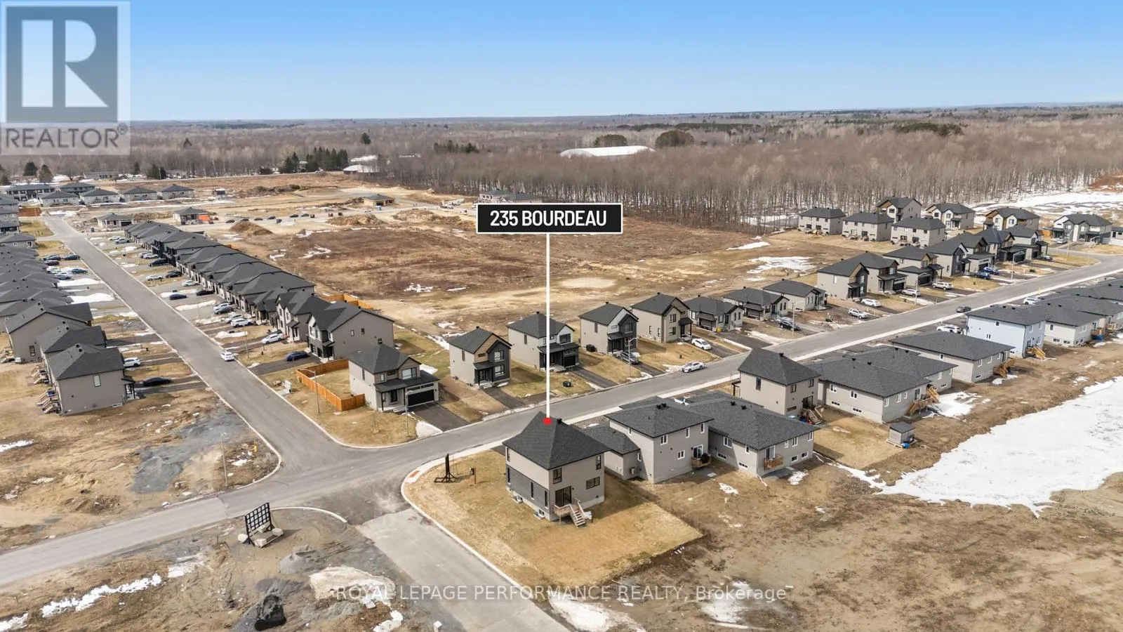 Cross Streets: Bourdeau Blvd/Savage St. ** Directions: Heading East on Hwy 417, take the Limoges exit, and turn left on Limoges Rd. towards Limoges. Continue down Limoges Rd and turn right on Savage St. Then right onto Bourdeau Blvd. Welcome to 235 Bourdeau in Limoges, a stunning, brand new home offering the perfect blend of space, style, and comfort, set on an oversized corner lot. Step inside to a bright and airy main floor flooded with natural sunlight, thanks to its south-facing windows and impressive 8-foot patio door. The open-concept layout is ideal for both everyday living and entertaining. At the heart of the home is a chef-inspired kitchen featuring a massive island with seating, sleek quartz countertops, abundant cabinetry, and a dedicated pantry for exceptional storage. The main level also includes a spacious dining area with direct access to the deck, a welcoming living room, and a convenient powder room. Upstairs, you'll find a generously sized primary bedroom complete with a walk-in closet and a private ensuite boasting a luxurious soaker tub and a ceramic shower. Two additional well-sized bedrooms, a modern 3-piece bathroom, and a large, dedicated laundry room complete the second floor. The unfinished basement offers endless potential, with oversized windows and ample space ready to be customized to suit your needs - whether it's a home gym, recreation area, or additional living space. Additional features include a double car garage and thoughtful design throughout. Located in the growing community of Limoges, this home puts you close to excellent schools, sports facilities, local events, the beautiful Larose Forest, and Calypso - Canada's largest themed water park. A perfect opportunity to own a modern, move-in-ready home in a vibrant and family-friendly neighborhood. (id:27476)