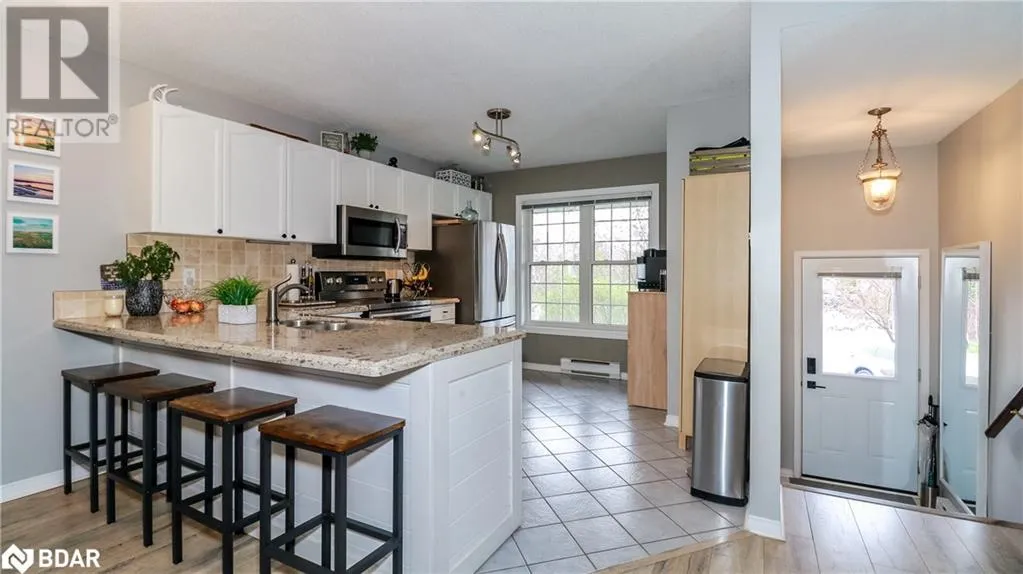 turn west at traffic light in downtown Thornbury to Alfred St, turn right to 150 Victoria stand straight in to 126 on right. *** WORRY FREE LIVING * ADORABLE 2 BEDROOM, 2 BATH CONDO IN HEART OF THORNBURY * FEATURING OPEN CONCEPT MAIN FLOOR WITH CATHEDRAL CEILING & WELL APPOINTED GAS FIREPLACE WHICH EASLEY HEATS UPPER 2 FLOORS * MODERN LIGHT FIXTURES, QUARTZ COUNTERTOP, UPGRADER FLOORING * LARGE LOFT FEATURES PRIMARY BEDROOM WITH FULL BATHROOM * LOWER LEVEL HAS PRIVATE WALKOUT TO BACKYARD, FAMILY ROOM, BEDROOM & FULL BATH * LAUNDRY IS NICELY TUCKED IN UNDER THE STAIRS * THIS INCREDIBLE COMPLEX HAS 2 POOLS, TENNIS, PICKLEBALL COURTS & CLUB HOUSE FOR YOUR ENJOYMENT *** THIS IS WERE YOU WANT TO BE THIS SUMMER*** (id:27476)