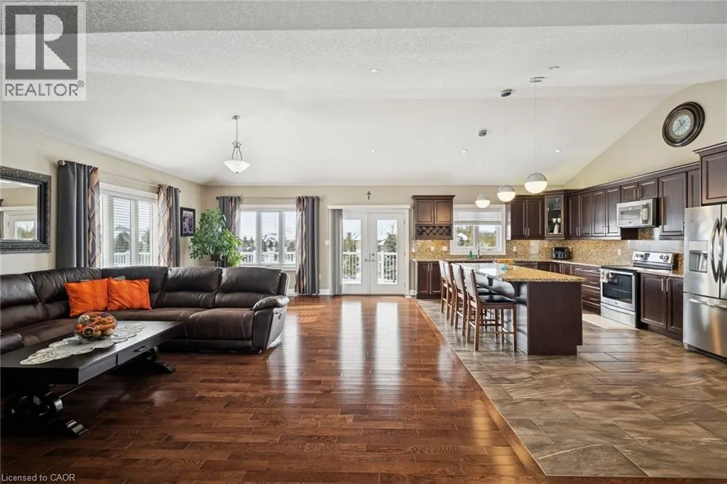 From HWY 27 turn West on 10th Sideroad, Continue past 11th Line, Turn Left on Brolley Cres, House is the Third property on the right. Welcome to an extraordinary custom-built bungalow offering nearly 5,000 sq. ft. of impeccably finished living space, set in an exclusive neighbourhood of just 14 distinguished properties. This home is a rare blend of elegant, thoughtful design, and, resort-inspired living. From the moment you enter, you will be wowed by the striking vaulted ceiling, and the luxurious heart of the home. The gourmet custom kitchen is appointed with premium stainless-steel appliances, granite counters, a large statement island, and elegant bay windows that bathe the space in natural light. The seamless flow into the formal dining room and sophisticated living room is designed for both grand entertaining and refined everyday living. The master bedroom is a private sanctuary, featuring direct access to an expansive deck overlooking the meticulously landscaped grounds. Step outside to your own secluded oasis â framed by mature spruce trees for exceptional privacy â complete with a heated saltwater pool and generous entertaining spaces designed for unforgettable gatherings or serene relaxation. The fully finished walk-out lower level, with its own private entrance, elevates this homeâs versatility and value. A stunning custom-built bar anchors the space, creating an upscale entertainment lounge atmosphere. With its expansive layout, this level offers outstanding potential for a luxury in-law suite, multi-generational living, or a 3-bedroom income-generating suite â an exceptional opportunity for additional revenue without compromising privacy. Every detail of this private resort reflects quality craftsmanship, and prestige. It is a gem that masterfully blends luxury and sensibility. Add to that the investment potential, and this in indeed one remarkable home. (id:27476)
