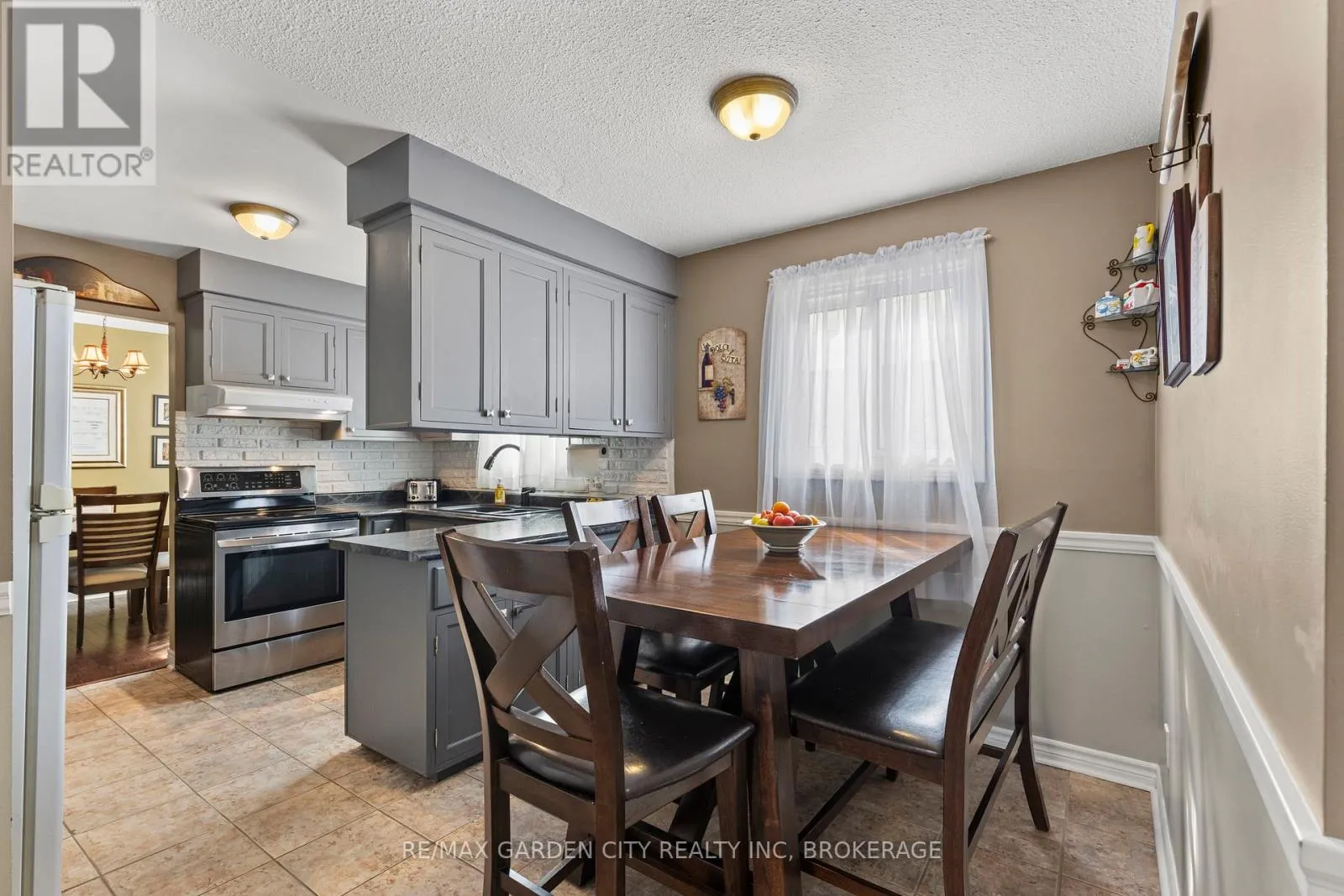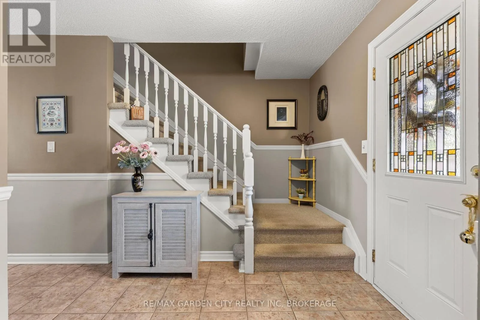 Cross Streets: Capri/Naples. ** Directions: Keefer to Capri. Welcome to 43 Capri in the heart of Confederation Heights Thorold. This family home shows pride of ownership offering an inviting foyer leading to a living room with large picture window and separate dining room both with hardwood floors. Eatin kitchen with plenty of cabinets and breakfast bar. 2pc guest bath on main floor and access to double garage. this home offers 4 spacious bedrooms and a 4pc bath upstairs. Basement offering a family sized recroom with fireplace, a cold room and a large laundry/ storage room with potential to add a 5th bedroom, office or an extension to the recroom. Fenced yard with patio and beautifully landscaped. Newer roof, furnace and central air. (id:27476)