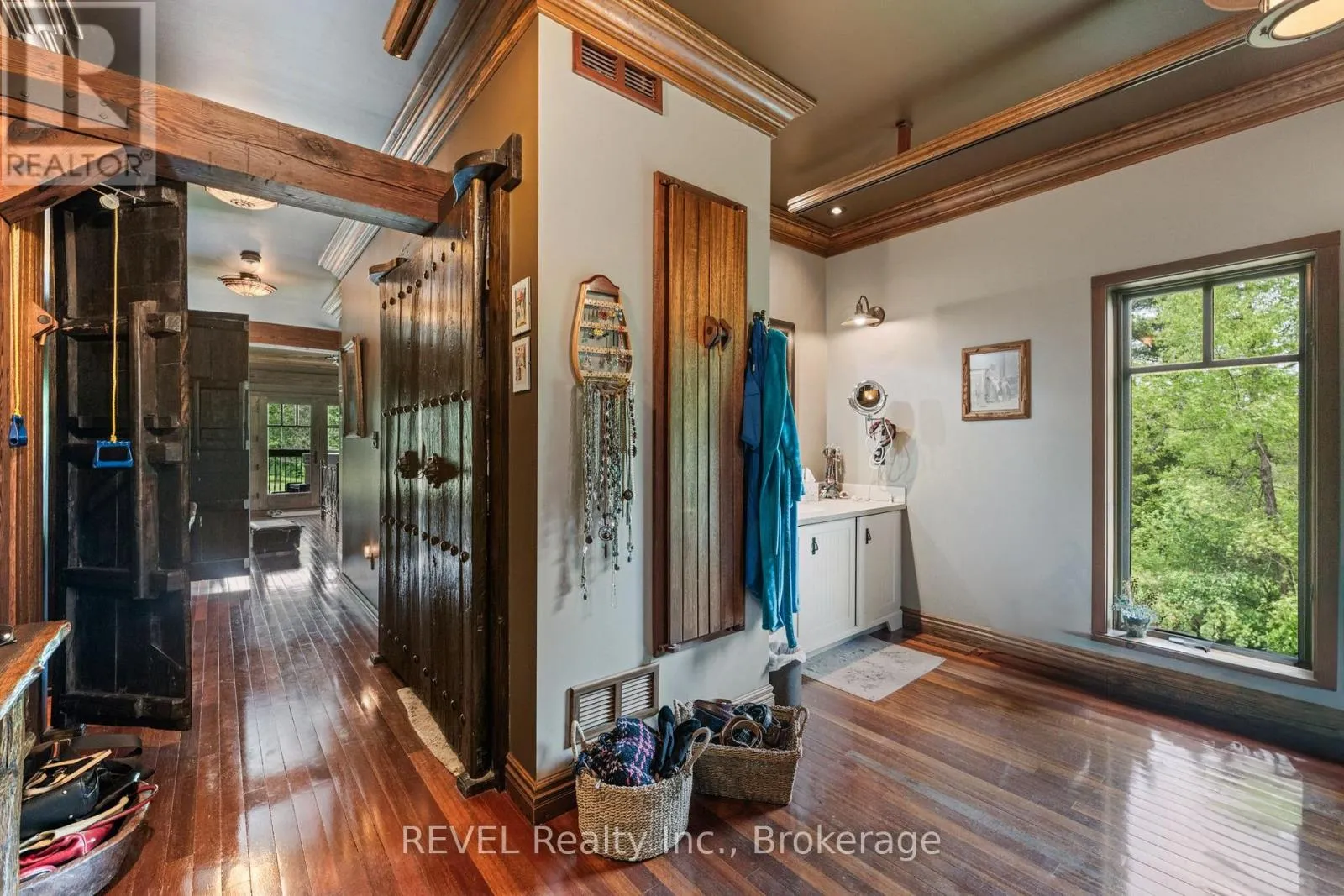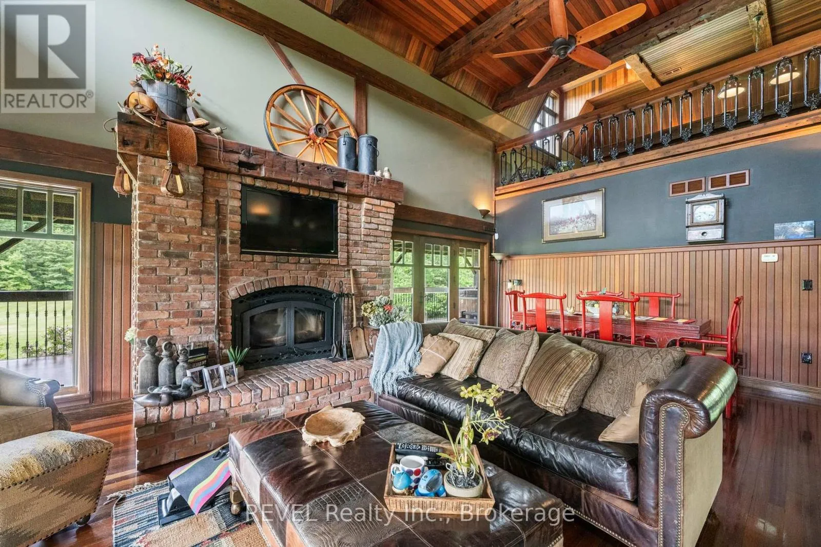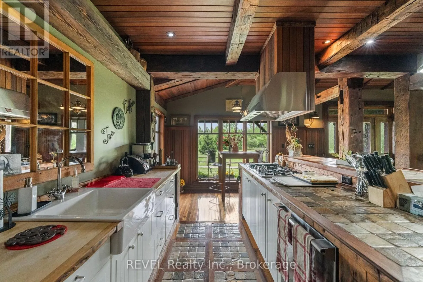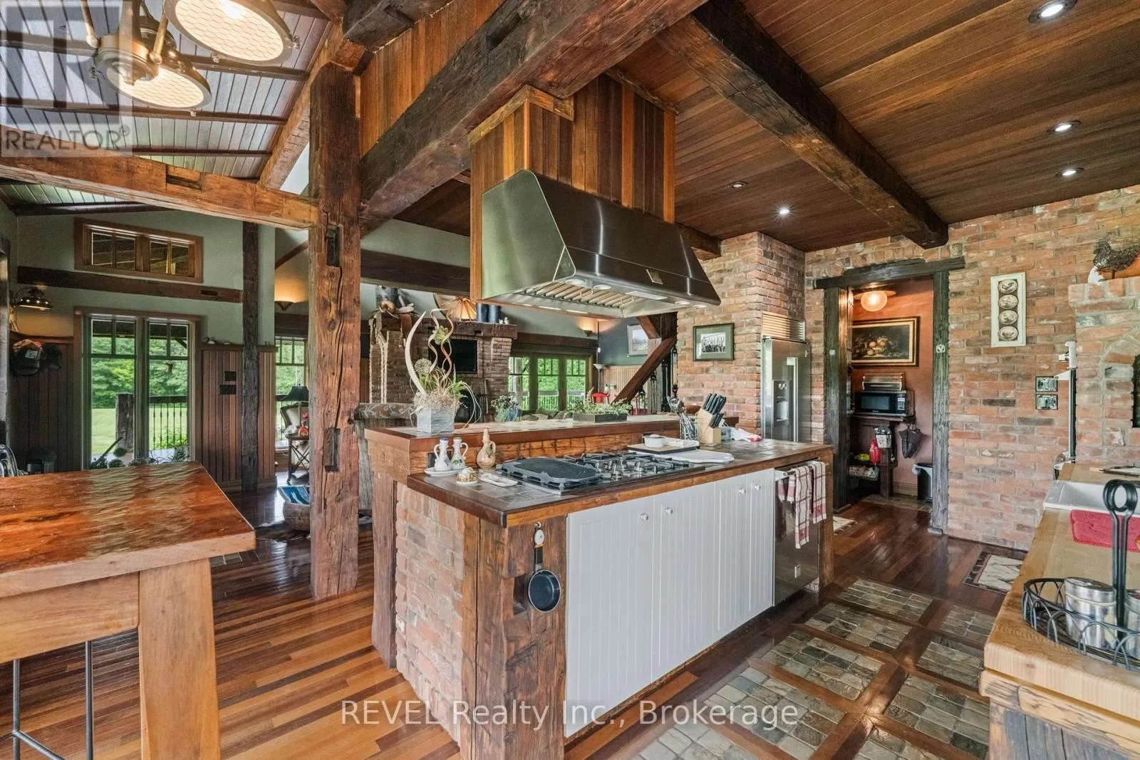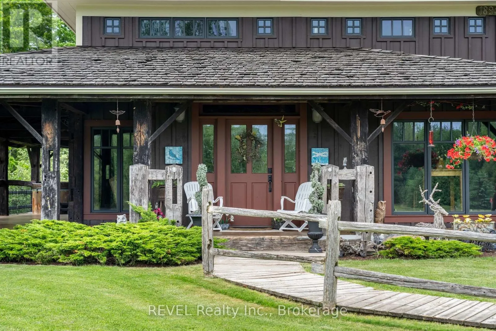 DECEW RD/MERRITTVILLE HWY Welcome to 3111 Faywell Road situation in the quaint town of Fonthill. Once known as the 1896 "Old SeedBarn" this country barn style home has been reclaimed and rebuilt on this 17 acres parcel of land that boasts walking trails, a private waterfront pond, a long winding driveway and a golfing green. With nearly 1200 feet of Lake Gibson waterfront, enjoy your coffee with morning waterfront views on your wraparound covered porch and veranda. Make your way inside, the main features a stunning open concept dinning, living and kitchen area with nearly 17 foot ceilings. Custom wainscotting and panels cover every inch of this character home. With exposed beam construction you are able to take in the detailed craftsmanship of this build.Primary bedroom, ensuite and custom walk in closet conveniently located on the main level. Make your way up the staircase to the loft entertainment area with a wet bar. Additionally you will find another bedroom and full bathroom. The home features nearly 10,000 sq/ft; 2550 sq/ft of finished living space, 2400 sq/ft drive in basement, three car garage and additional 4661 sq/ft of constructed spaces. The lower level features a workshop, entertainment area and plenty of space for the car enthusiast. Not to mention the three car attached garage with a second storey waiting for your finishing touches. (id:27476)