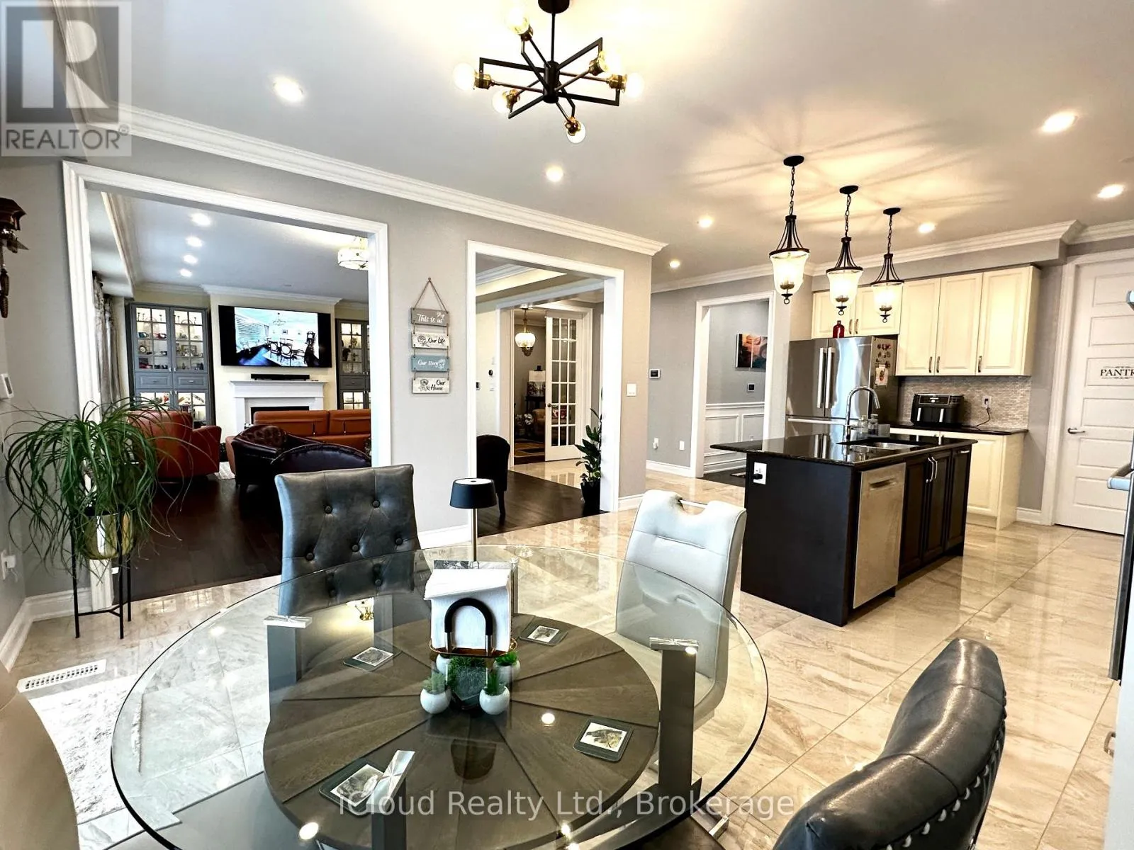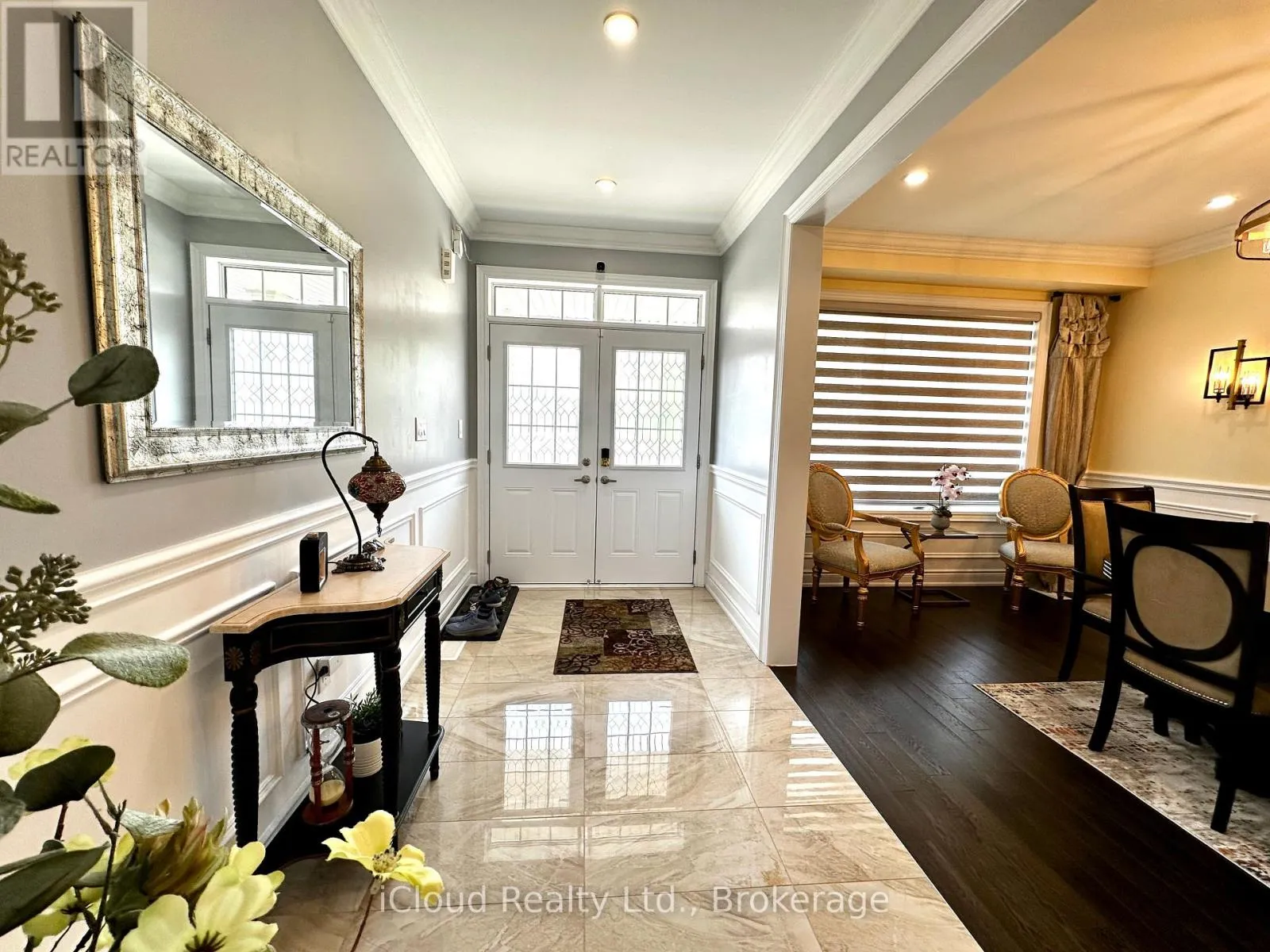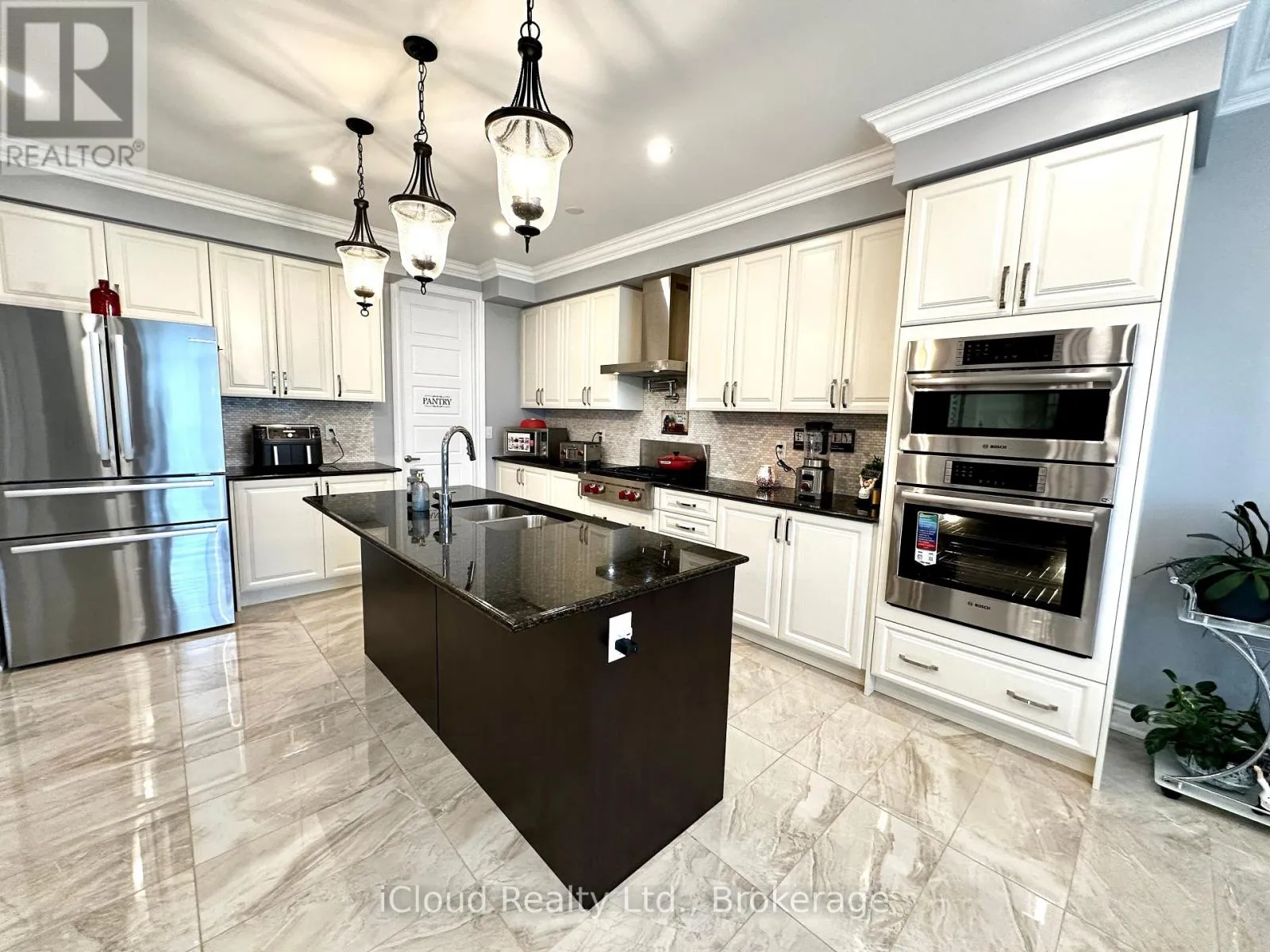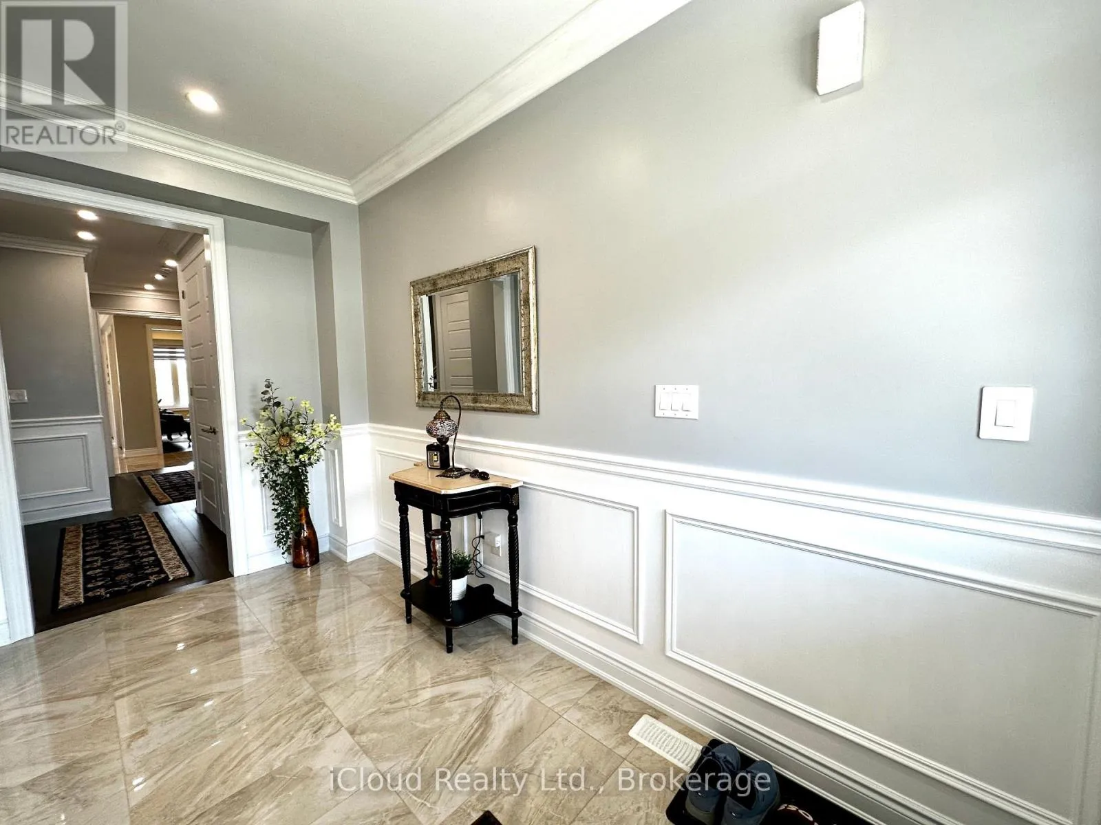 Cross Streets: Alexandra Dr and Steven Rd. ** Directions: Hwy 406, Merritt Rd Exit, turn left on Kottmeier Rd & left on Alexandra Dr. Prestigious 4+1 Bedroom, 4-Washroom Detached Home | 3,531 Sq. Ft. Above Ground (MPAC) | Premium 44-ft Lot | No Sidewalk | No Rear Neighbours | 6 Parking Spaces. Over $250K in luxury upgrades incl. All hardwood & shiny marble floors, Turkish runners, 8-feet tall doors, wainscoting, crown moulding, smooth ceiling, 6-inch trims & iron pickets. Main floor custom made closets. Largest custom Gourmet kitchen with WOLF Gas range, Bosch appliances including built-in wall oven & microwave, back splash, Pot filler & contrast granite Island with built-in trash bin. Over the island hang three elegant electric lantern lights. Walk-in Butler's pantry. Great family room with built-in shelving, 3 oversized windows, and gas fireplace. Private main floor den with window & 8' tall French doors. The mudroom with built-in bench seating and double closet. Separate dining combined with Living room with elegant wall sconce lighting for formal entertaining. Second Floor, 4 generously sized bedrooms, each with walk-in closets and ensuite/semi-ensuite access. A total of 3 full baths upstairs, including one semi-ensuite with double sinks vanities. Primary suite with private foyer, spa-inspired ensuite (frameless glass shower, soaker tub, private toilet room with closet & window, heated towel rack, Bluetooth mirrors), and massive walk-in closet like DEN. Second primary suite with private ensuite and rain shower. Laundry room like DEN size with laundry tub and double closet. The unfinished basement with cold cellar, upgraded windows, a 3-piece bath rough-in. 200-amp panel, 3.5-ton A/C, water softener & humidifier. Smart home: Built-in wall displays with speakers, Wi-Fi garage door openers with cameras & battery backup. Smart door locks and indoor and outdoor cameras, digital bath fan timers, smart switches, dual Wi-Fi pot lights, CAT6 wiring, and Gigabit Ethernet switch. Additional to all existing ceiling lights added 78 WiFi indoor Dual POTLIGHTS with night mode.See FEATURE SHEET for details. (id:27476)