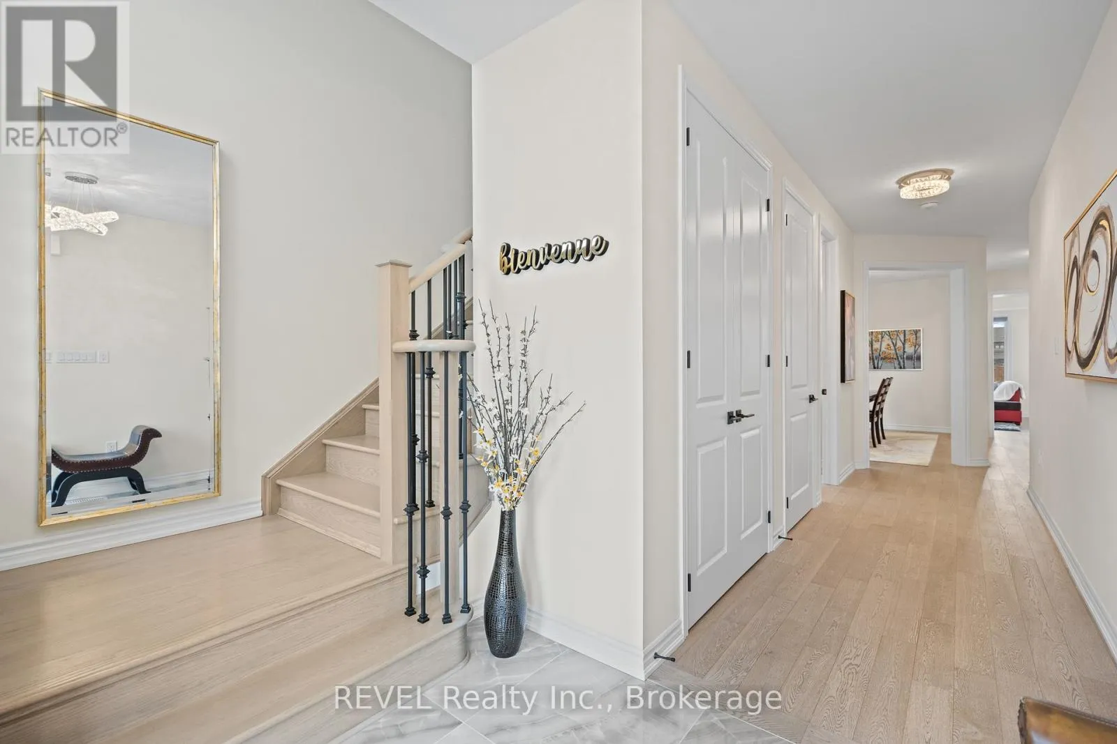 Cross Streets: Barker Pkwy. ** Directions: ON-58-Barker Pkwy-Explorer Wy. Modern Luxury Meets Ravine Living! Set on a premium 50 ft ravine lot with breathtaking sunset views, this architecturally striking 2-storey home delivers style, space, and sophistication. From the moment you arrive, the bold, modern exterior makes an unforgettable impression, while inside, designer finishes and thoughtful upgrades create a home that's as functional as it is beautiful. Step through double doors to a bright, open main floor with 9 ceilings, solid 8 doors, and 24x24 porcelain tile. Engineered hardwood flows through the dining and living spaces, anchored by a sleek gas fireplace and oversized windows framing the natural views. Triple French doors lead to a spacious deck with gas BBQ hookup perfect for entertaining. The chefs kitchen is a showstopper, with custom cabinetry, gold hardware, soft-close drawers, glass accents, and premium built-in Dacor appliances including a 30 column fridge, 24 freezer, glass cooktop, and combo oven/microwave. Upstairs, an oak staircase with wrought iron details leads to generous bedrooms. The primary retreat offers a spa-inspired ensuite with double sinks, a freestanding tub, and a frameless glass shower. Additional bedrooms share a stylish Jack & Jill bath, also finished with glass and floating vanities. The walkout basement is ready for your vision featuring oversized windows, triple French doors, laundry hook-up, rough-in bath, and a separate side entrance, perfect for an in-law suite, office, or income potential. Extras: Nest thermostat, motorized blinds, upgraded lighting, central vac, humidifier, A/C, garage access with mudroom and walk-in pantry, garage opener, and EV charger rough-in. This home blends modern elegance with everyday comfort designed for those who want more. (id:27476)