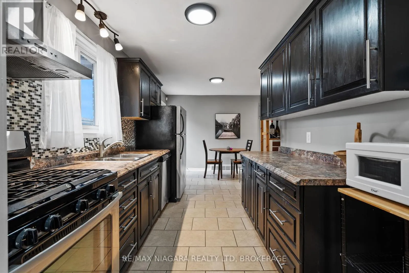 Cross Streets: Collier and Confederation. ** Directions: Collier rd to Confederation Ave to Keefer Rd to Lampman. Welcome to this beautifully finished semi detached backsplit tucked away on a quiet mature street in Thorold offering the perfect blend of comfort functionality and style. This move in ready home has been updated from top to bottom and features a bright open main floor with a well designed kitchen complete with a gas stove and plenty of workspace flowing seamlessly into a spacious living and dining area ideal for both relaxing and entertaining. The freshly painted interior with pot lights and smooth ceilings gives the home a modern and welcoming feel. Upstairs you will find three generous bedrooms and a full bathroom providing ample space for family or guests. The fully finished lower level adds even more versatility with a three piece bathroom and a flexible layout that could serve as a fourth bedroom office or recreation room. The backyard is fully fenced offering a private area for outdoor enjoyment gardening or gatherings and the gated parking pad adds convenience and peace of mind. This is a home where every detail has been cared for ready for you to move in and enjoy life in one of Thorold's most established neighbourhoods! (id:27476)