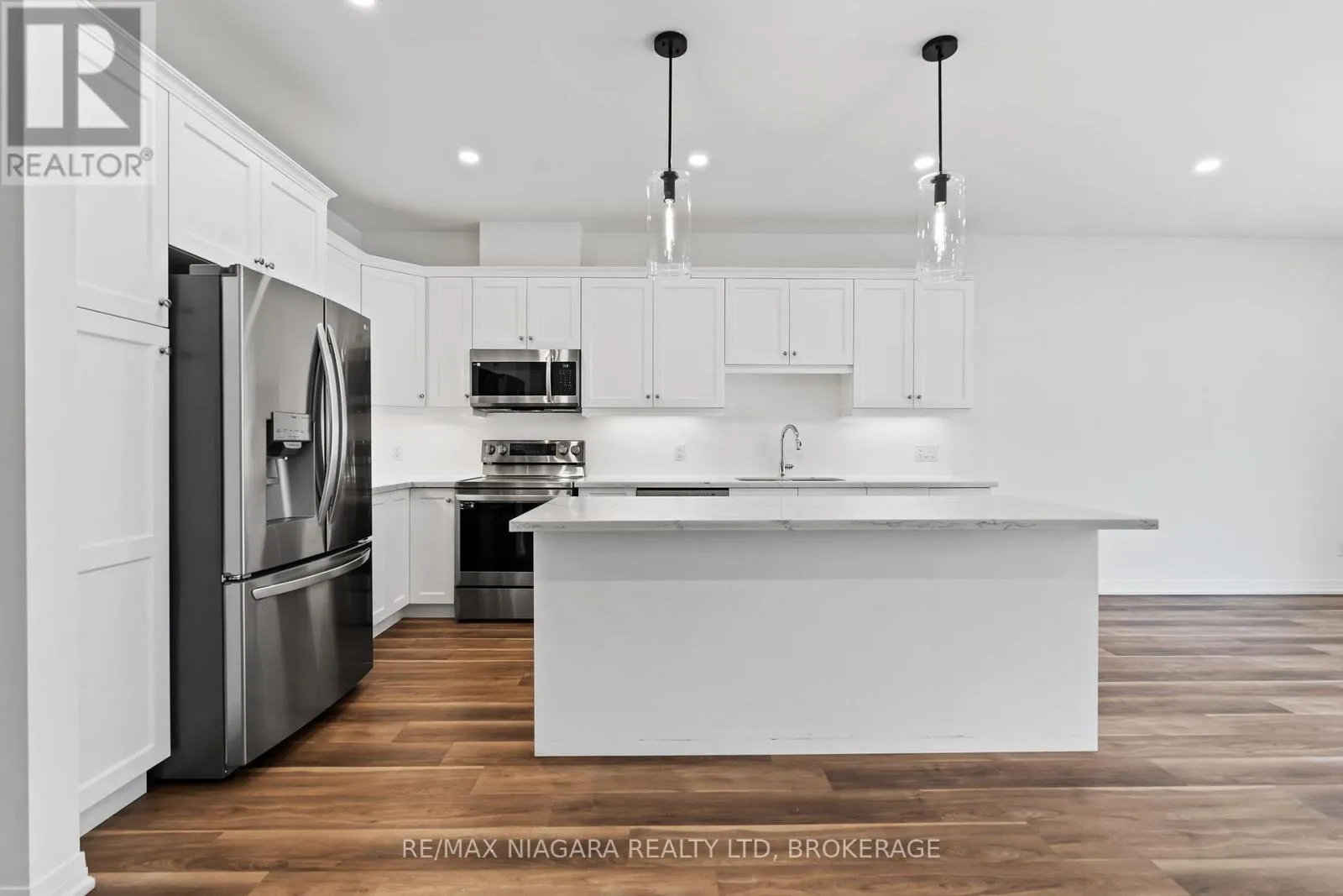 Cross Streets: Richmond & Confederation. ** Directions: Richmond and Confederation. Discover over 2600 sq ft of beautifully finished living space in this bungalow townhome with its distinctive contemporary look and located in a wooded private setting on the edge of Thorold. Richmond Woods is your tranquil oasis. This thoughtfully designed home features 3+1 bedrooms, 2+1 bathrooms, a 1.5 car garage and main floor living for ultimate comfort and convenience with additional basement living space. Enjoy an open-concept layout filled with natural light, hardwood flooring, and a formal dining area ideal for entertaining. The upgraded kitchen offers a large island, quartz countertops, and seamless flow to your private deck, perfect for morning coffee or evening relaxation. Bathrooms feature quartz countertops and tiled glass showers, blending modern elegance with everyday functionality. The finished basement boasts large living room ideal for family or recreational space, with functional sink and space to add a dishwasher and fridge. Whether you're looking to downsize or enjoy a low-maintenance lifestyle in a serene, premium location, this move-in-ready home offers the perfect balance of space, style, and tranquility. (id:27476)
