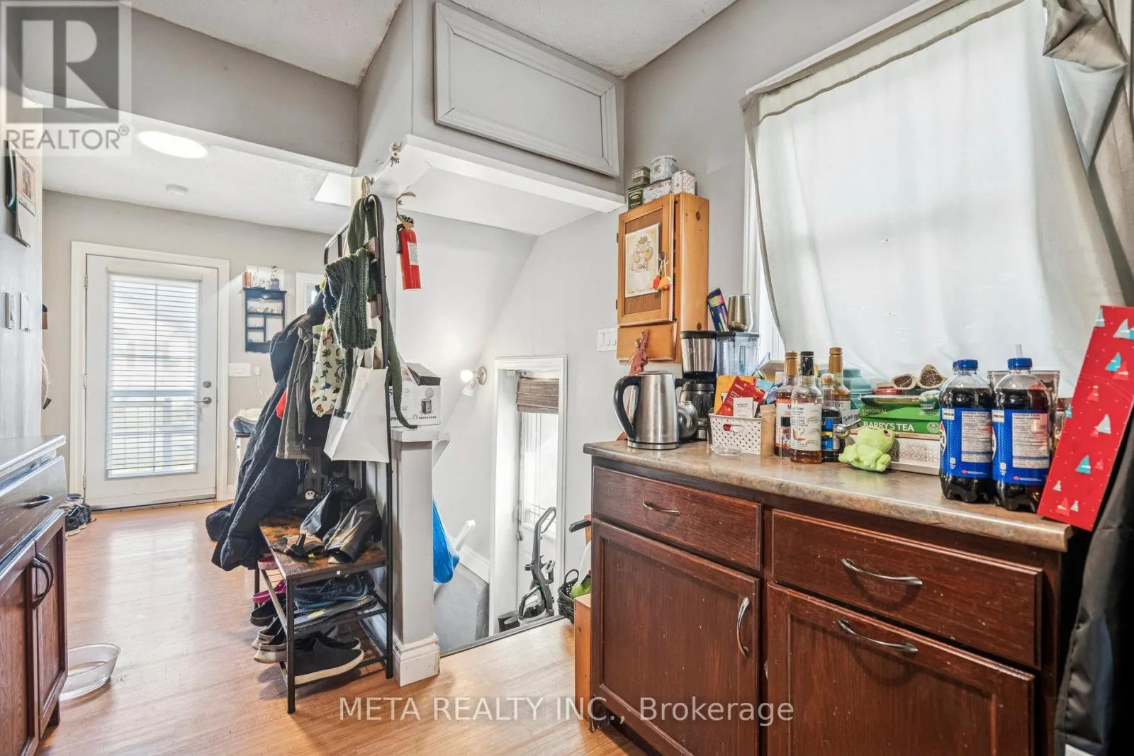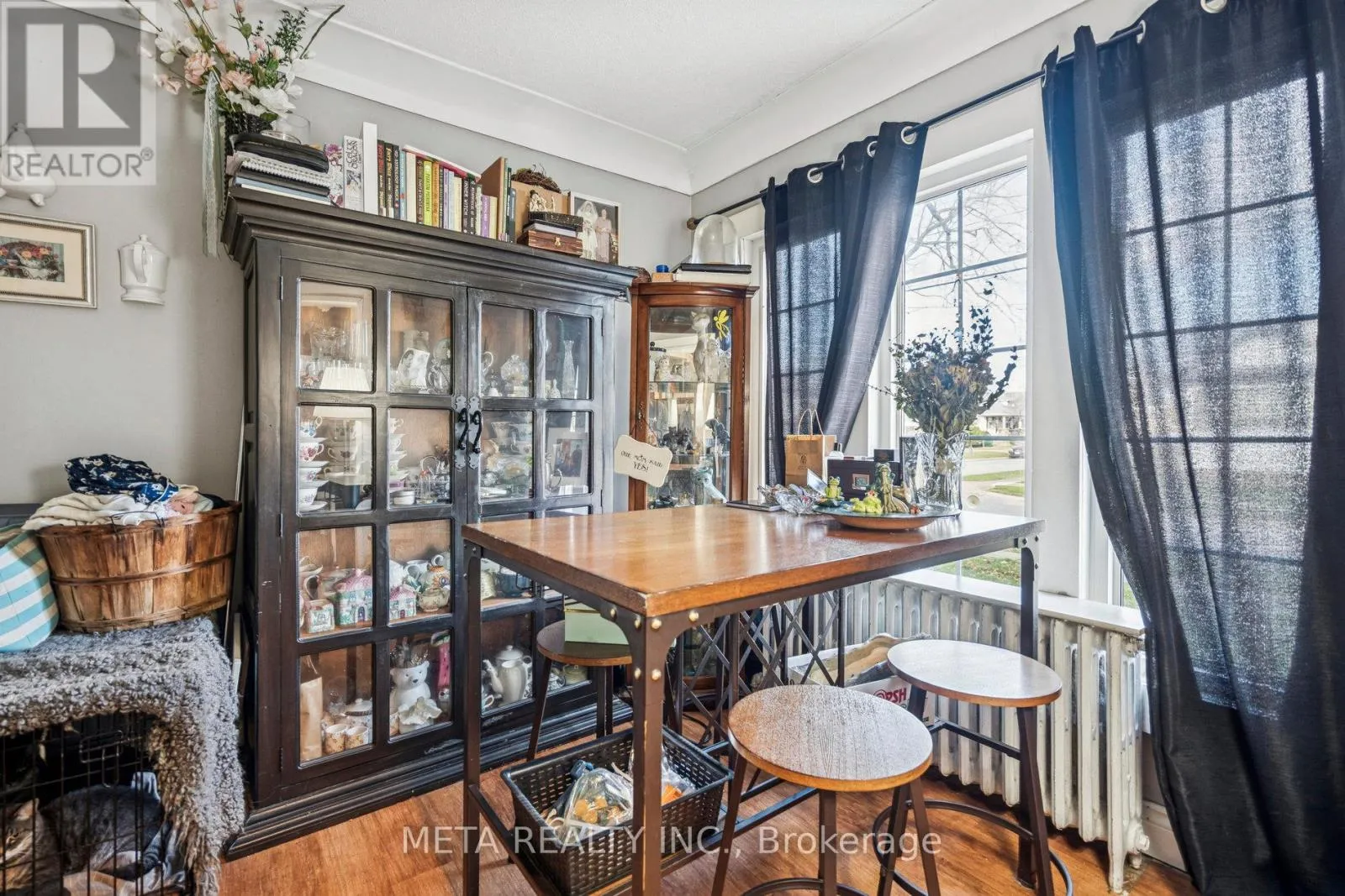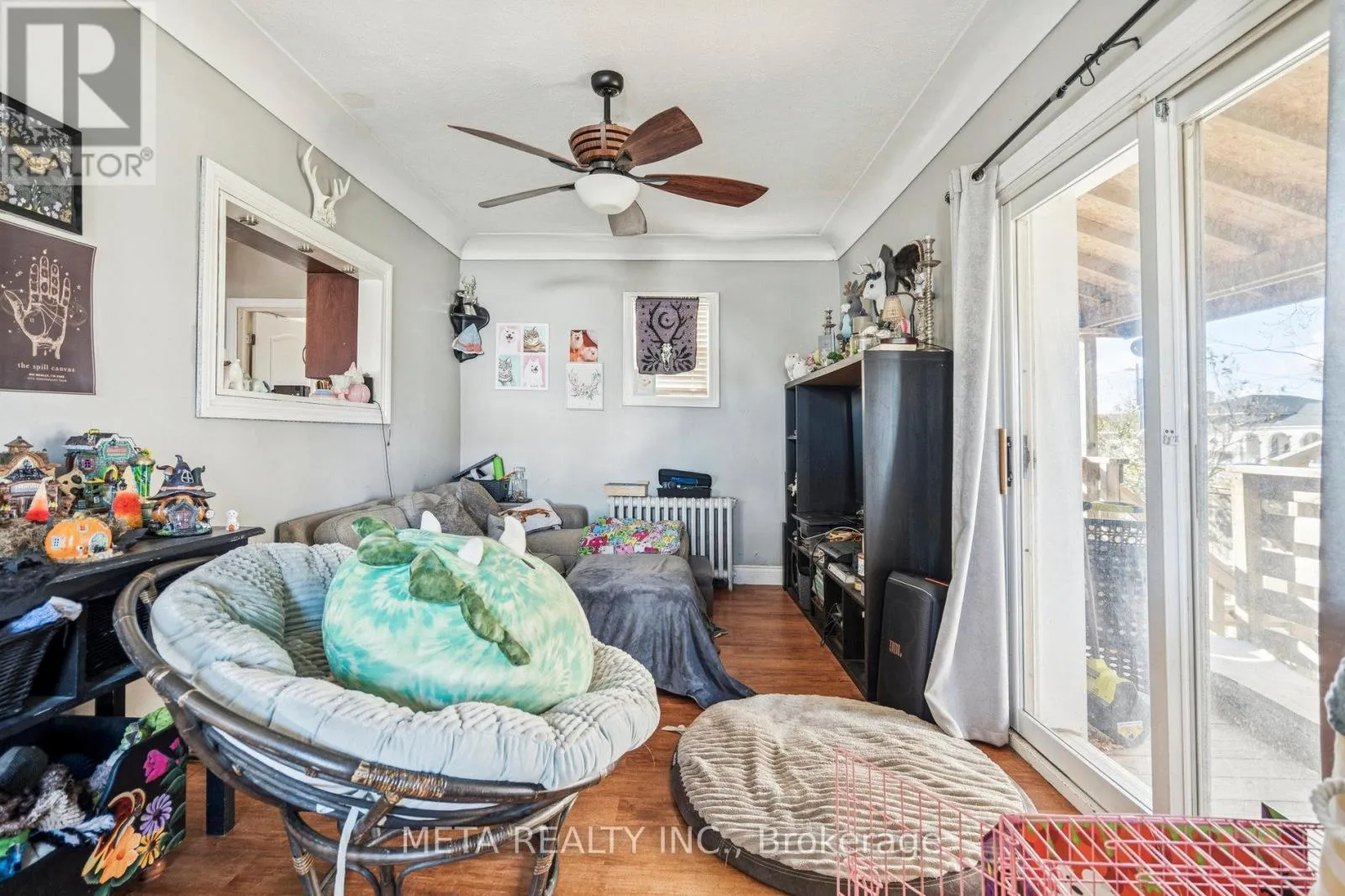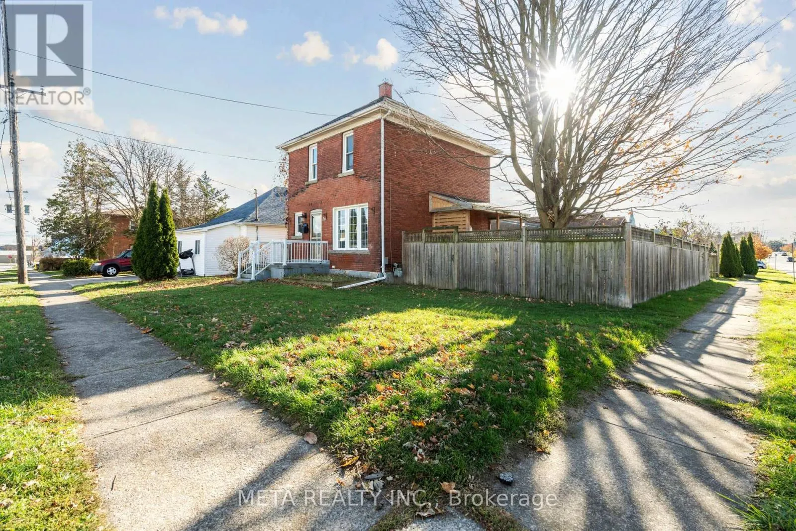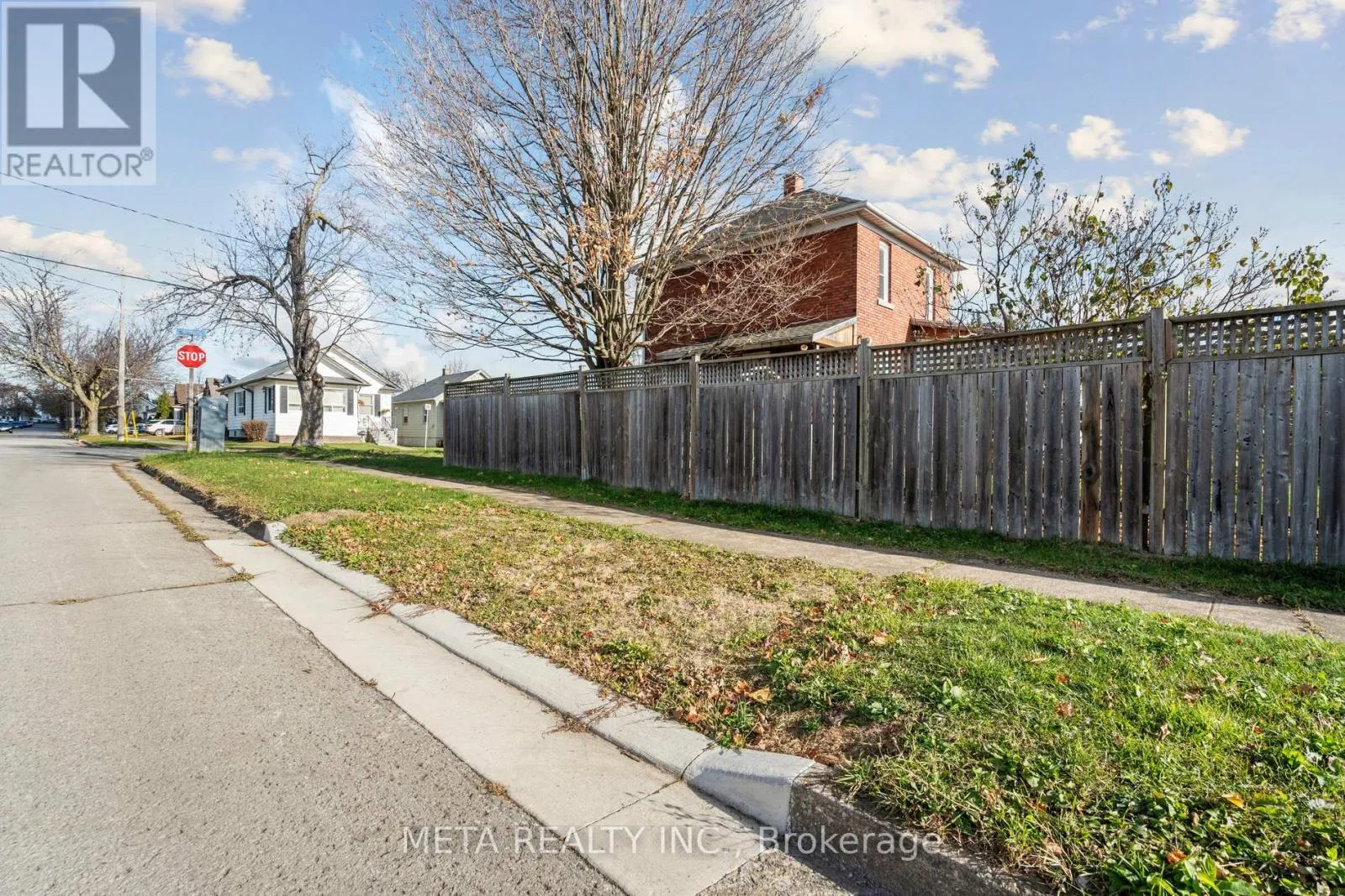 Cross Streets: West Street North/Ann. ** Directions: Take St. Davids Rd. W, Right onto Queen St N, Turn right onto Ann Street. Charming and functional, this 3-bedroom, solid brick two-storey home is situated on a corner lot with a driveway on one side and the front door on another. The bright living/dining area features crown moulding and patio doors to a covered deck, perfect for BBQs or relaxing. The vaulted-ceiling family room with sliding doors to the backyard offers cozy hangout space, while the efficient galley kitchen includes a pass-through window and dishwasher. Natural light fills every room, and updates like newer roof shingles (2020) and a replaced sanitary line with backflow valve (2022) provide peace of mind. The backyard is perfect for fun and relaxation, with space for kids to play and adults to unwind.Steps to a local elementary school and amenities, this move-in-ready home is ideal for first-time buyers or families alike! (id:27476)