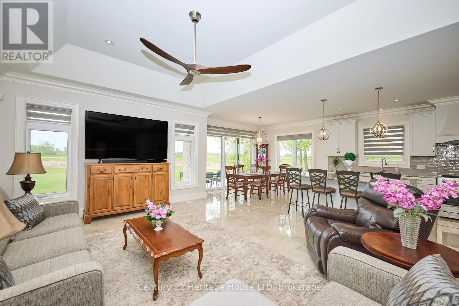 Cross Streets: River and Biggar. ** Directions: Off River St. One of a kind, custom built home with views of the canal, 2800 sq ft of finished living space, with a fully finished basement with in-law capability with a 2nd kitchen and separate walk-up entrance to the double garage, plus a bonus detached double garage with 3rd kitchen, all on 120 ft frontage! Potential to sever side lot into another building lot. Watch the ships go by from your own window, driveway or porch! Located in close proximity to the future South Niagara Hospital. This stunning home offers oversized tile flooring and hardwood flooring throughout, an open concept Great Room with a gorgeous kitchen w/walk-in pantry, high end European s/s appliances, oversized island, granite counters & tile backsplash. Patio doors off the dining area lead to your large covered concrete patio! The primary suite offers a generous sized walk-in closet & 3pc ensuite w/large custom tile and glass shower. A guest bedroom with bonus office or sitting room, 4pc bath, and laundry/mudroom with inside entry from the attached double garage completes the main floor. The basement is fully finished with a separate walk-up to the garage, a full sized 2nd kitchen, a large combo living/dining area with a rough-in for a gas fireplace, a 3rd bedroom, and 3pc bath. The 2 level heated detached garage offers the ultimate man cave experience with a 3rd full sized kitchen with multiple patio doors, and bonus flex space on the 2nd level. Other features include 9ft ceilings on the main floor, tray ceilings, all trim is solid poplar, beautiful 7.5" baseboards, 8" crown moulding throughout main floor, rough in for future in floor heating in basement and attached garage, exposed aggregate driveway, concrete patio, covered front porch, tankless hot water heater, air filtration system, central vacuum, 200 amp service, custom window coverings, security system, 2nd driveway, all stone and solid brick exterior. (id:27476)
