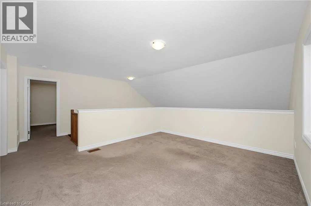 Frontier Drive and Explorer Way. Beautifully upgraded 3-bedroom, 3-bath Windermere bungalow-loft offering bright open-concept living with 10' ceilings, engineered hardwood flooring, and quality finishes throughout. The upgraded kitchen features soft-close cabinetry, stylish tile finishes, and stainless-steel appliances including a gas stove, opening to a sun-filled great room with walkout to the fully fenced backyard. The main floor includes a primary bedroom with private 4-piece ensuite, a second bedroom, and an upgraded 3-piece bath, along with central vacuum, plywood subfloors on the main and second levels (upgraded from OSB), and direct garage access with electric opener and two remotes. The loft level adds a spacious third bedroom, an additional full bath, and an open lounge ideal for guests, teens, or extended family, with an oak-stained staircase continuing down to the basement and finishing at a tiled foyer. The unfinished lower level offers excellent storage and future potential with rough-ins for a second washer and dryer connection and laundry tub. Outdoor features include a fully fenced yard with wood swing structure, double-wide driveway, and double-car garage. Ideally located close to parks, schools, shopping, Hwy 406, the QEW, Brock University, and Niagara wine country. (id:27476)
