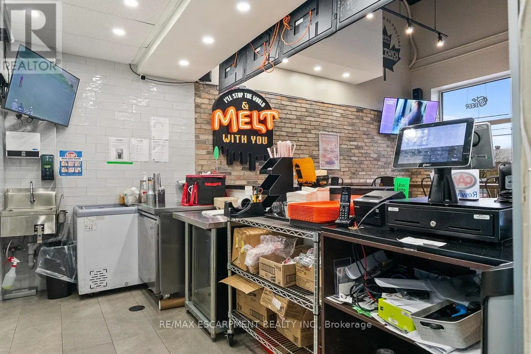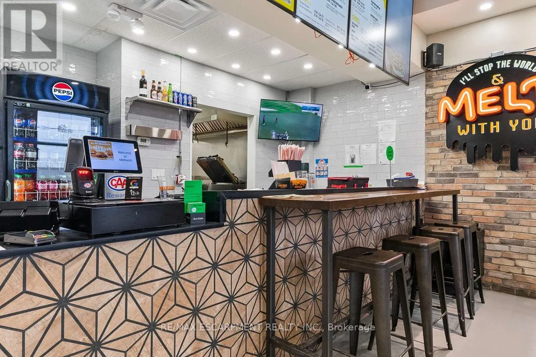 Cross Streets: From Hwy 8, exit Pine St S and head North on Pine St S. ** Directions: Hwy 58 to Pine St S exit. Head North on Pine Street. Excellent opportunity to acquire a brand-new Meltwich Food Co. franchise located in Thorold. It's a well-established and rapidly growing franchise brand across Canada and the U.S., known for its popular, on-trend menu featuring sandwiches, burgers, and comfort food favourites. This is a newly built location. The seller is relocating to another province, creating an opportunity to acquire a turnkey franchise without the typical startup risks and delays. The business is supported by a strong franchisor offering extensive training, ongoing operational support, marketing programs, product innovation, and volume buying power. This makes it an ideal opportunity for a first-time buyer, family operator, or an entrepreneur looking to grow their business and be their own boss. Strategically located minutes from Secondary School and University. The restaurant is situated in a busy plaza with a grocery store and laundromat, serving as a regular shopping and service destination for university students and local residents. With over 50 locations across multiple cities, it offers a proven franchise model with strong brand recognition and excellent growth potential. Halal option could be a possibility. (id:27476)