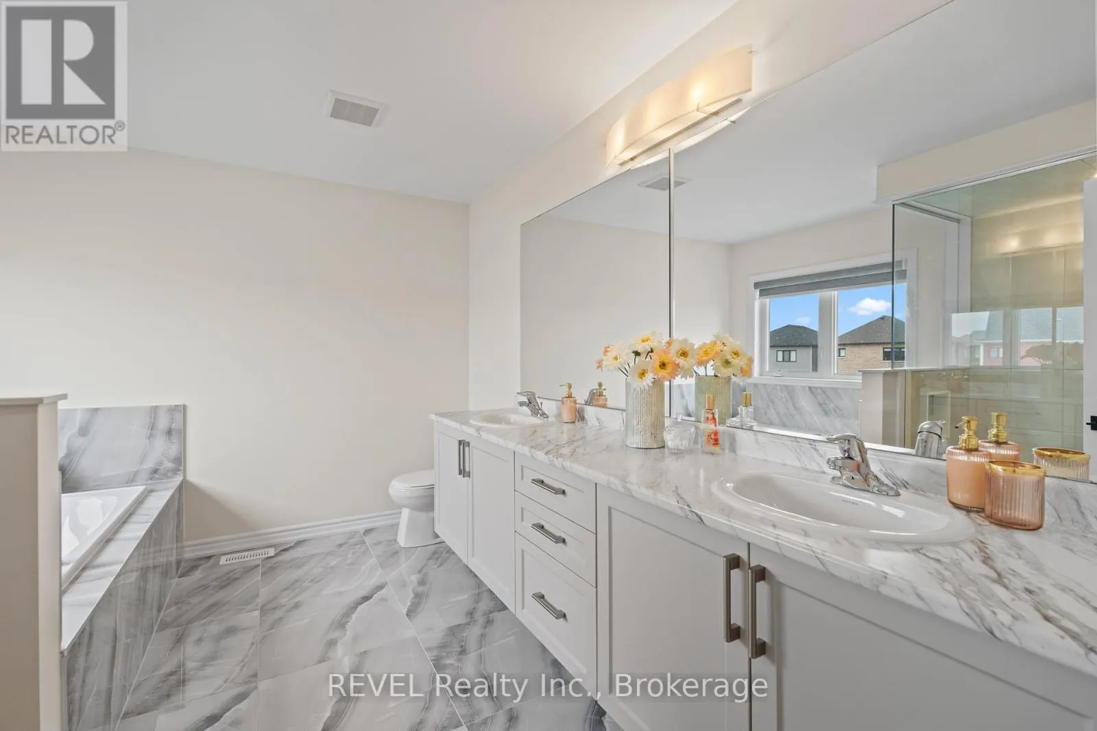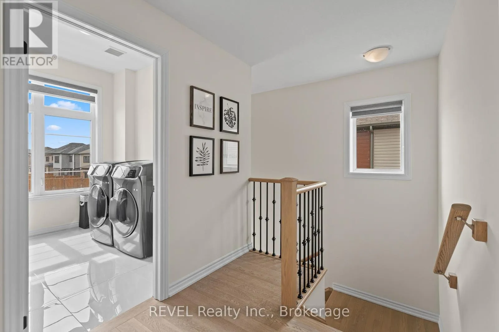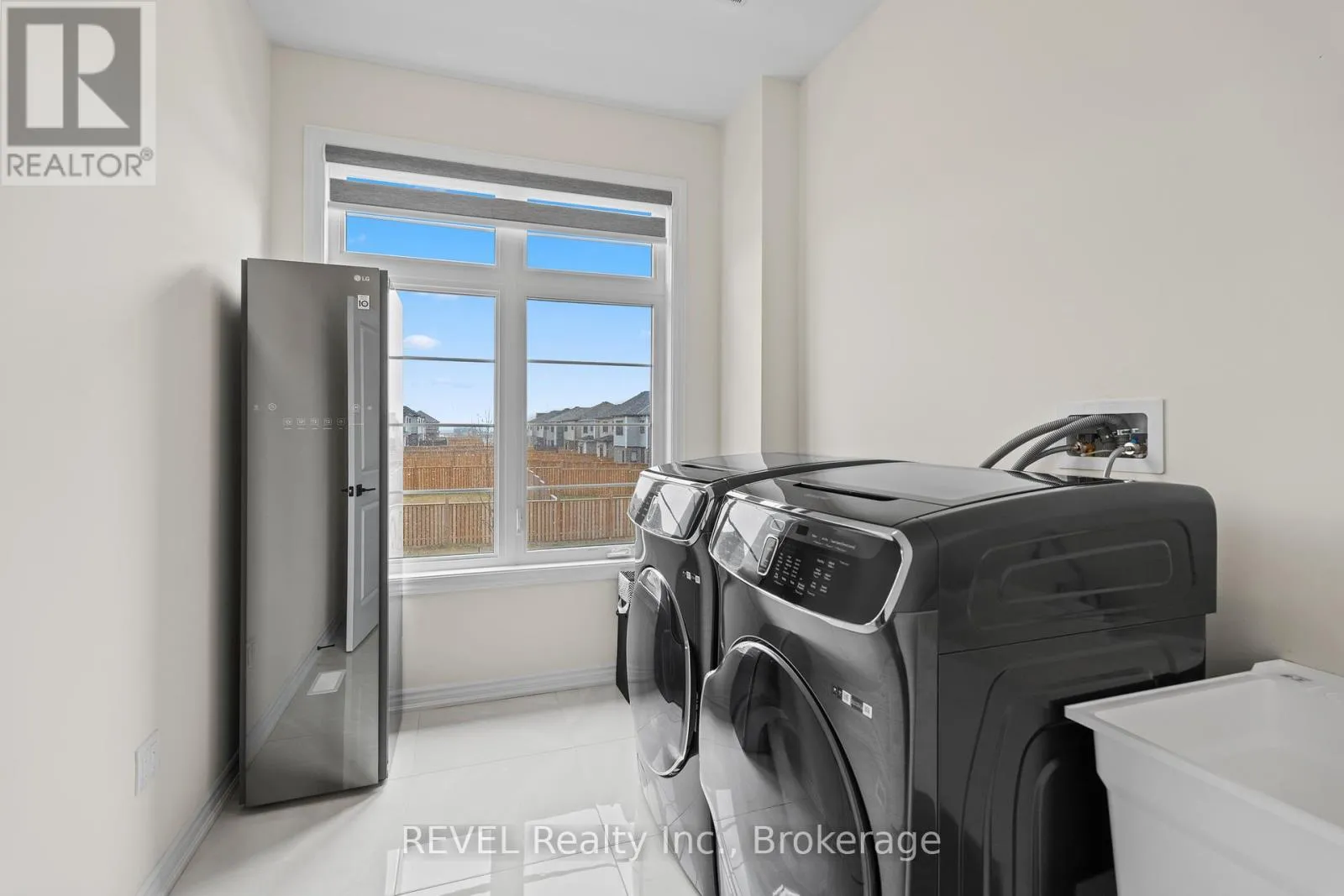 Cross Streets: Barker Pkwy. ** Directions: ON-58-Barker Pkwy-Explorer Wy. Modern Architectural Masterpiece Backing Onto Ravine Views: Perfectly positioned on a premium 50-ft ravine lot with stunning sunset views, this architecturally striking two-story home offers an exceptional blend of modern design, privacy, and elevated living. A bold exterior sets the tone, while inside, carefully selected finishes create a refined yet functional space. Double entry doors open to a bright main level with 9-ft ceilings, solid 8-ft interior doors, and oversized 24x24 porcelain tile. Engineered hardwood flows through the dining and living areas, highlighted by a sleek gas fireplace and expansive windows overlooking the ravine. Triple French doors lead to a spacious deck with gas BBQ hookup-ideal for entertaining or relaxing outdoors. The chef-inspired kitchen is a true statement, featuring custom cabinetry, soft-close drawers, glass accents, and elegant gold hardware, paired with premium built-in Dacor appliances including a 30-inch column fridge, 24-inch freezer, glass cooktop, and combination wall oven/microwave. Upstairs, an oak staircase with wrought-iron detailing leads to generous bedrooms. The primary suite offers a spa-like ensuite with double vanities, a freestanding soaker tub, and a frameless glass shower. Secondary bedrooms share a stylish Jack & Jill bathroom with floating vanities. The walkout basement provides excellent flexibility with oversized windows, triple French doors, laundry hookup, rough-in bath, and separate side entrance-ideal for an in-law suite, home office, or future income potential. Notable upgrades include Nest thermostat, motorized blinds, upgraded lighting, central vacuum, humidifier, air conditioning, mudroom with garage access, walk-in pantry, garage door opener, and EV charger rough-in. A sophisticated home designed for those who expect more. (id:27476)