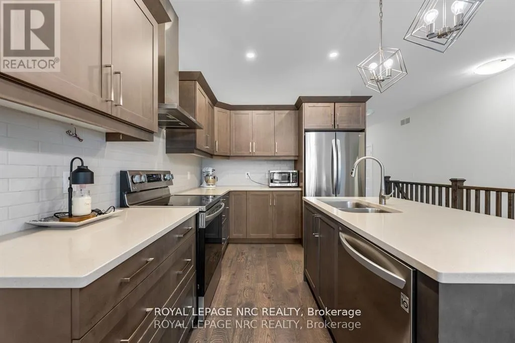 Cross Streets: McFarland/ Singer / Campbell. ** Directions: Eastman Gateway to McFarland to Singer to Campbell. The freehold bungalow townhouse you have been waiting for has arrived! Built by the incredible team at Rinaldi Homes, this 2 bedroom townhouse certainly stands out from the crowd. From the moment you arrive you will be impressed by the gorgeous long interlocking stone driveway. Inside the home you will find gleaming engineered hardwood flooring in all main living areas, 9' ceilings on the main floor, gorgeous lighting fixtures and perfectly placed pot lighting, 2 large bedrooms (primary bedroom complete with walk-in closet & 4 piece ensuite), another 4 piece bathroom, a main floor laundry room, a stunning chef's kitchen with quartz counters and stainless steel appliances. Enjoy great conversation and a bbq on the home's spacious covered deck that overlooks the beautifully landscaped backyard. The partially finished basement offers a massive rec room with an electric fireplace, another spacious walk-in closet, and a huge storage room that could easily be finished into more living space (also has a 3 piece rough-in). Easy access to highway 406, shopping, restaurants and so much more. Don't delay! Join the Merritt Meadows community today! (id:27476)