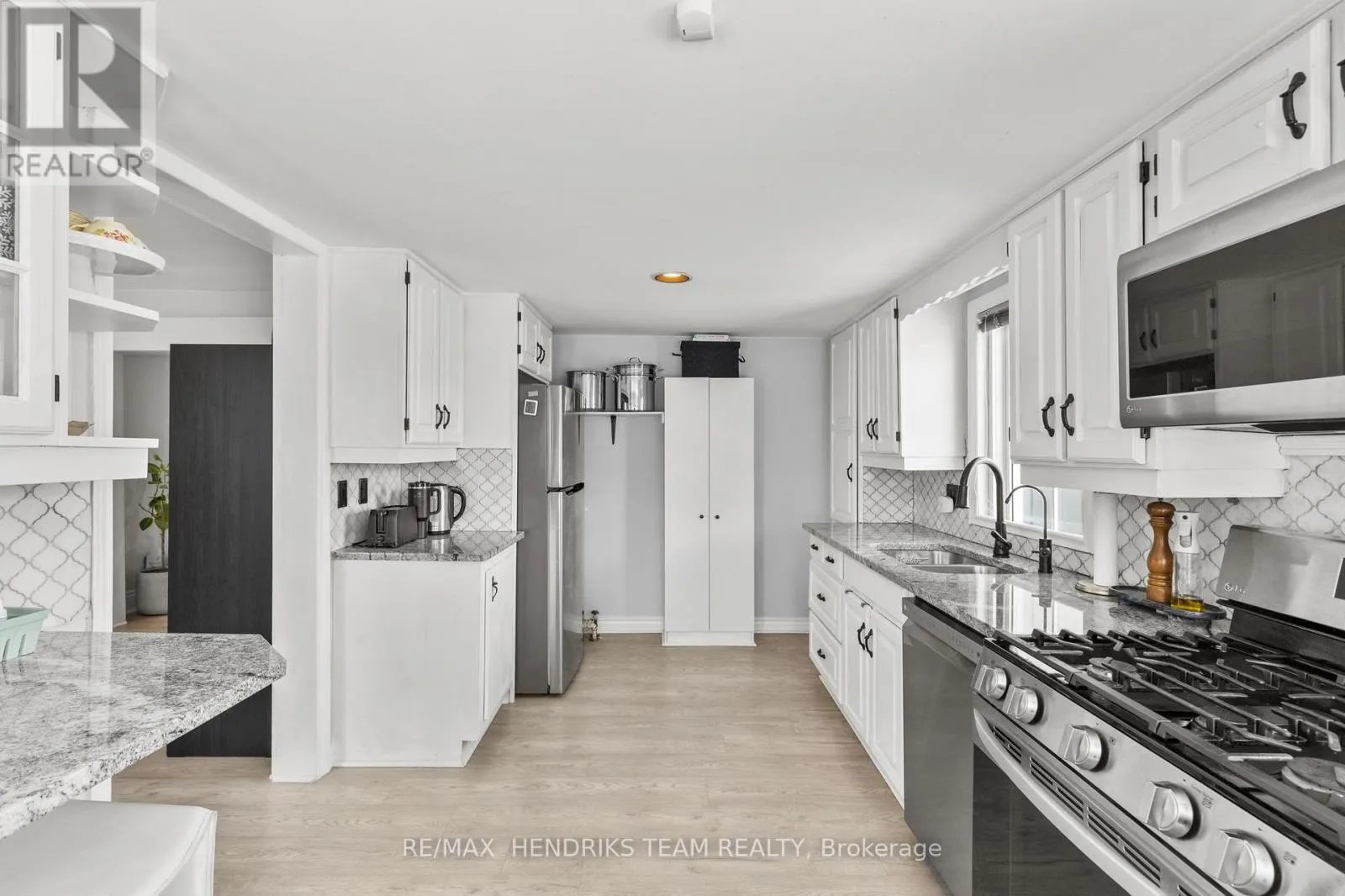 Cross Streets: St Davids Rd W & Pine St N. ** Directions: Pine St N to Water St to West St N. Welcome to 60 West Street North! Located on a quiet street in the desirable Thorold Downtown neighbourhood, this sun-filled, fully detached 5 bedroom, 2.5-bathroom home offers approximately 1,681Sqft of thoughtfully designed living space and sits on an expansive 66' x 100' lot that perfectly balances interior comfort with outdoor enjoyment. The property features parking for up to six vehicles, additional boat or RV parking, and a detached double-car garage with a dedicated workshop. Over $200,000 has been invested in extensive interior and exterior renovations, including all-new flooring (with original hardwood preserved underneath), widened interior archways that create a seamless open-concept flow, and a new powder room on the main floor. The modern kitchen is equipped with stainless steel appliances, granite countertops, and a breakfast bar, with a convenient walk-out to the backyard, while new window blinds have been installed throughout the home. The primary bedroom, ideally located on the main floor, offers a fully renovated, oversized ensuite and walk-in closet, while the second level features three additional bedrooms, all with large closets, and a 4-piece bathroom. The maintenance-free backyard has been extensively upgraded with concrete finishes and privacy shades, making it ideal for outdoor entertaining. Recent updates include a roof (2019), three heat pumps (2022), and a water softener (2020). This property delivers outstanding convenience and connectivity while retaining the charm and character of a mature community, located just 5 minutes from the Pen Center, St. Charles Catholic Elementary, Westmount Public, Thorold Secondary Schools, Catholic & Christian Churches, and Highway 406, 10 minutes to hiking trails, 15 minutes to Seaway Mall (Welland), and approximately 15-25 minutes to downtown St. Catharines or Niagara Falls-a beautiful home that is truly a must-see. (id:27476)