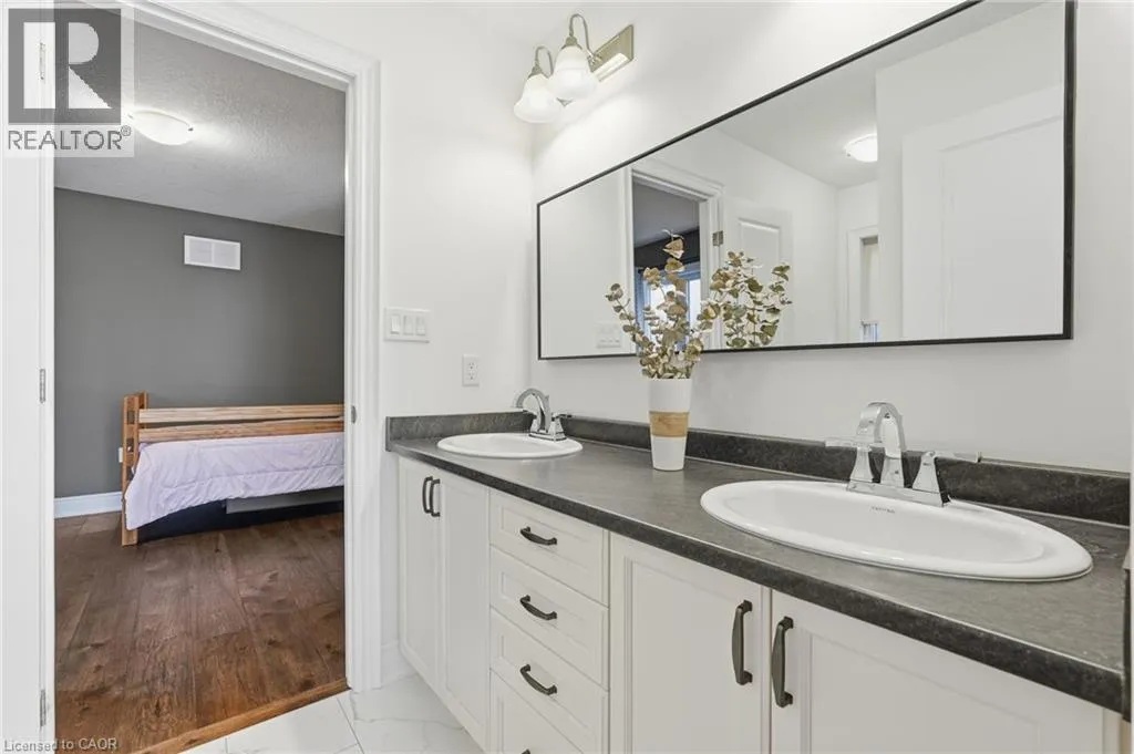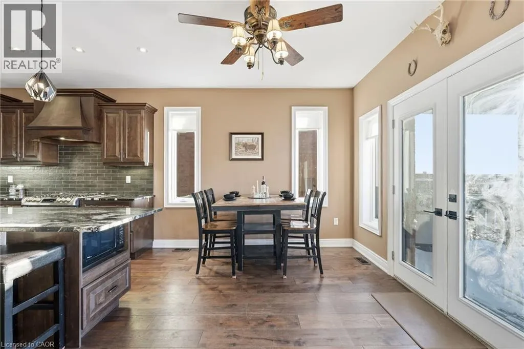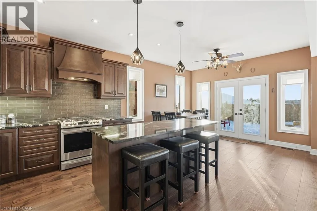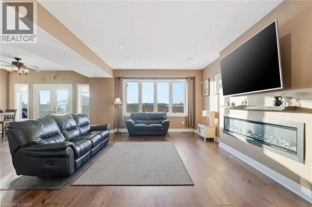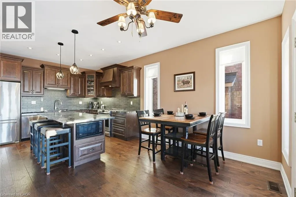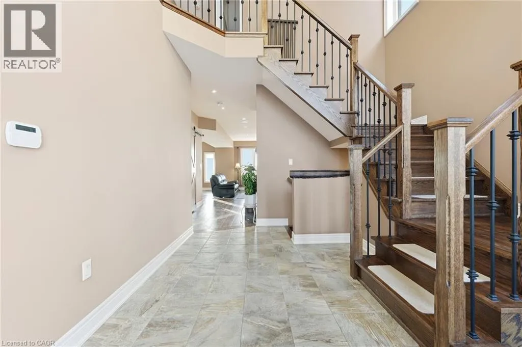 Uppers Lane and Homestead Way Welcome to 83 Homestead Way a refined, custom-built residence where luxury meets warmth in the heart of Thorold's Rolling Meadows. This exceptional 4-bedroom, 2.5-bath home offers approx. 2400 sq ft of thoughtfully designed living space, perfect for families seeking both elegance and comfort. Step into the grand front foyer with soaring ceilings and a bright, open-concept main level finished with premium flooring and designer touches throughout. The great room is anchored by a sleek electric fireplace and a show-stopping glass-enclosed wine room a rare feature that adds instant style and sophistication. The chef's kitchen impresses with granite countertops, custom cabinetry, gas range, statement hood fan, and a large centre island that naturally brings everyone together. Upstairs, you'll find four generous bedrooms including a serene primary retreat with a spa-like ensuite. The separate-entry basement is framed and roughed-in for a future bathroom ideal for an in-law suite, home gym or media space. Situated on a fully fenced lot in a vibrant, family-friendly community with new schools and parks nearby, this home offers elevated living with lasting appeal. (id:27476)