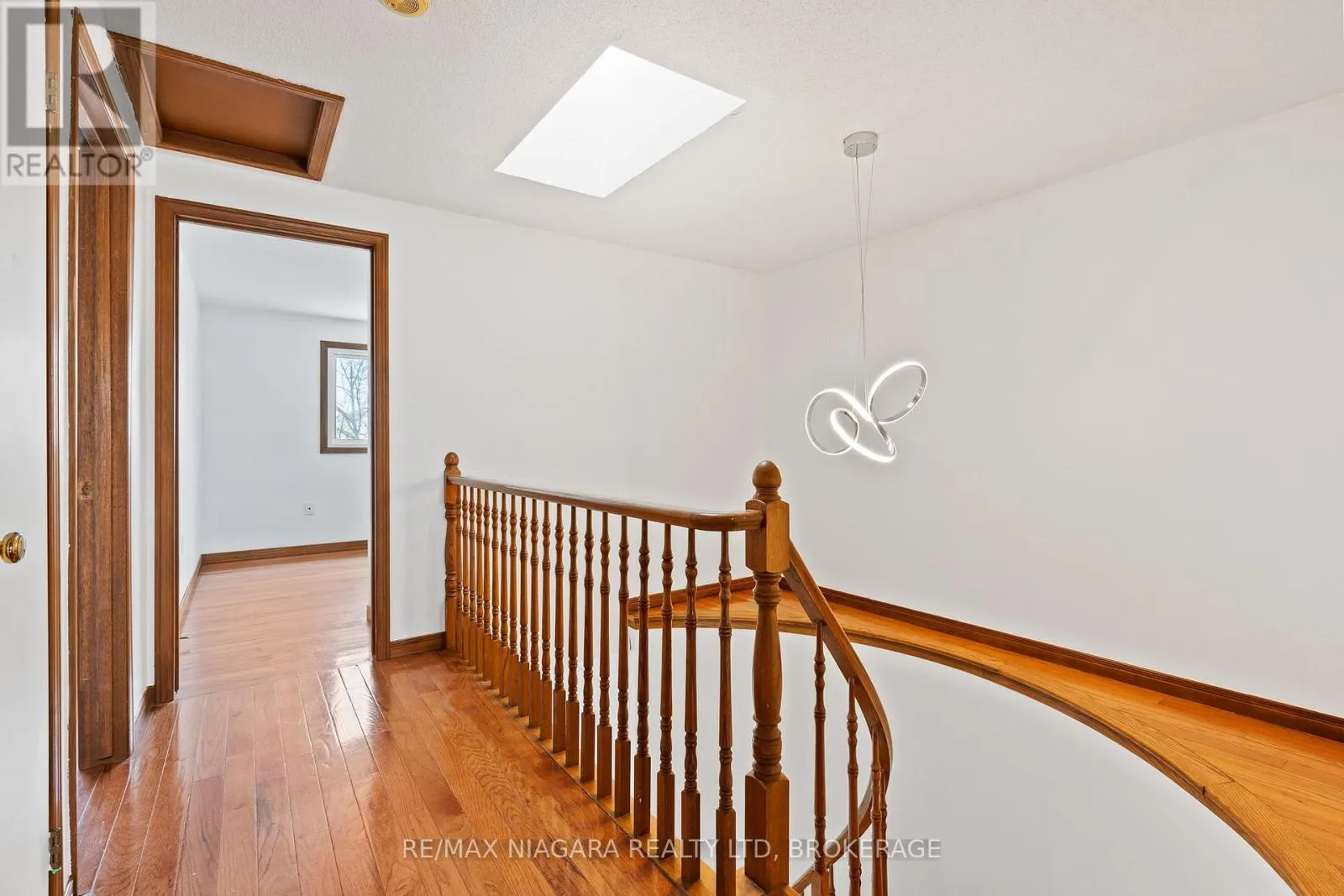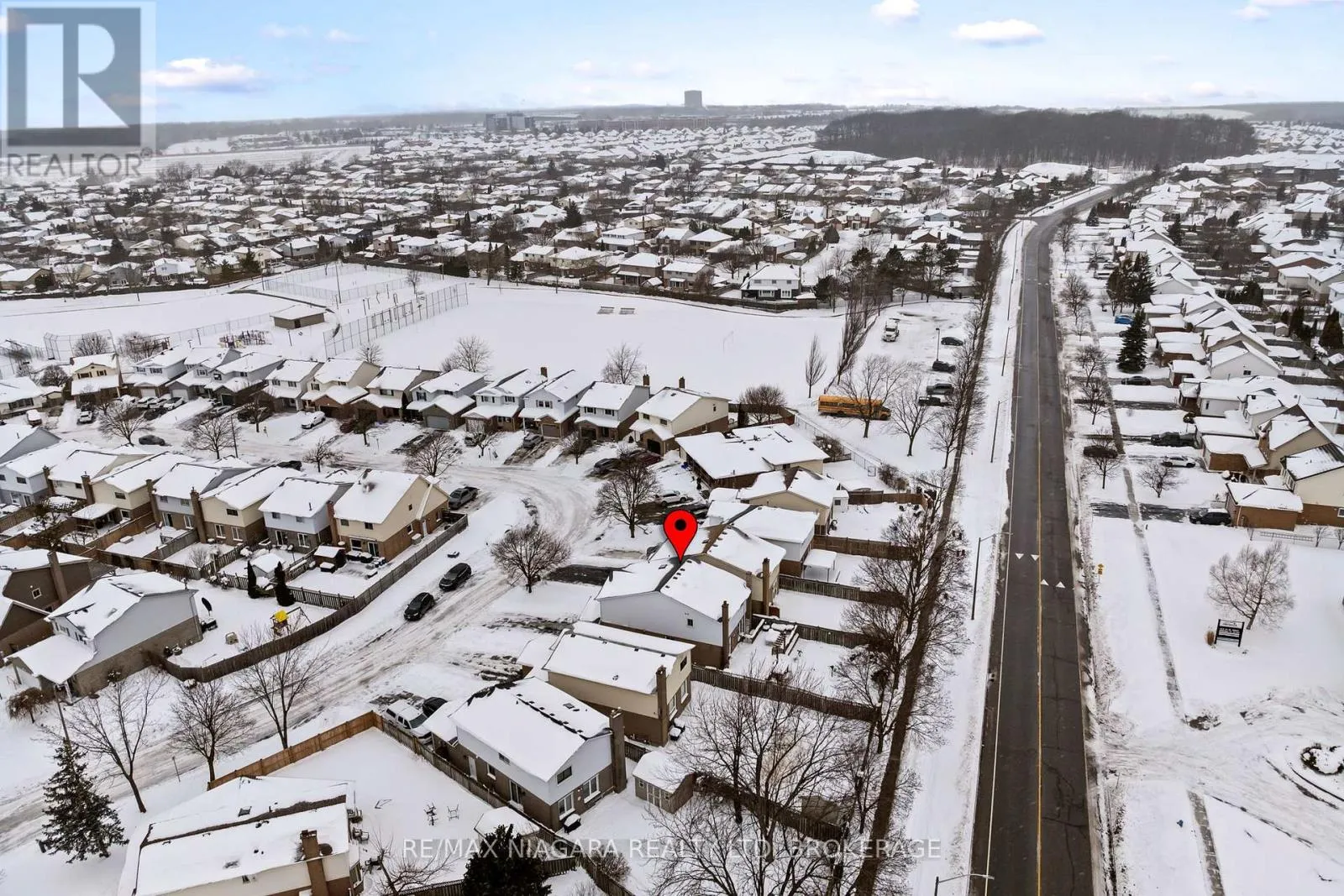Commerford and Keefe KEEFER TO COMMERFORD TO CULLIGAN Welcome to this well-maintained two-storey 3-bedroom, 3.5-bath home located in a quiet, family-friendly neighbourhood in Thorold. The inviting exterior offers attractive curb appeal with a brick and siding façade, covered front entry, private driveway, and an attached single-car garage. Inside, the bright and spacious main living area features polished tile flooring and a modern accent media wall with decorative wood paneling and contemporary wall sconces, creating a stylish focal point. The open-concept layout provides excellent flow and flexibility for both everyday living and entertaining. Large rear windows fill the space with natural light, while built-in shelving adds both function and visual interest. The neutral finishes throughout offer a clean, move-in-ready canvas, allowing buyers to easily personalize the space. The thoughtfully designed layout maximizes natural light and usability, making the home feel open and welcoming. The kitchen offers wood cabinetry with ample storage and stainless steel appliances. A circular staircase leads to the second level, which includes three spacious bedrooms with hardwood flooring and wood door frames throughout. The hiuge15 ft by 18 ft primary bedroom includes a 3-piece en-suite and a large walk-in closet. The finished basement offers a spacious recreation room with built-in cabinetry, a wood-burning fireplace, and a cold cellar providing additional storage. Spacious fenced-in backyard has no rear neighbours for increased privacy. Conveniently located close to the park, busing and schools, this ideally located home is vacant and ready for your personal touch. **Home is vacant, some images shown are virtually staged** (id:27476)