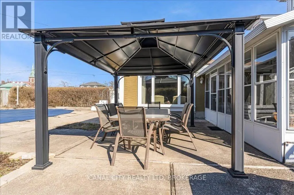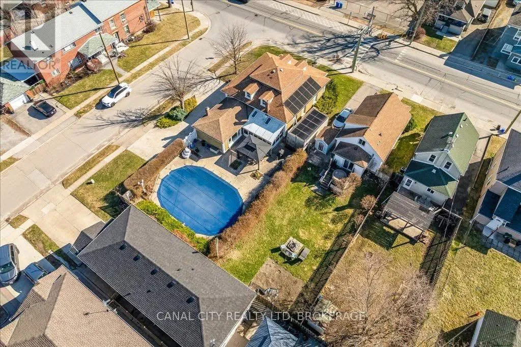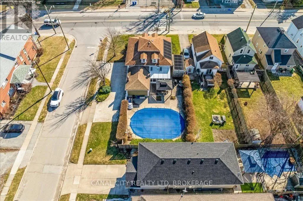Cross Streets: Corner of Metcalfe St. and Pine St. S. ** Directions: Sullivan Ave/Richmond St. to Pine St. S. Charming 4 bedroom home in the heart of Thorold! This spacious 2547 sq/ft, 1.5 storey home offers the perfect blend of history, character, comfort and modern conveniences. Step inside to find a cozy living room with an electric fireplace (with the original wood fireplace still intact), a main floor bedroom and laundry room as well as a 4 piece bath. The separate dining room and family room provide plenty of space for entertaining, while the 3 season sunroom and enclosed front porch are perfect for relaxing year-round. On the second level you will find 3 additional generously sized bedrooms with ample storage as well as an another 4 piece bath. Step outside to your 24 by 38 foot inground pool and gazebo area, complete with solar panels for efficient heating and a new pool pump. The fully fenced backyard provides privacy and plenty of space for outdoor enjoyment. Additional features include a brand new high efficiency gas furnace, new central air unit, 200 amp service, basement workshop area, central vacuum, and plenty of storage throughout. Conveniently located close to schools, shopping and a short walk to Historic Downtown Thorold and all amenities, this home truly has it all. Don't miss out, schedule your showing today! (id:27476)