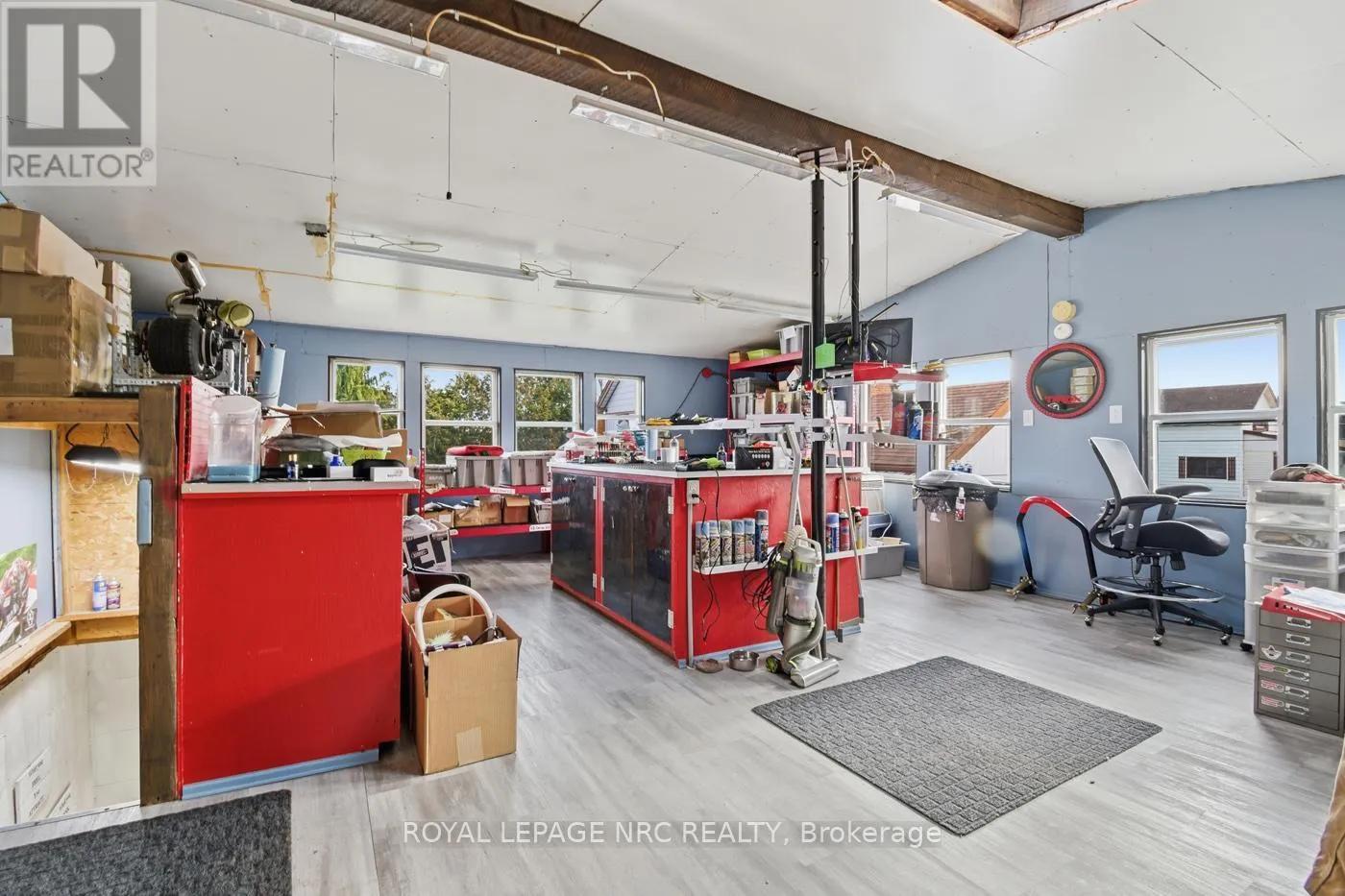 Cross Streets: Richmond St. ** Directions: From Hwy 58 take Pine St exit, go North, turn left on Rose Ave for side street driveway. Welcome to 85 Pine St S, Thorold - a unique property offering versatility and value.Key Features:Income potential with flexible living or home office spaces Large concrete driveway with ample parking + gated entry Oversized heated double garage with finished loft and 60-amp pane; ideal for workshop, gym, or office Updated interior with modern kitchen (granite), renovated bath, updated flooring & pot lights Main-floor laundry, central vacuum & reverse osmosis system Solid cedar fencing for added privacy Covered back porch and patio for outdoor living Two enclosed porches with separate exterior access add bonus flex space for a mudroom, coffee nook, or quiet retreat.Located near the Welland Canal Trail, parks, Hwy 58, and just minutes to the Pen Centre. This home blends lifestyle, function, and rare features at this price point. (id:27476)