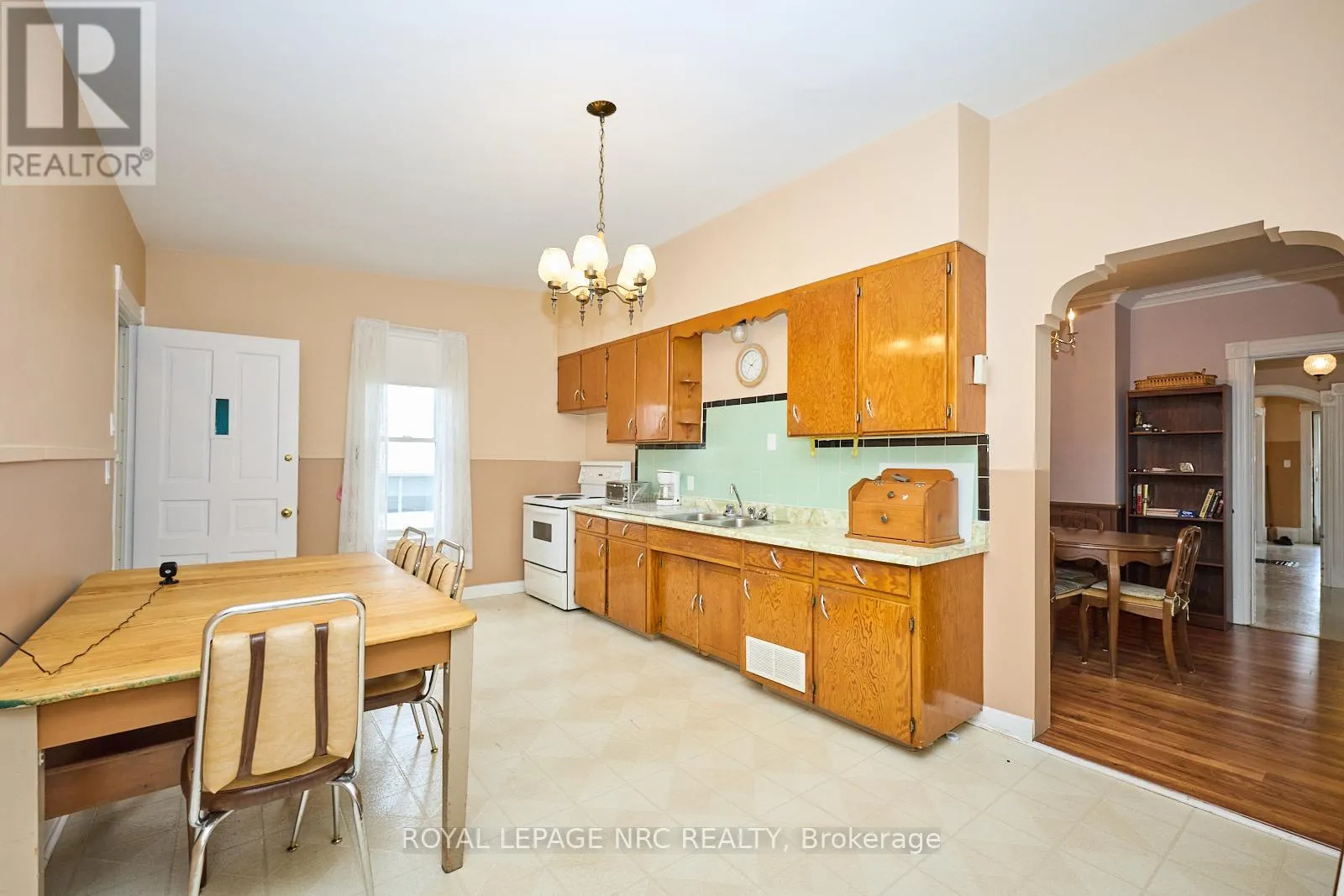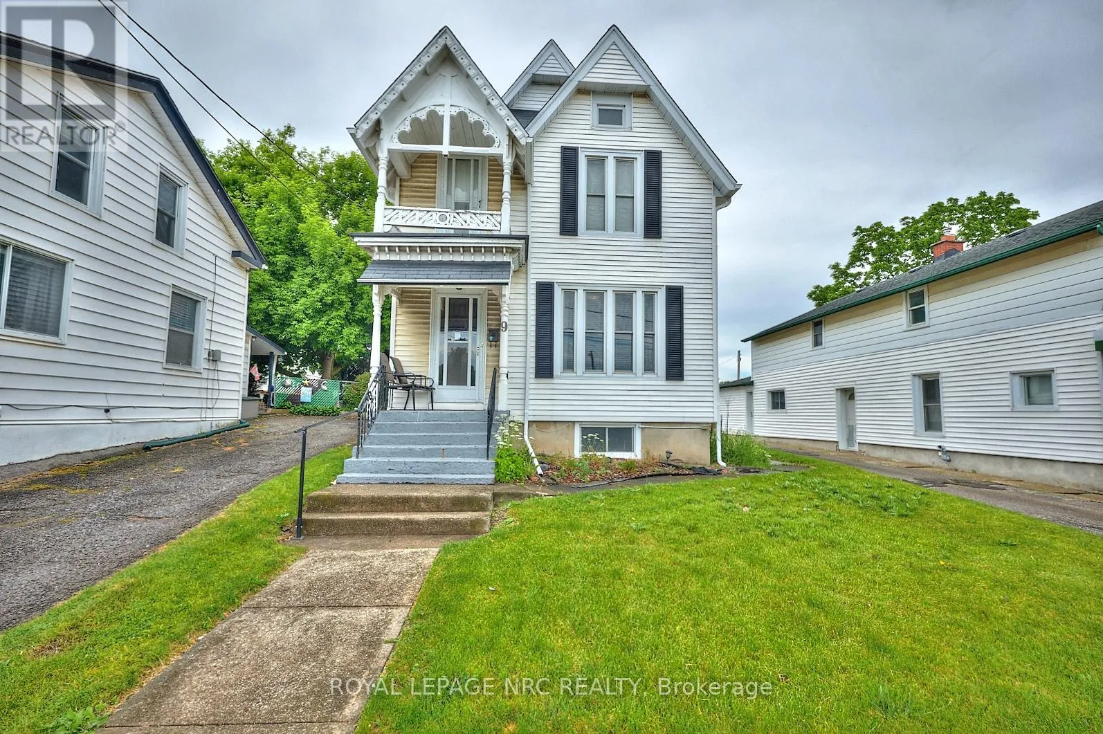 Cross Streets: Albert St and Pine St. ** Directions: Sullivan Avenue to Pine Street. This stately custom two-storey home is located on a HUGE lot in Downtown Thorold and has a Mixed-Use Zoning designation. The home boasts 3 bedrooms, 1.5 bathrooms, a large eat in kitchen, separate dining room, spacious main floor family room and a bright living room. Simply loaded with character including solid wood bannisters, entry doors, original wood pocket doors, gorgeous trim work and a Juliette balcony off the master bedroom. The exterior includes a detached 1.5 car garage, private parking and fully fenced backyard. The basement is full and partially finished basement, waterproofed in 2010, and has a newer forced air gas furnace. Book your private viewing today! (id:27476)