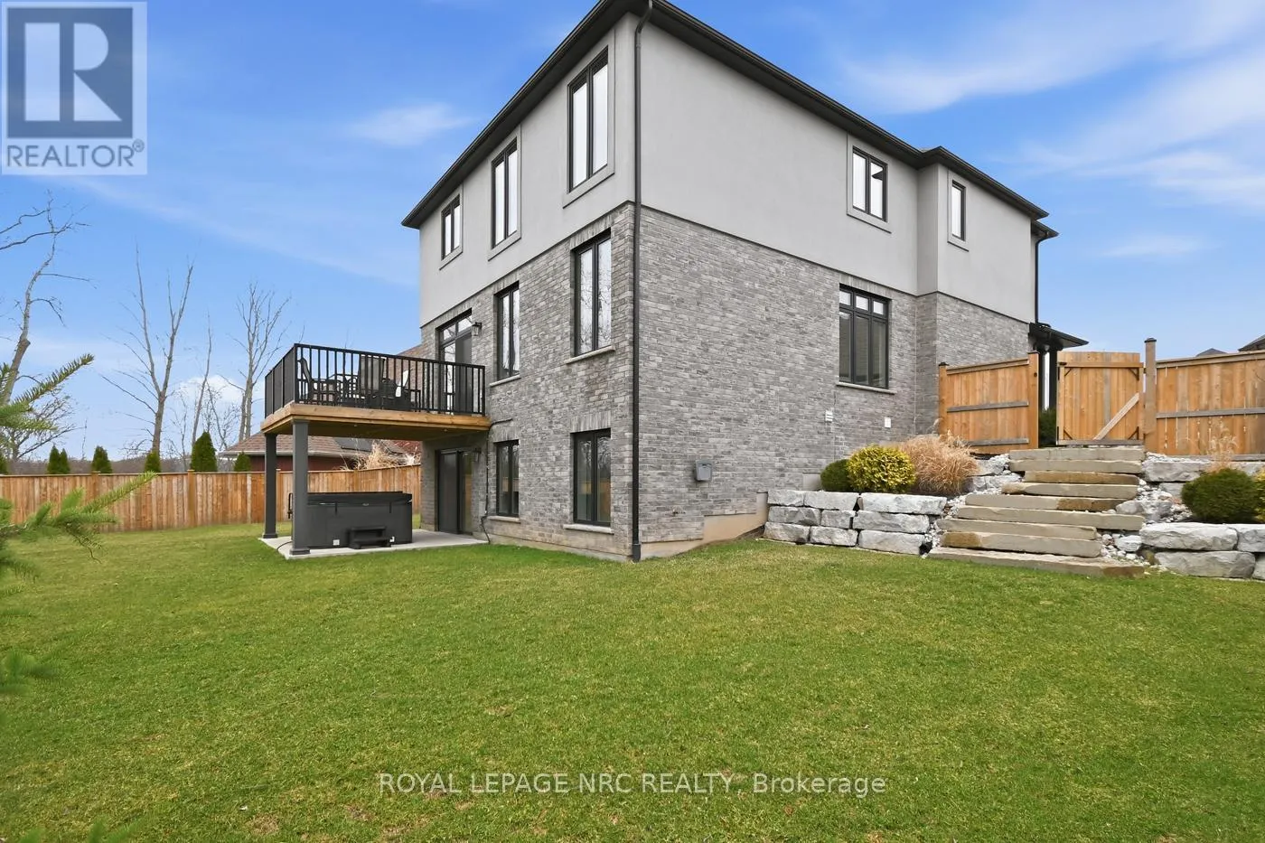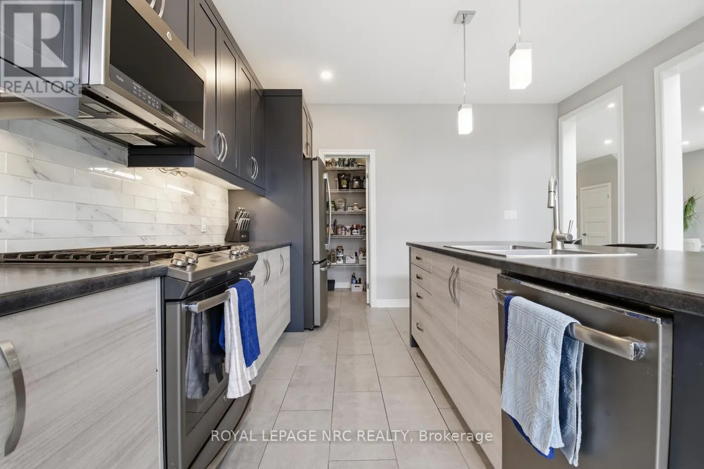 Cross Streets: DAYS AVE. ** Directions: QUAKER TO ST. LAWRENCE TO DAYS TO HOPKINS. RINALDI-BUILT... and it shows! This stunning custom home, built in 2018, is perfectly situated in sought-after southwest Thorold, right on the border of Thorold and Welland. Surrounded by quality homes in a desirable neighbourhood, you're just minutes to Seaway Mall, the new Longo's plaza on Niagara St, and have quick access to Highway 406-ideal for commuters. From the moment you arrive, the curb appeal impresses with beautiful landscaping and a welcoming exterior. Step inside to a spacious foyer with ample closet space, designed to comfortably accommodate a busy family. The open-concept main floor offers a modern, airy feel, highlighted by a breathtaking two-storey great room, while 9-foot ceilings throughout the rest of the level enhance the sense of space. Oversized windows flood the home with natural light, creating a warm and inviting atmosphere. The dining area easily accommodates large gatherings, while the chef-inspired kitchen is truly the heart of the home-featuring a massive centre island with breakfast bar seating, double sinks, built-in dishwasher, gas stove, built-in microwave, and an abundance of cabinetry and counter space. And who doesn't love a pantry! Sliding doors lead to a 14' x 12' deck overlooking a private, backyard-perfect for entertaining or relaxing. A main floor laundry room, 2-piece powder room, and direct access to the double-car garage complete this level. Upstairs, you'll find 4 generous bedrooms, 3 with walk-in closets and a 4 pc bath. The spacious primary suite offers a walk-in closet and a beautifully appointed ensuite with double sinks and double shower. The fully finished lower level extends your living space with a large rec room, additional bedroom or den, and a 3-piece bath. Thanks to oversized windows and a walk-out to a covered patio, this level feels bright and inviting-not like a basement. Set on a premium pie-shaped lot, the fully fenced backyard features side gates, a built-in firepit, and plenty of space to add a pool. (id:27476)
