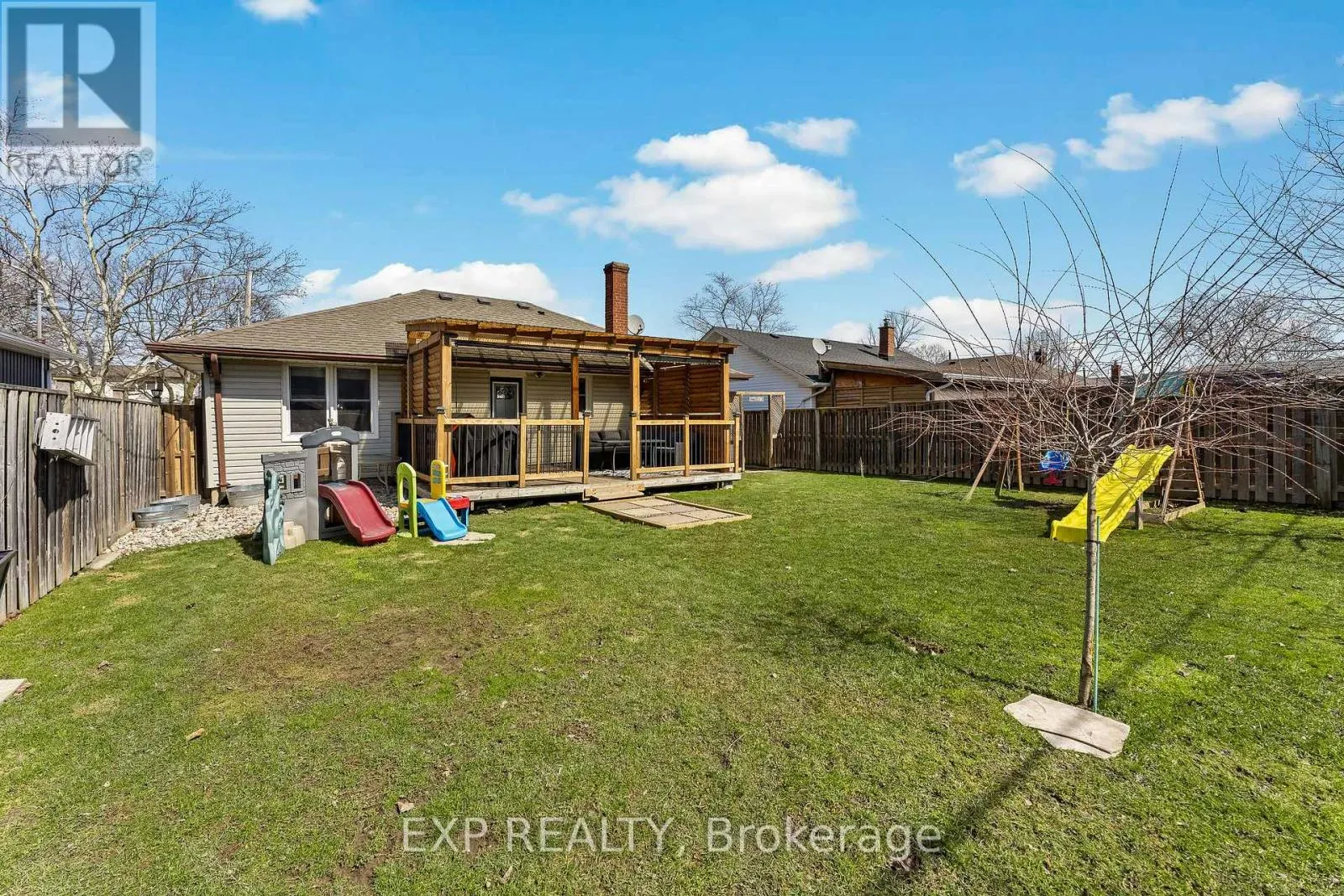 Collier Rd N - Broderick Ave - Parkdale Dr Welcome to this charming and cozy move-in ready detached bungalow nestled on a quiet, tree-lined street in a desirable Thorold neighbourhood, offering excellent curb appeal and a warm, inviting feel from the moment you arrive. This well-maintained home features 2 +1 bedrooms and 1.5 bathrooms, making it an ideal fit for first-time buyers, young families or downsizers. The bright, updated kitchen showcases white cabinetry, stainless steel appliances, and a high breakfast bar that seamlessly connects to the main living area, perfect for both everyday comfort and entertaining. The main floor offers a functional layout with a spacious primary bedroom featuring double closets, while the finished basement expands your living space with a rec room, additional bedroom or office, and a convenient 2-piece bathroom, ideal for guests, remote work, or growing families. A separate side entrance provides added versatility and potential for in-law or future secondary suite use. Step outside to enjoy a beautifully maintained, fully fenced yard complete with a private deck, pergola, and great storage, creating the perfect outdoor retreat for relaxing or entertaining. Located close to Brock University, parks, schools, and key Niagara amenities, this home delivers the perfect blend of comfort, practicality, and lifestyle in one of Thorold's most established communities. (id:27476)
