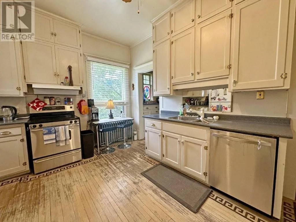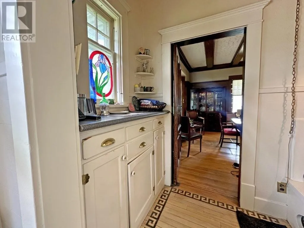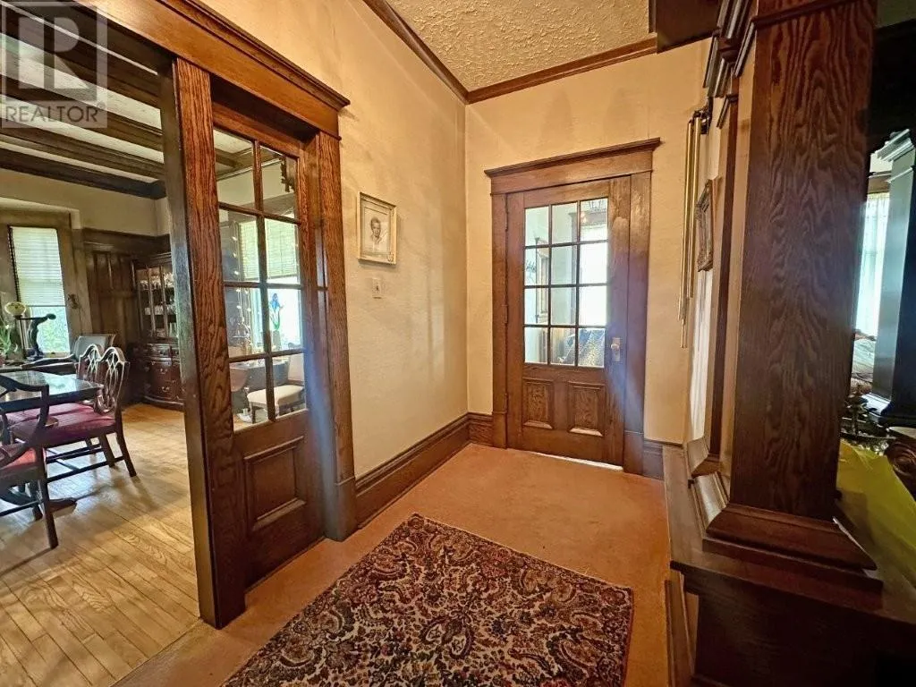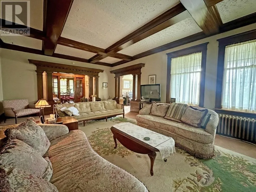 Corner of Summit and Beresford Step into timeless elegance with this stately Craftsman-style 1.5-storey, 5-bedroom, 3-bathroom family home located in the heart of Mariday Parkâone of Thunder Bayâs most cherished and picturesque neighborhoods known for its tree-lined streets, character homes, great schools and access to parks. Showcasing soaring beamed ceilings and rich original woodwork throughout, this iconic residence blends architectural charm with family functionality. The beautifully appointed kitchen features ample cabinetry, a cozy breakfast nook, and a butlerâs pantry, while the formal dining room is a showstopper with classic wainscoting, hardwood floors, and large windows. French doors open into an expansive living room with a wood-burning fireplace, plus a separate den perfect for reading or relaxing. Two main floor bedrooms are conveniently located near a charming 3-piece bath with a clawfoot tub, while the upper level offers three more spacious bedrooms and a 3-piece bath. The finished lower level includes a rec/games room with a gas fireplace, 2-piece bath, and even a unique walk-in safe. A covered breezeway leads to a double-length garage, and recent updates include brand-new shingles (Nov 2024). With its grand curb appeal, unique character, and unbeatable location near schools and parks, this is truly a once-in-a-generation family home. Visit www.century21superior.com for more info & pics. (id:27476)