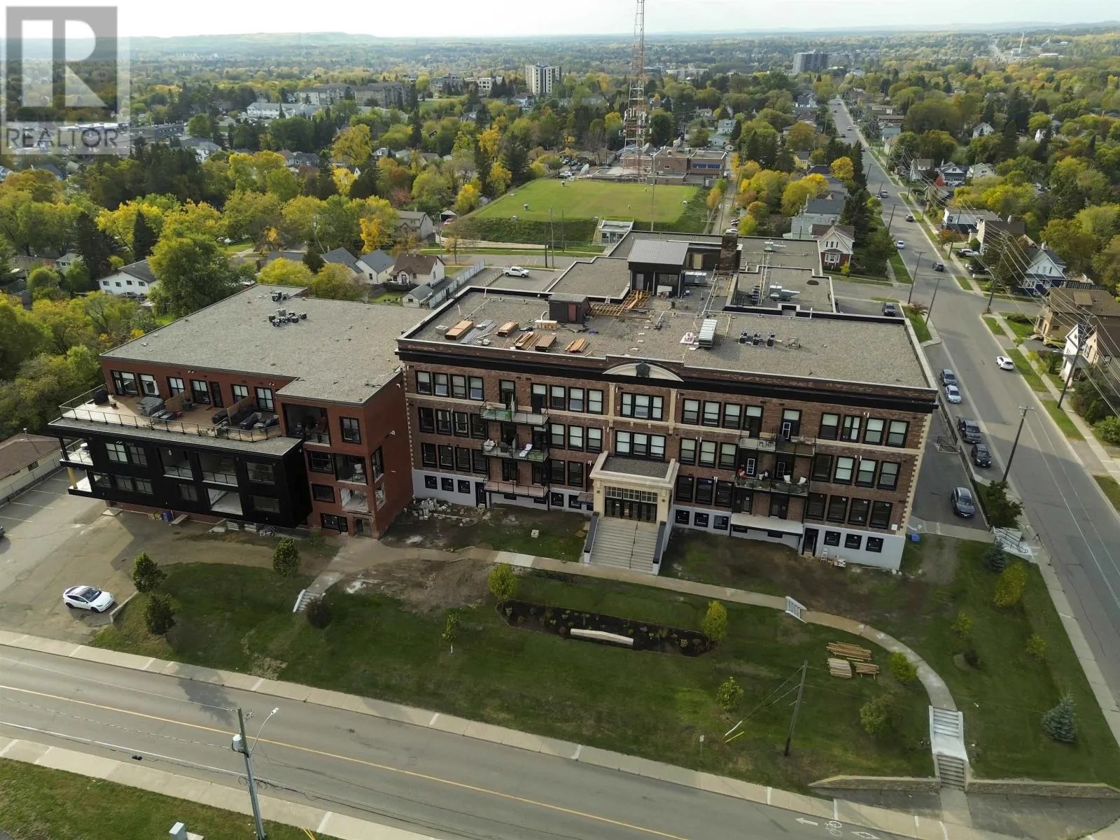 Hillcrest Neighbour Village Condos (old Hillcrest HighSchool) - Park to the left of Building from front view on High St Suite 3210 offers a spacious 1-bedroom plus den, 2-bath layout with 1,500 sq. ft. of refined living and beautiful Lake Superior views. Enjoy an open-concept design, a cozy fireplace, and a large 165 sq. ft. balcony. Residents have access to first-class amenities including a rooftop terrace with 360° views, fitness centre, theatre/auditorium with kitchen and pool table, and an indoor basketball/pickleball court. Pets are welcome, and every suite is one-of-a-kind. Elegant, bright, and perfectly positioned. Suite 3210 defines luxury lakeview living in Thunder Bay. (id:27476)
