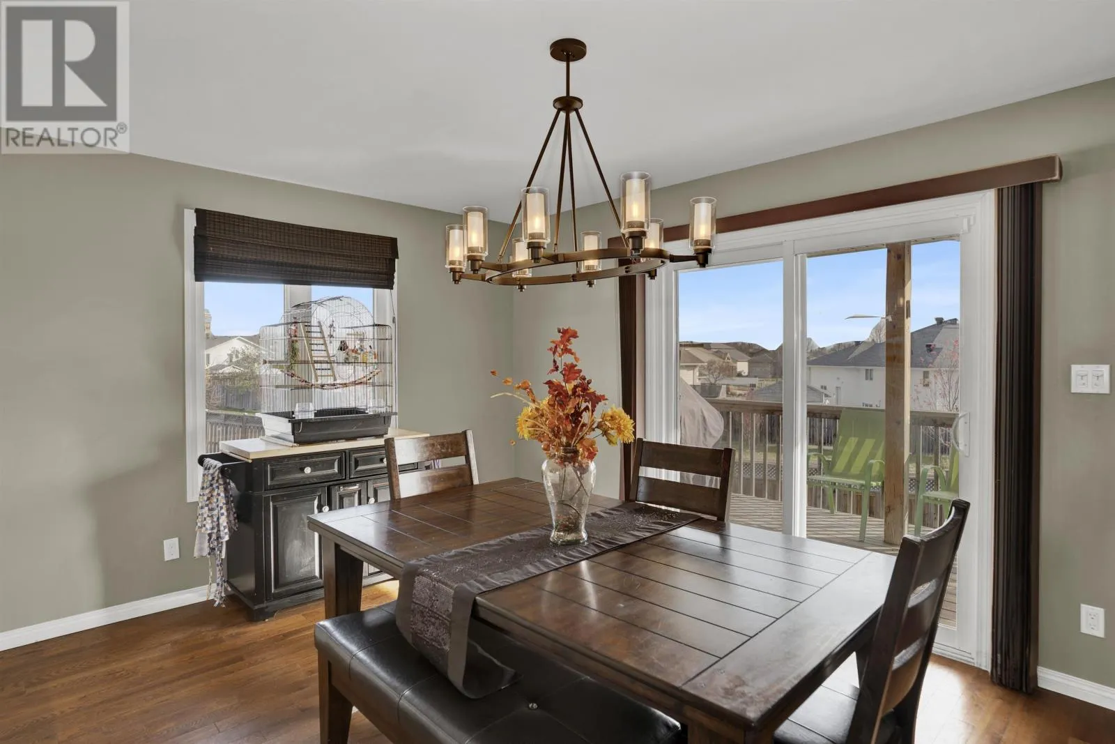 OFF OF SUNFLOWER DRIVE AND/OR LONGBOW DRIVE Welcome to 524 Fireweed Bay, a beautiful bi-level home built in 2012 and located in the family-friendly and prestigious Woodcrest area. Perfectly situated on a spacious pie-shaped lot, this property not only offers an attached garage but also provides ample room to build the dream garage you have always envisioned. Step inside to discover an inviting and thoughtfully designed layout that blends comfort with modern functionality. The spacious kitchen is a true highlight, featuring a convenient pantry, a built-in workstation, a powered breakfast bar, and stainless steel appliances including a gas stove and dishwasher. The adjoining eating area opens to a covered deck, creating the perfect space for outdoor dining and year-round enjoyment. The large primary bedroom offers a walk-in closet, a luxurious soaker tub, and a custom tile shower, providing a relaxing private retreat at the end of the day. With three plus one bedrooms and three full bathrooms, there is plenty of space for family and guests alike. The lower level showcases a beautifully renovated bathroom complete with dual sinks, illuminated mirrors, and a steam shower, as well as an additional four-piece bathroom for added convenience. The spacious recreation room is ready for your finishing touches, offering endless possibilities for customization. A concrete driveway adds both durability and curb appeal to this well-maintained property. 524 Fireweed Bay is a perfect blend of quality, comfort, and practicality, offering the opportunity to enjoy modern living in one of Woodcrestâs most desirable neighbourhoods. (id:27476)