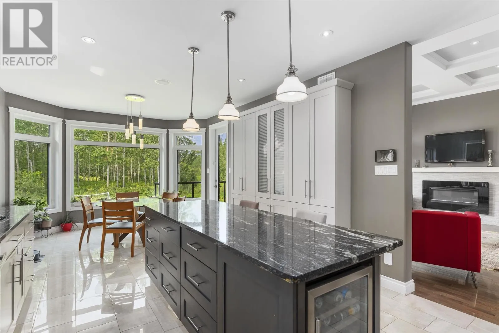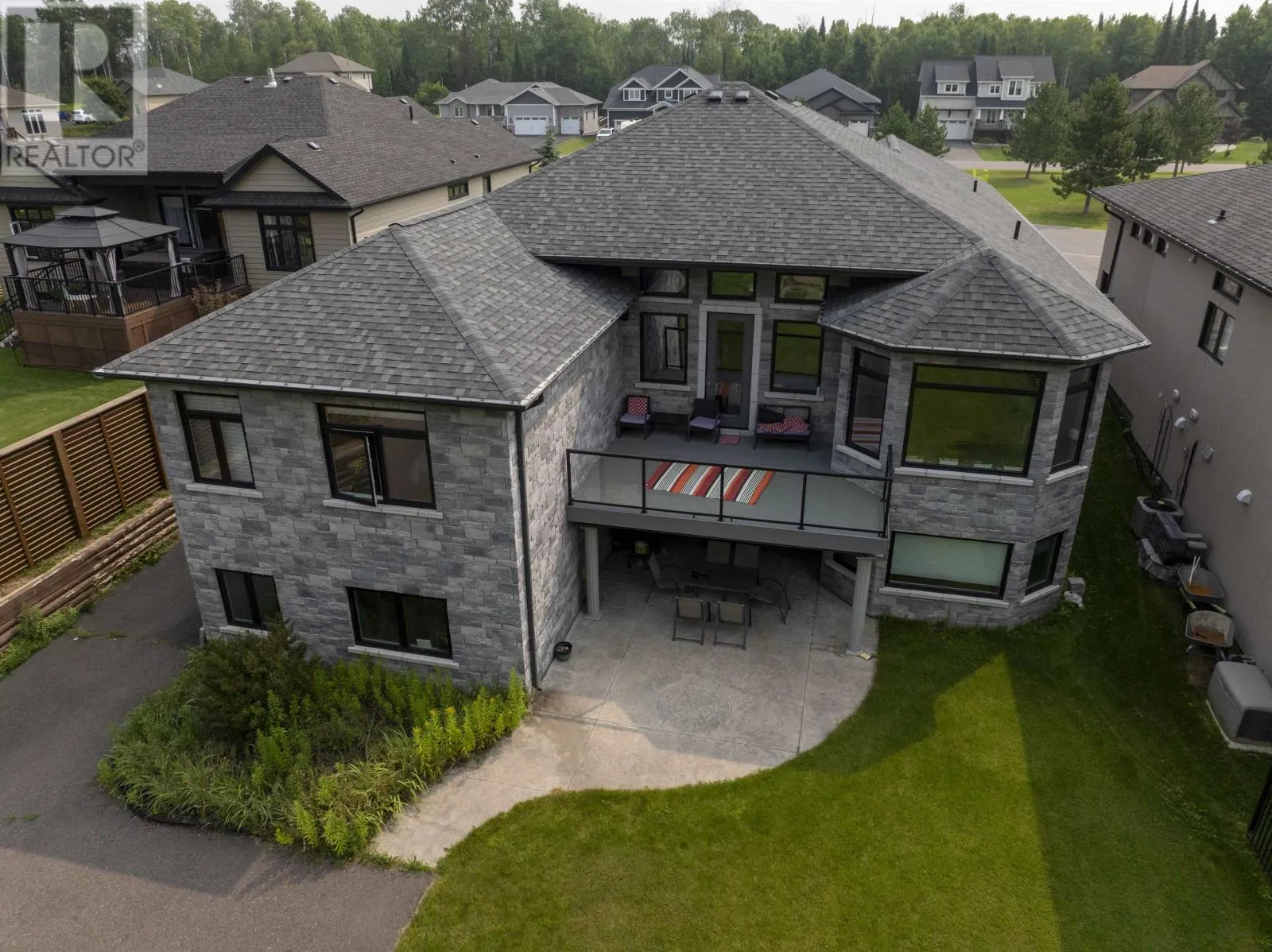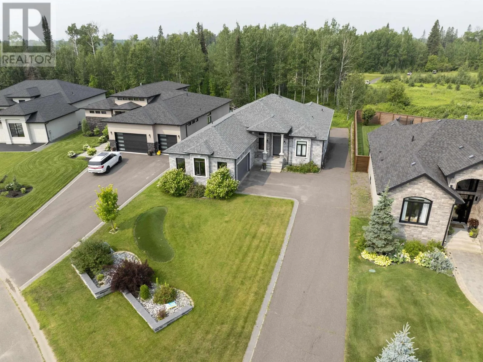AT THE END OF KING GEORGE'S PARK DRIVE BACKING ONTO WHITEWATER GOLF CLUB NEW LISTING! BACKING ONTO WHITEWATER GOLF CLUB! You couldnât build this luxury home for the asking price! Located on a prestigious cul-de-sac in sought-after King Georgeâs Park, this fully finished executive home backs directly onto Whitewater Golf Club with panoramic views of the NorâWester Mountains. Set on an oversized 79Ã215 ft lot, the home and property feature a full-brick exterior, a double attached garage, and an extended paved driveway as just the starters of the extensive list of features this luxury home has to offer. Inside, enjoy 2,540 sq. ft. on the main floor with soaring 12 ft coffered ceilings, a wall of windows, and an open-concept layout perfect for entertaining. The gourmet kitchen features granite countertops, a large island with built-in wine fridge, gas stove, and top-end appliances. Host guests in the elegant dining area or step out onto the upper composite deck overlooking your pretty private backyard. The main level offers 4 spacious bedrooms and 3 luxurious bathrooms, including a hotel-inspired primary suite with a spa-like ensuite and large walk-in closet. A generous mudroom and laundry area add convenience. The fully finished walk-out basement offers another 2,400 sq. ft. of living space with in-floor heat, a massive family/rec room with patio access, a soundproofed media room, a large bedroom with full granite ensuite, plus rough-ins for a future kitchenâideal for an in-law suite. Additional storage rooms and cold storage complete the space. An exceptional opportunity to own a move-in-ready home in one of Thunder Bayâs most desirable locations. (id:27476)