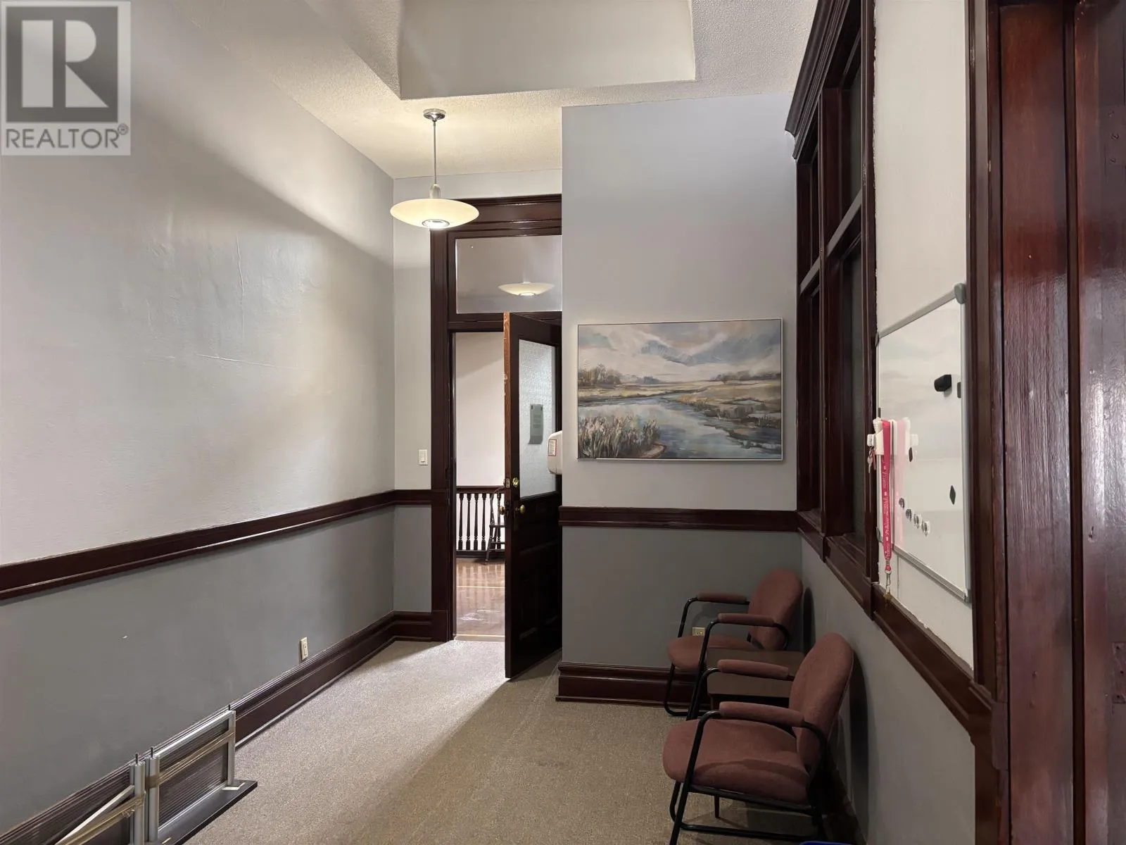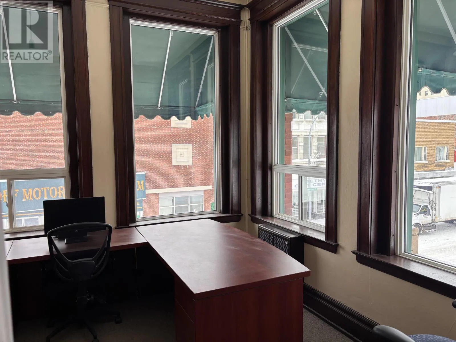 On the corner of Victoria Ave. E. and North St. Bright second-floor professional office offering approx. 690 sq. ft. with two private offices, boardroom and reception area. 11 ft ceilings and excellent south and west facing natural light. Updated lighting, shared amenities (bathrooms, lunch room, waiting area), heating included, and 24-hour secure access. Ideal for professional or consulting users seeking a downtown office with character. (id:27476)