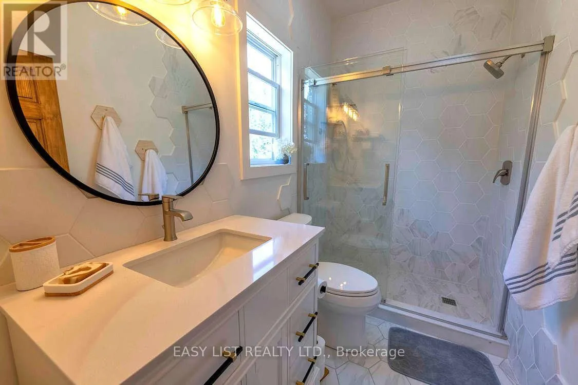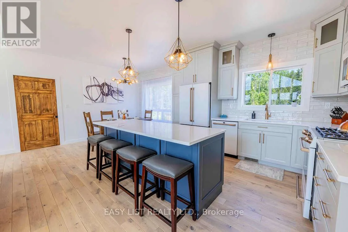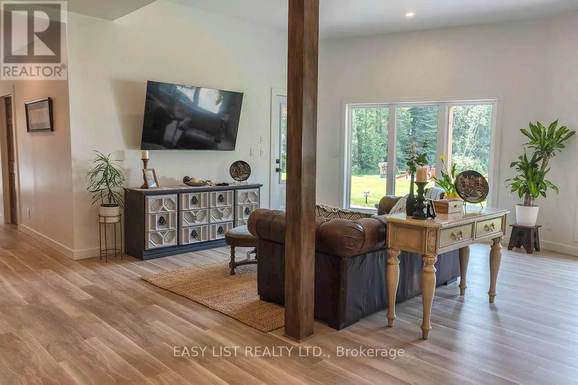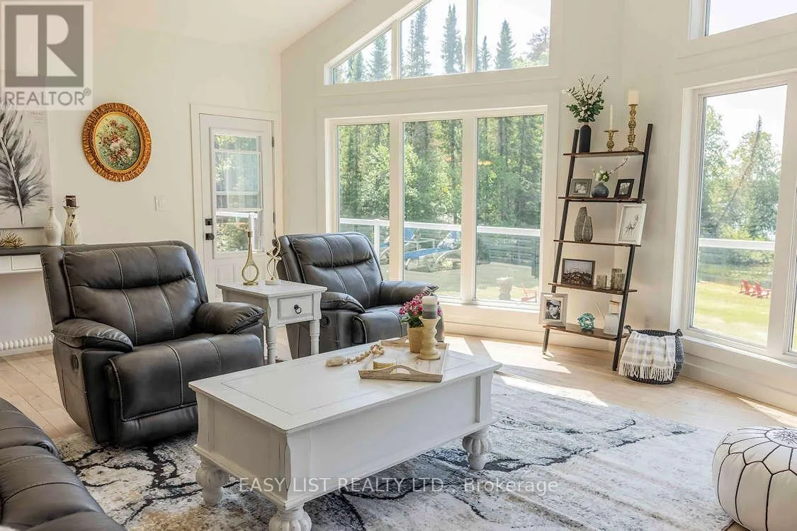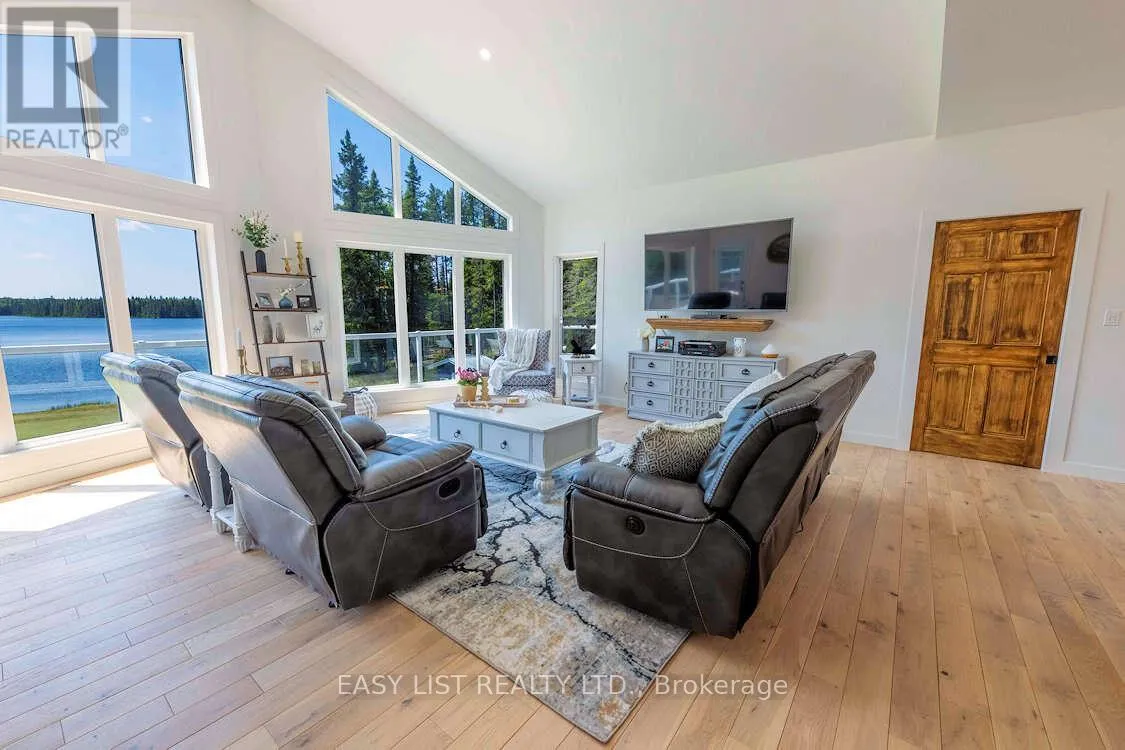 40 km North of HWY 17 on HWY 527, on Left For more info on this property, please click the Brochure button. Live the waterfront dream! Situated on the shores of pristine McLeish Lake, just 30 minutes from the city, this year-round waterfront residence was professionally designed, custom built, and meticulously and finely finished for its owners, with keen attention to each and every detail, no expense spared, and showcases nearly 3000 sq ft of both formal and casual living spaces, and boasts extraordinary outdoor relaxation that is highlighted by a large wrap-around deck, full-length stone patio with soothing six-person hot tub, and stone fire-pit patio. Unparalleled peace and privacy await on pristine McLeish Lake. The property is nestled among crown land. Outdoor recreation is at the door step - including refreshing swimming, boating and world-class fishing. Or explore the large lake and its various bays and extensions by canoe or kayak. Every inch of this home's 2860 sq ft impress. The great room serves as the unequivocal centerpiece, with a vaulted ceiling and floor-to-ceiling picture windows that frame stunning views of the lake - and face west for spectacular sunsets. The open-concept layout allows the dining room and kitchen to also benefit from these incredible views. Glass railings on the wrap-around deck ensure that the views are uninterrupted. The expertly designed kitchen with large center island features sleek shaker-style cabinetry that is complemented by brushed gold hardware, quartz counters, a ceramic-tile back splash, motion-activated counter lights, and new top-of-the-line GE Café appliances (propane stove, fridge, built-in dishwasher and microwave). Wake up each morning to the exceptional lake views - all four bedrooms overlook the water. (id:27476)