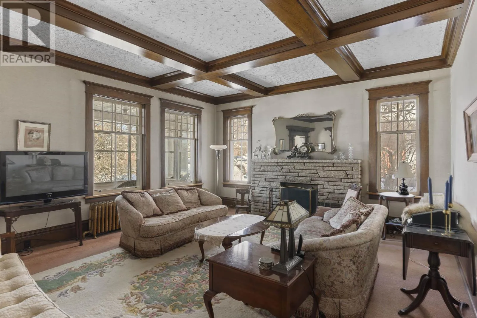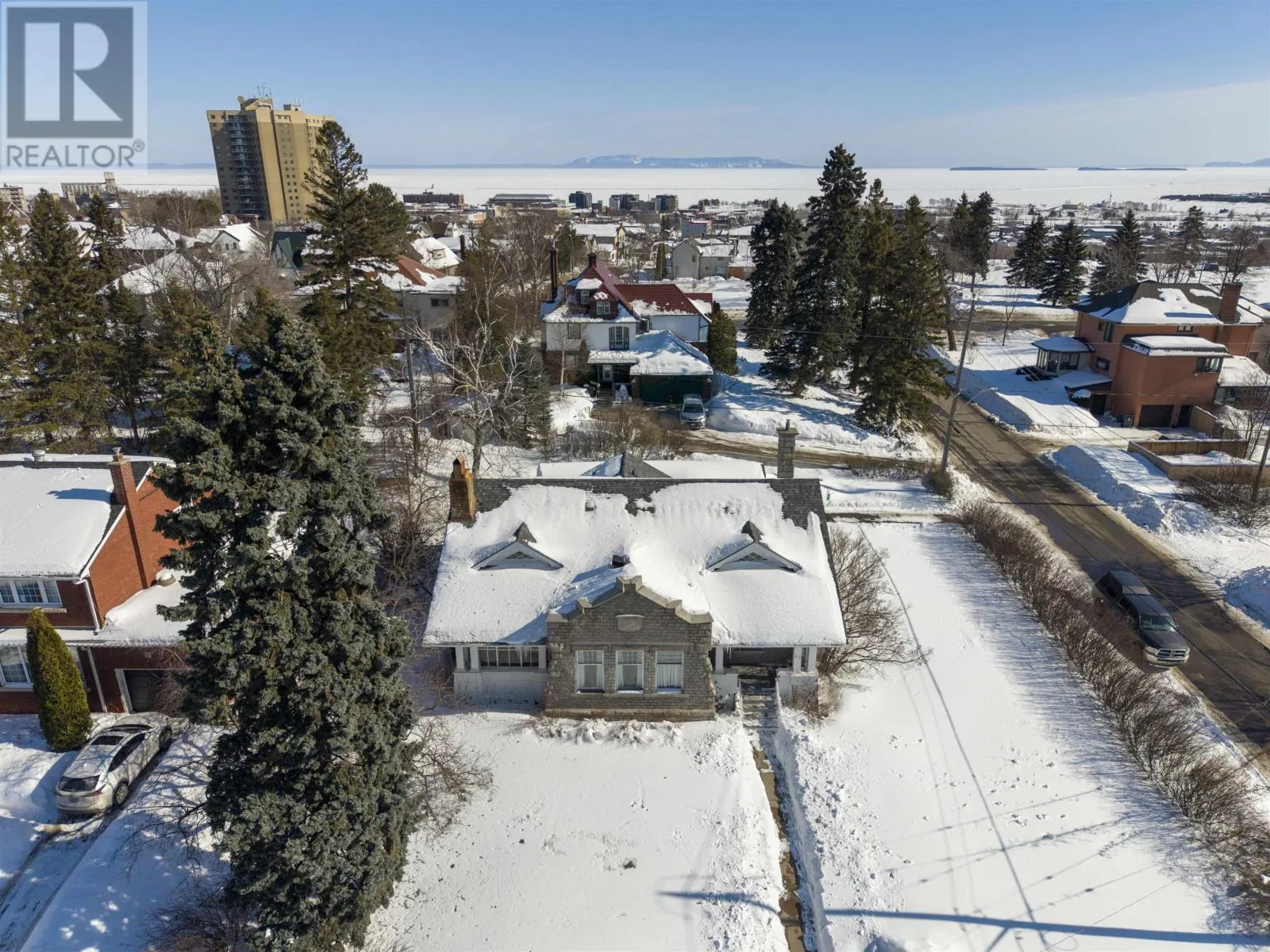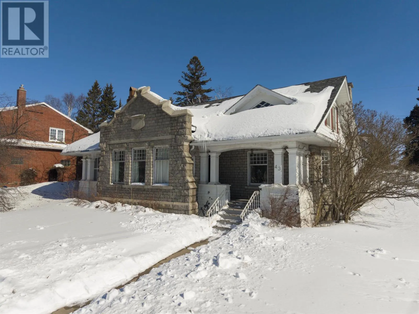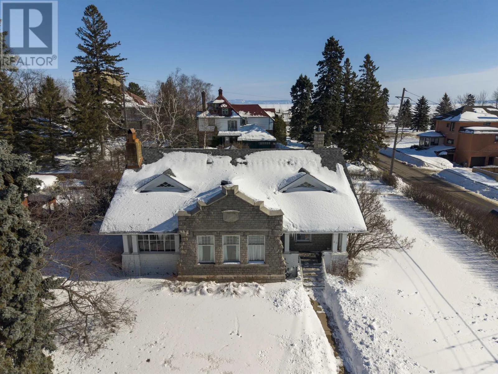 Corner of Summit Avenue and Beresford Street New Listing. Step Into Timeless Character In The Heart Of Mariday ParkâOne Of Thunder Bayâs Most Beloved Historic Neighbourhoods Known For Its Tree-Lined Streets, Parks, And Views Of The Sleeping Giant. Set On A Rare 100 X 100 Corner Lot, This Stately 1.5-Storey Stone Home Offers 5 Bedrooms, 3 Bathrooms, And Incredible Potential For The Next Owner To Restore And Elevate An Iconic Property. Inside, The Craftsmanship Immediately Stands Out With Rich Original Woodwork, Coffered Ceilings, And Elegant Architectural Detailing Rarely Found Today. The Formal Living Room Centers Around A Classic Wood-Burning Fireplace, While The Dining Room Is A Showpiece With Stunning Wainscotting Paneled Walls, Hardwood Floors, And Large Windows That Flood The Space With Natural Light. French Doors And Columned Openings Create Beautiful Flow Between The Principal Rooms. The Home Also Features A Charming Foyer, Sunroom, Spacious Kitchen With Breakfast Nook, And Generously Sized Bedrooms Including A Primary Suite With Walk-In Closet And Additional Storage. The Finished Lower Level Offers Extra Living Space Including A Rec Room And Unique Walk-In Safe. With Its Striking Stone Exterior, Covered Front Porch, And Brand-New Shingles (Nov 2024), This Is A Rare Opportunity To Own A True Mariday Park Classic. (id:27476)