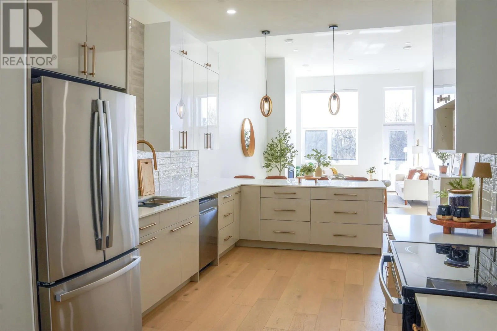 Corner of High St and Van Norman. Enter parking from High Street Entrance. Park around back near BFI bin. Use unmarked parking spots Flooded with natural light and loaded with upgrades, this stunning townhome offers a thoughtful layout that truly lives large. The primary bedroom features a spa inspired ensuite and a custom walk-in closet, while a spacious enclosed den makes a seamless second bedroom, home office, or flex space. A bonus ground-level walk-out room adds even more versatility. The open-concept living space impresses with soaring ceilings, a gas fireplace, and the building's highest-end finishing package, high-gloss cabinetry, engineered hardwood, premium fixtures, and custom electric blinds throughout. Step out to your private balcony and take in those eastern lake views. And then there's the garage, a rare 14' x 40' attached heated garage that sets this unit apart. As an owner, you'll have full access to an exceptional amenity package: guest suite, gymnasium (pickleball and basketball), fitness centre, library, and an auditorium with a full kitchen. A ground-level meeting space with a second full kitchen rounds things out - plus a spectacular 360-degree rooftop patio with outdoor cooking. Pre-HST price $830,000 - HST included in list price. (id:27476)