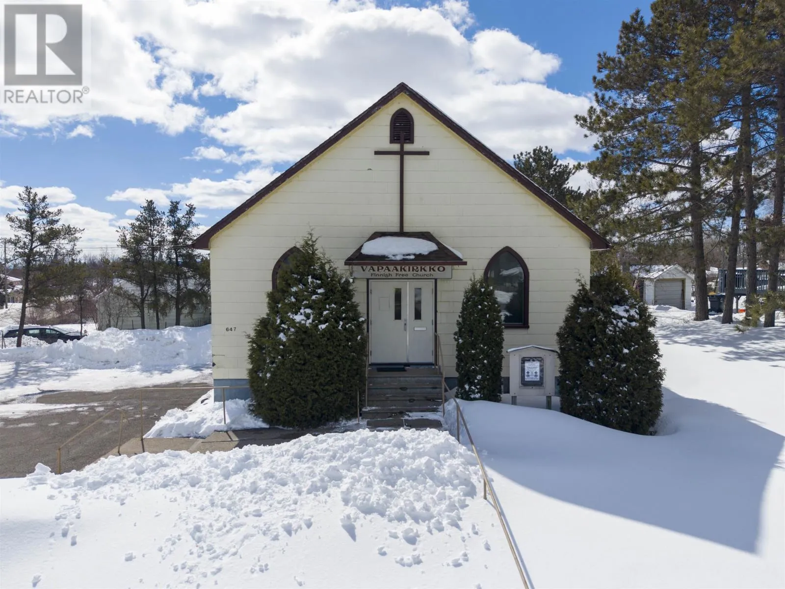 Corner of John St. and Frankwood Avenue New Listing. A Rare Opportunity In A Prime, High Exposure Location. Situated On An Oversized Corner Lot With 80 Ft Frontage And A Large Parking Area, This Solid, Well Built Finnish Church Offers Incredible Potential For Investors, Entrepreneurs, Or Continued Religious Use. Step Inside To A Bright And Airy Main Space Featuring 10 Ft Ceilings, Stunning Windows, And With A Kitchen, Meeting Room, Sunday School Space, Equipment Room, And A Large Events Area. With Updated Shingles, Air Conditioning, And Two High Efficiency Furnaces, The Major Systems Are Already Taken Care Of. Located In A Strong, Accessible Area With Excellent Visibility, This Property Presents Exciting Potential For Multi Unit Residential Conversion Or Other Business Ventures, Subject To Approvals. A Unique, Flexible Property Ready For Its Next Chapter. Beautiful Wood Pews. The Building Is Fully Equipped And Ready For Immediate Church Use, With Everything You Need Already In Place. The Walk Out Basement Adds Even More Versatility. Call For Your Private Appointment Or Visit www.KatePasinelli.com For More Details. - Zoning Urban Low rise. (id:27476)