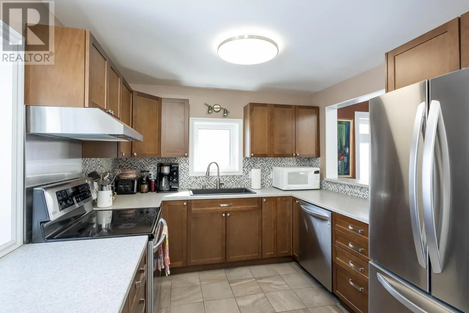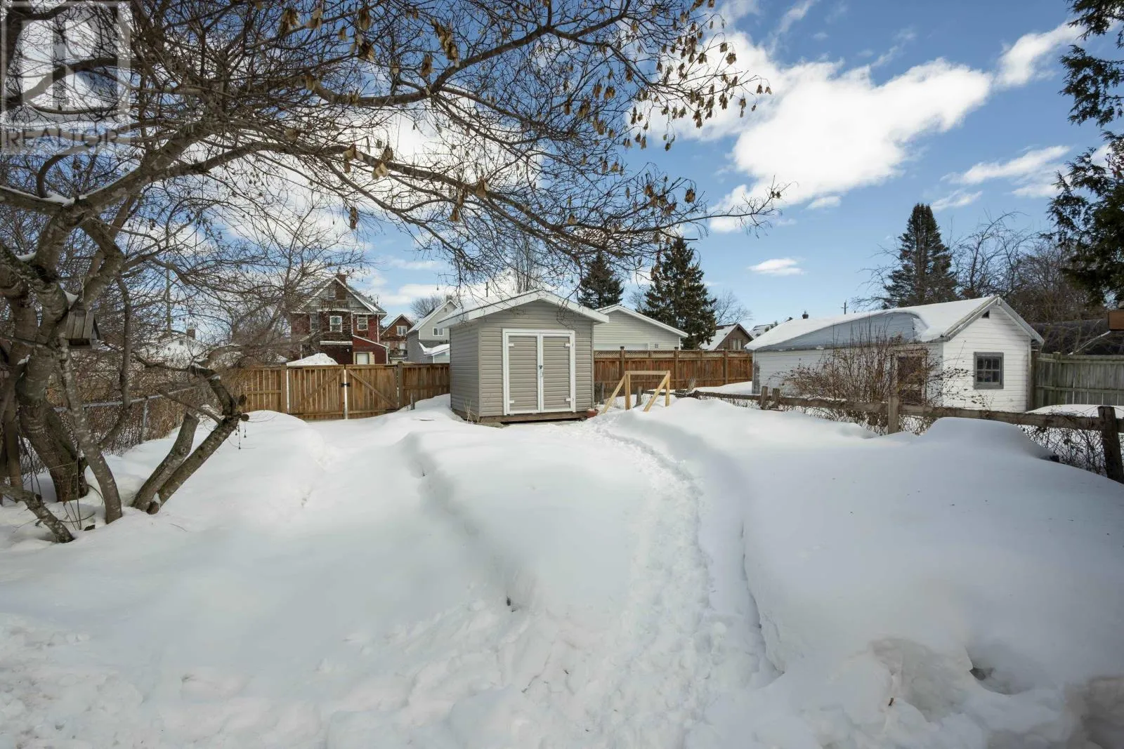 Between Court & Cumberland This very well maintained 2 bedroom home has been thoughtfully updated throughout. Both bedrooms are a great size, and the layout offers a large living room with an ornamental fireplace, plus a bonus living area at the front of the home featuring large, warm new windows that bring in plenty of natural light. There is a separate dining area with a convenient kitchen passthrough, and the kitchen overlooks the stunning backyard and new shed. Recent interior updates include fresh paint, an updated kitchen, main floor powder room, and a renovated main bathroom with tile. Most windows have been replaced, furnace 2023, and HWT is owned, new roof over kitchen 2019. The basement offers additional potential and could be finished to include a third bedroom. The exterior has been fully upgraded with new siding, stonework, a new front door, deck, and back fence with gate. The property features mature and well maintained landscaping, including a lilac tree beside the house, perennial garden with rose bush and wisteria vine. Daylilies bloom each year beside the shed and along the side walkway, while the front garden offers a mix of perennials including daylilies, hostas, and a striking bleeding heart. Just move in and make it your own! (id:27476)