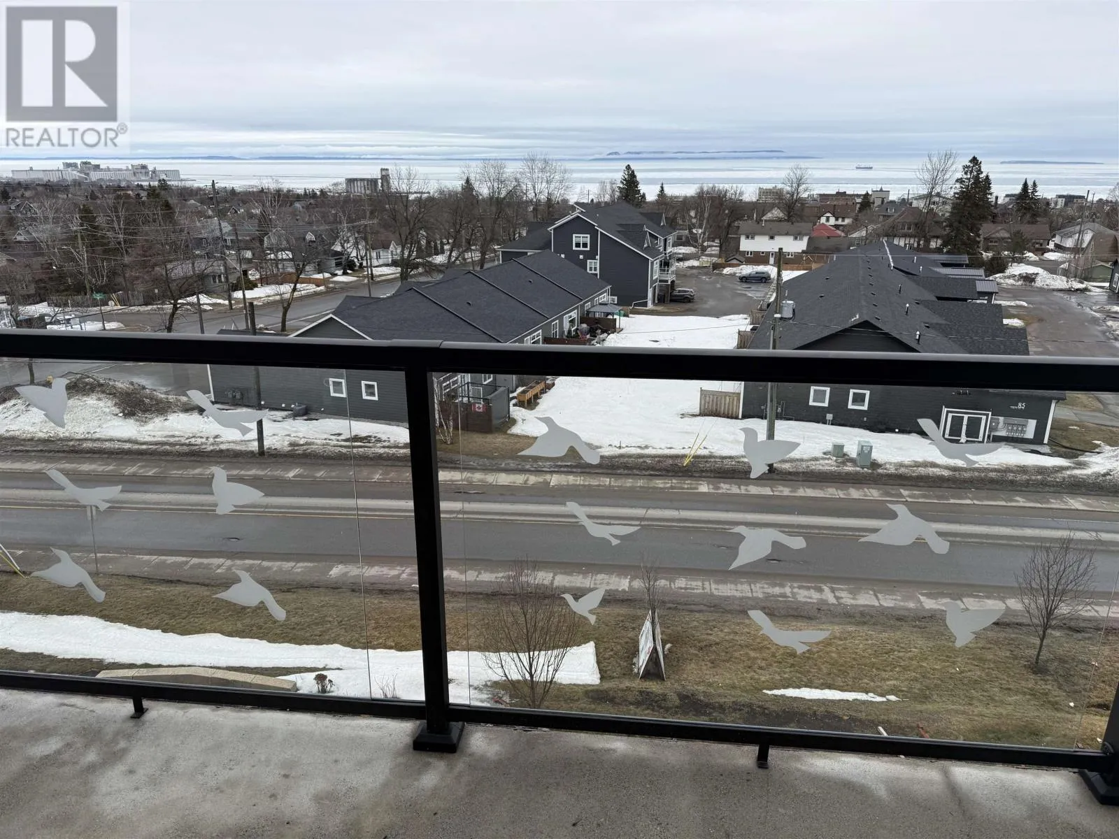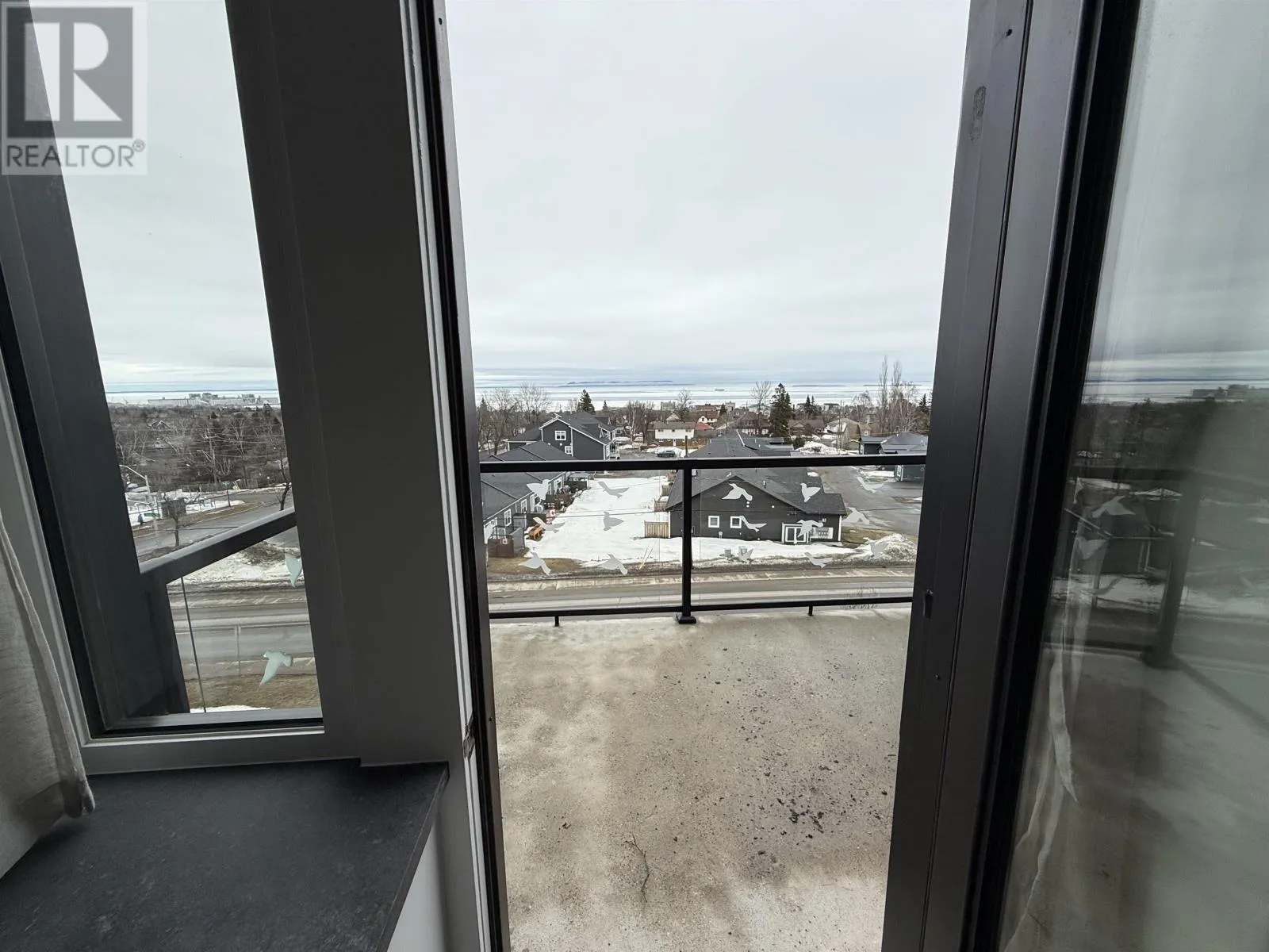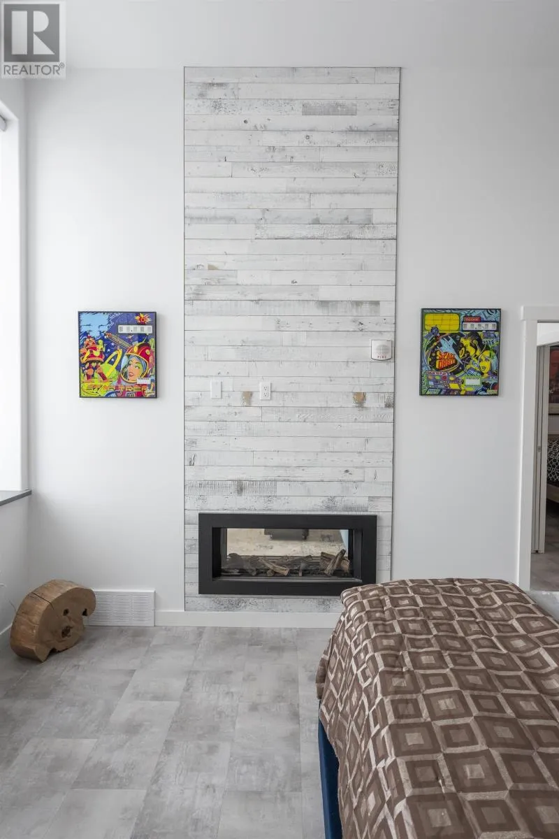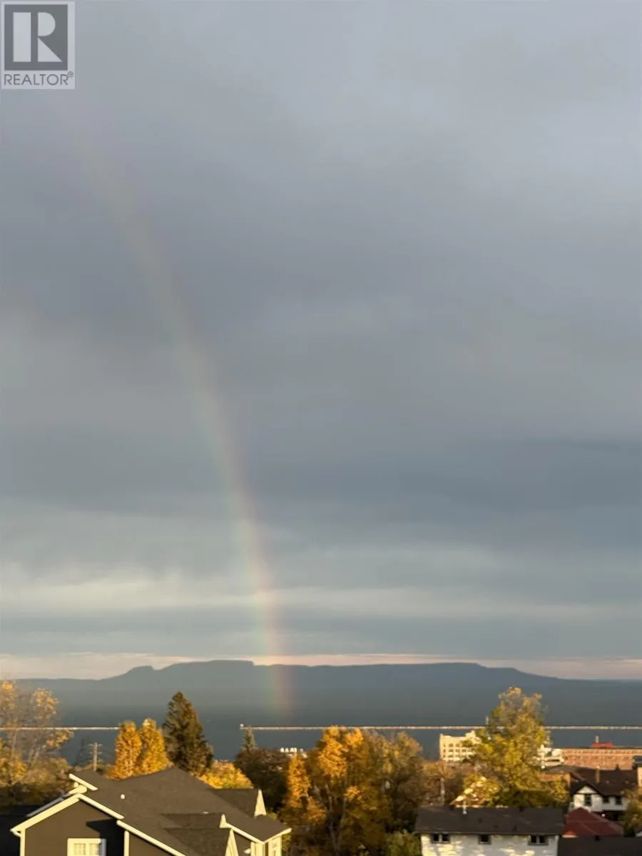 Hillcrest Condos An exceptional top-floor condo offering what is widely considered the best view in the building, perfectly centered to capture breathtaking vistas of the Sleeping Giant and Lake Superior. This outstanding residence features 1,530 square feet of beautifully designed living space with impressive 12-foot high ceilings and an open, light-filled layout. The condo includes two spacious bedrooms and two full bathrooms, highlighted by an exceptional primary suite that flows seamlessly through dual walk-in closets into a spa-inspired ensuite with double sinks, a soaking tub, a walk-in shower, and in-suite laundry. The living and dining areas are anchored by a striking two-sided gas fireplace, creating warmth and elegance throughout the space. Step onto the balcony to enjoy uninterrupted lake views and spectacular sunsets over Lake Superior. Completing this rare offering is a private garage measuring approximately 28â x 10â, potentially to accommodate 2 small cars, and is great for bike storage, shelving and recycling, adding both convenience and exceptional value. Truly the premier condo in the building, combining superior views, thoughtful design, and refined living in one of Thunder Bayâs most sought-after settings. (id:27476)