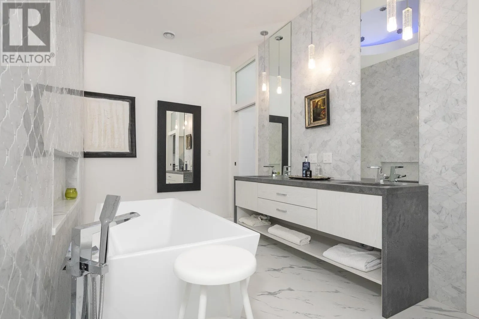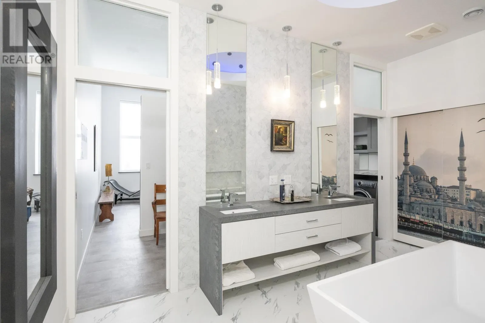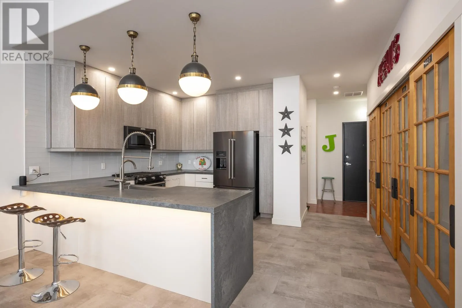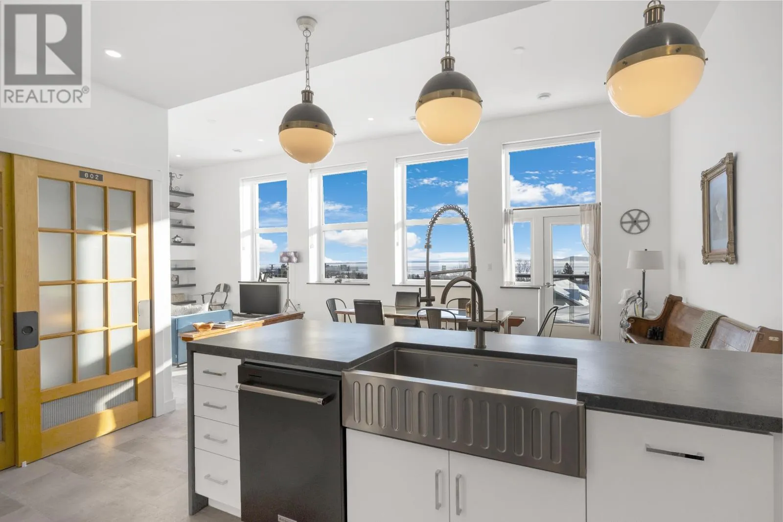 Hillcrest Condos An exceptional top-floor condo offering what is widely considered the best view in the building, perfectly centered to capture breathtaking vistas of the Sleeping Giant and Lake Superior. This outstanding residence features 1,530 square feet of beautifully designed living space with impressive 12-foot high ceilings and an open, light-filled layout. The condo includes two spacious bedrooms and two full bathrooms, highlighted by an exceptional primary suite that flows seamlessly through dual walk-in closets into a spa-inspired ensuite with double sinks, a soaking tub, a walk-in shower, and in-suite laundry. The living and dining areas are anchored by a striking two-sided gas fireplace, creating warmth and elegance throughout the space. Step onto the balcony to enjoy uninterrupted lake views and spectacular sunsets over Lake Superior. Completing this rare offering is a private garage measuring approximately 28â x 10â, potentially to accommodate 2 small cars, and is great for bike storage, shelving and recycling, adding both convenience and exceptional value. Truly the premier condo in the building, combining superior views, thoughtful design, and refined living in one of Thunder Bayâs most sought-after settings. (id:27476)