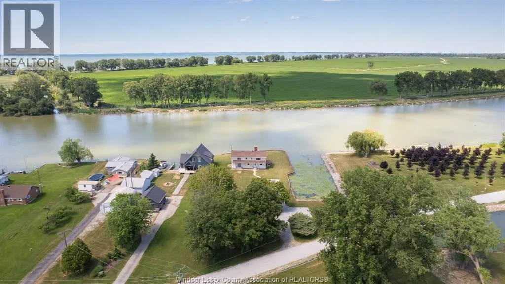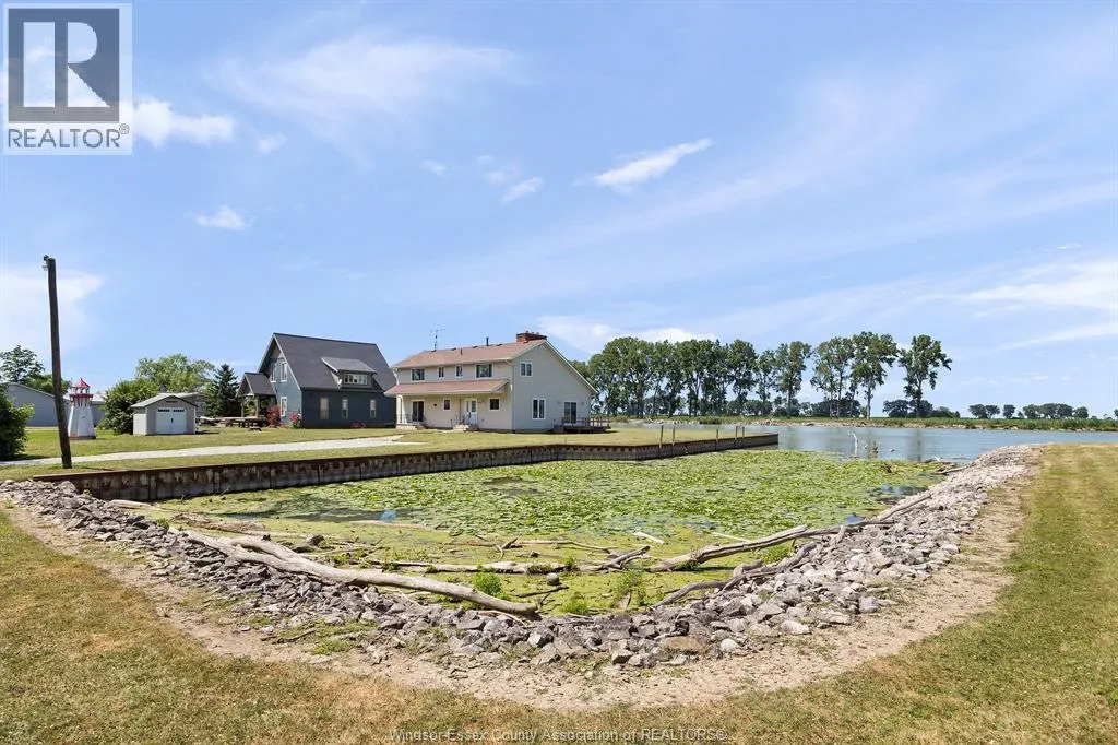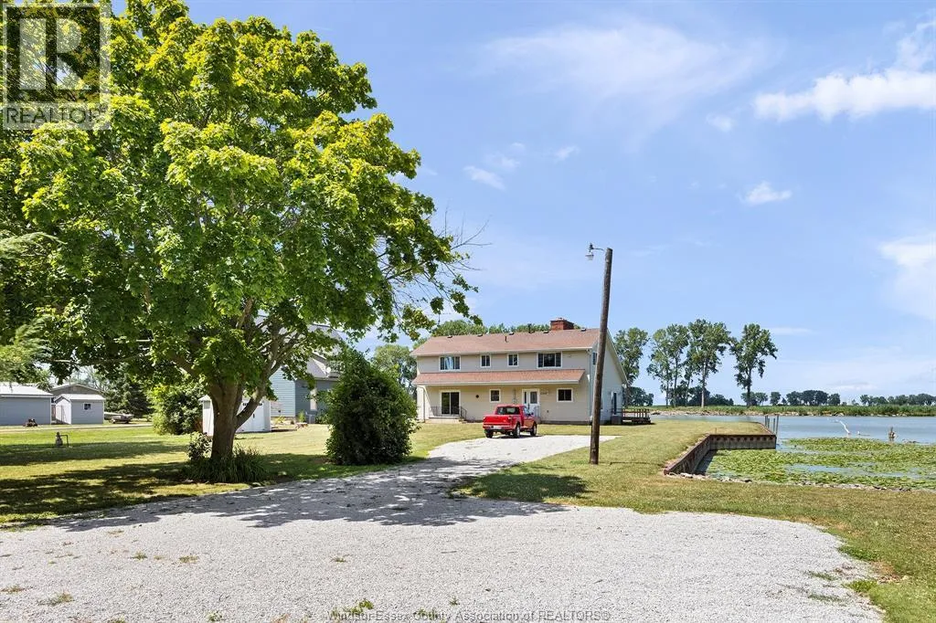 Take Lighthouse Rd turns into Tisdelle turn right on Admirals drive and it splits to Dockside rd 1.566 acre waterfront property. Located on the Thames river with direct access and view of Lake St Clair with your own private protected inlet to park your boat(s). The 2 story home has 3 bedrooms and 3 bathroom, plus a rough in bath ready to finish. Soaring ceilings, 2 sided fireplace, and all glass along the rear wall give you unobstructed water views. Dated but well cared for. This property is comprised of 2 parcels, the first with the house and private inlet is 1.337 acres zoned residential and the second triangular lot across the road is .229 of an acre and is zoned commercial. So many possibilities , lots of room for expansion, parking, outbuildings and more. This is an estate first time offered for sale........do not miss out on the opportunity to own this large private waterfront property.( Near Luken Marina ) (id:27476)