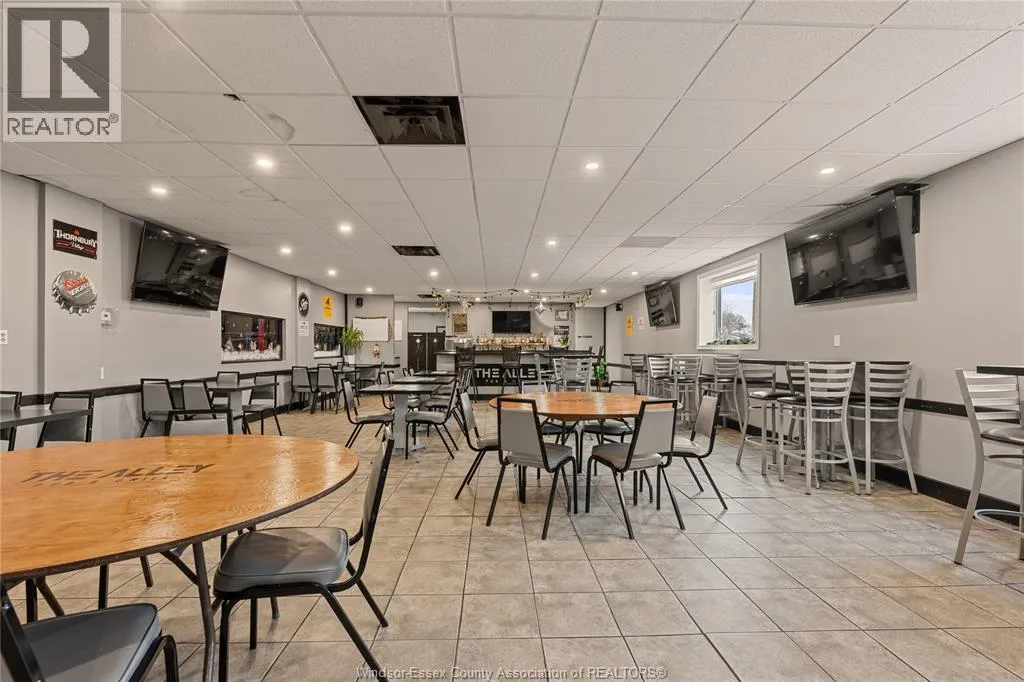 Multiple Incomes! A rare chance to acquire a fully operational entertainment and hospitality property offering multiple income streams with strong future upside. The building features six bowling lanes with Brunswick A-2 machines and durable synthetic lanes, and is LLBO licensed for 100+ patrons, supporting consistent food, beverage, and entertainment revenue. A steel roof (approx. 14 years old) adds long-term durability and low maintenance. The on-site pub-style restaurant is extremely well-known locally for its popular comfort-food menu and welcoming atmosphere. A fully equipped newer commercial kitchen is included, allowing a true turnkey operation. The dining area is utilized for family dining, private events, karaoke nights, and group functions, with flexibility to evolve into a sports bar or event venue. Additional income potential includes a 1+1 bedroom residential living quarters with direct access from the kitchenâideal for owner occupancy, staff housing, or rental income. Currently tenanted. There's more! An additional lot with a large detached garage behind the building, currently used as a paint shop, provides excellent value-add potential. It could continue as a leased commercial space or be repurposed into additional residential rental income, light industrial use, or business space. The main building also offers conversion potential for family entertainment, fitness or training facility, catering hall, or mixed-use commercial concepts. This property is ideal for investors and entrepreneurs alike, looking for a diversified, multi-income-producing asset with operational stability. (id:27476)