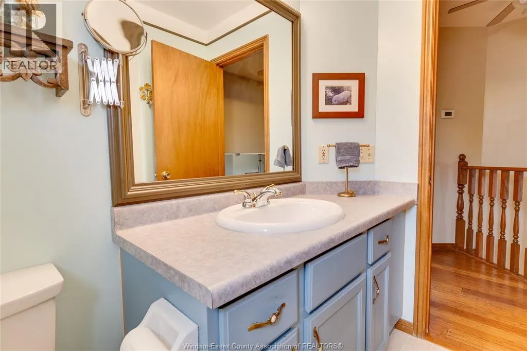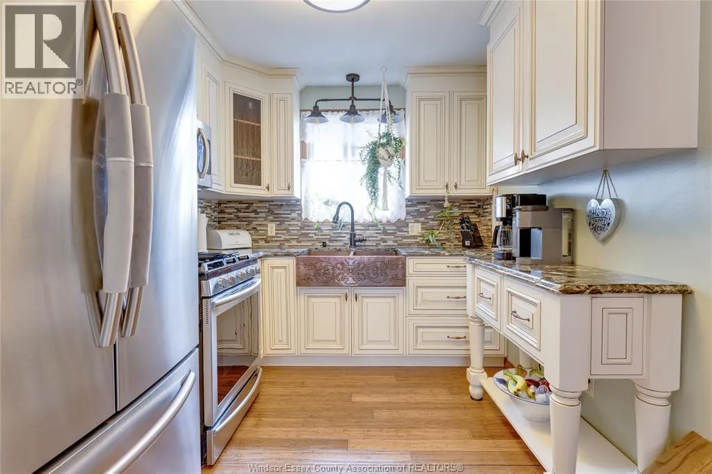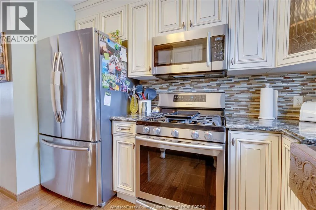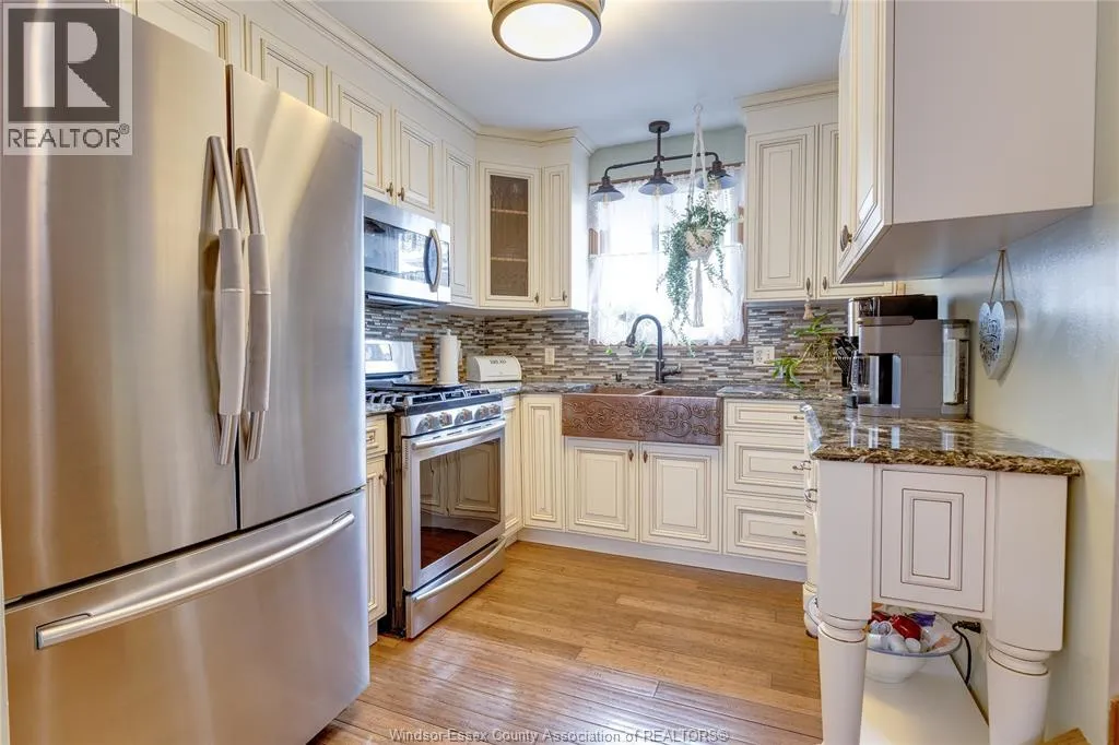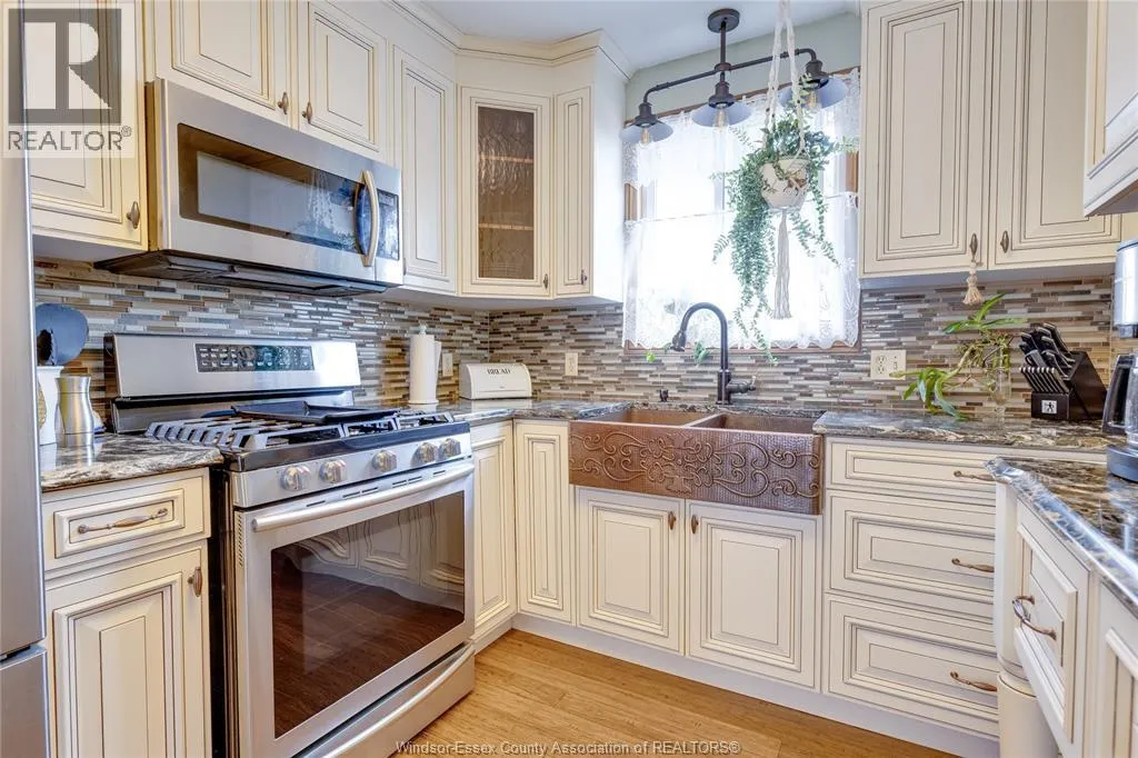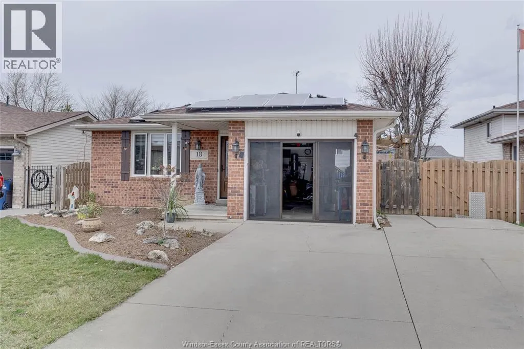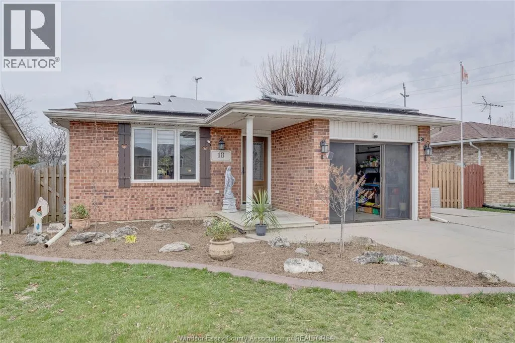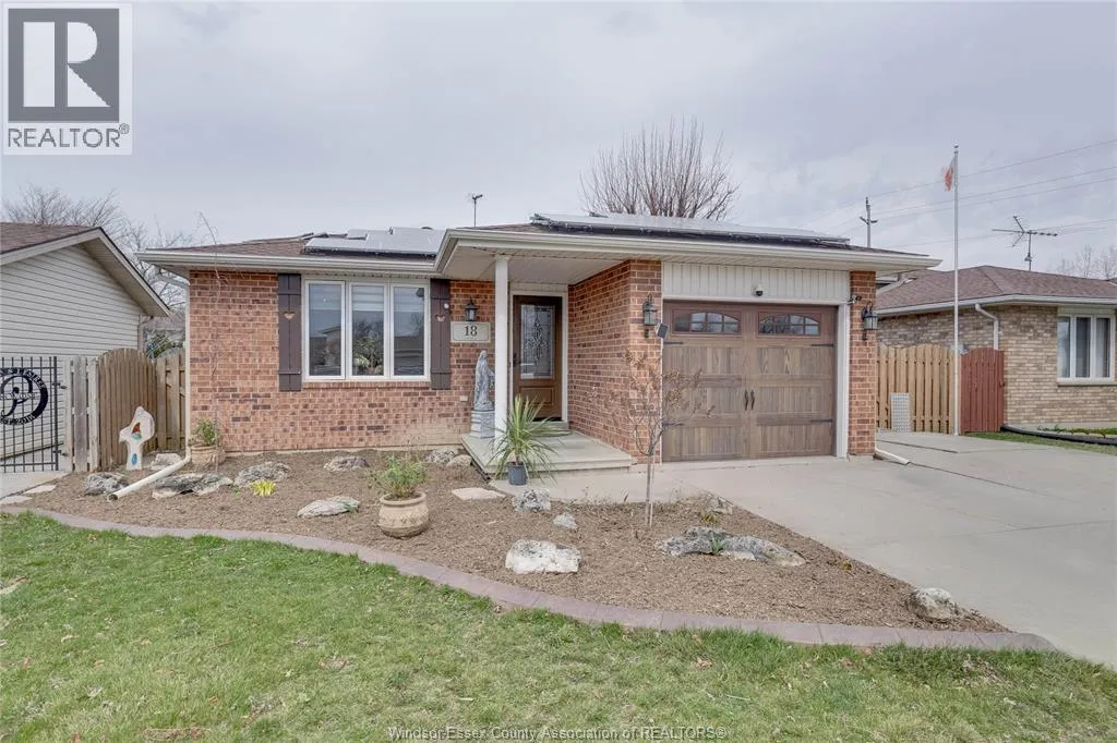 Welcome to 18 Azar Ave. Beautifully updated, super clean 3 bedroom (2 up 1 down), 2 full bath home. Quiet, safe area, minutes from the 401 & other main arteries. Same owner for over 20 years has done many expensive upgrades incl roof, eavestroughs & most exterior doors, bamboo flooring & engineered hardwoods (no carpet in the home). Character & style throughout. Fully remodeled kitchen 3 years ago with quartz counters, stainless appliances (incl gas stove), copper farmer's sink & tiled backsplash. Lower bathroom newly renovated. Enjoy the formal living room with antique French doors & the inviting family room with gas fireplace. Double cement drive leads to the attached garage with bonus pull-down screened closure & rear door to the large composite decking & the swimming pool (just 5 years old). Big 12'x 8' storage shed, privacy fenced rear yard. Nicely landscaped property. Solar panels are paid for, making good money, transferrable to the new owner. Tons of storage, washer & gas dryer stay. Plug installed at the deck for hottub or sauna. New front landscaping with stamped concrete curbing. (id:27476)